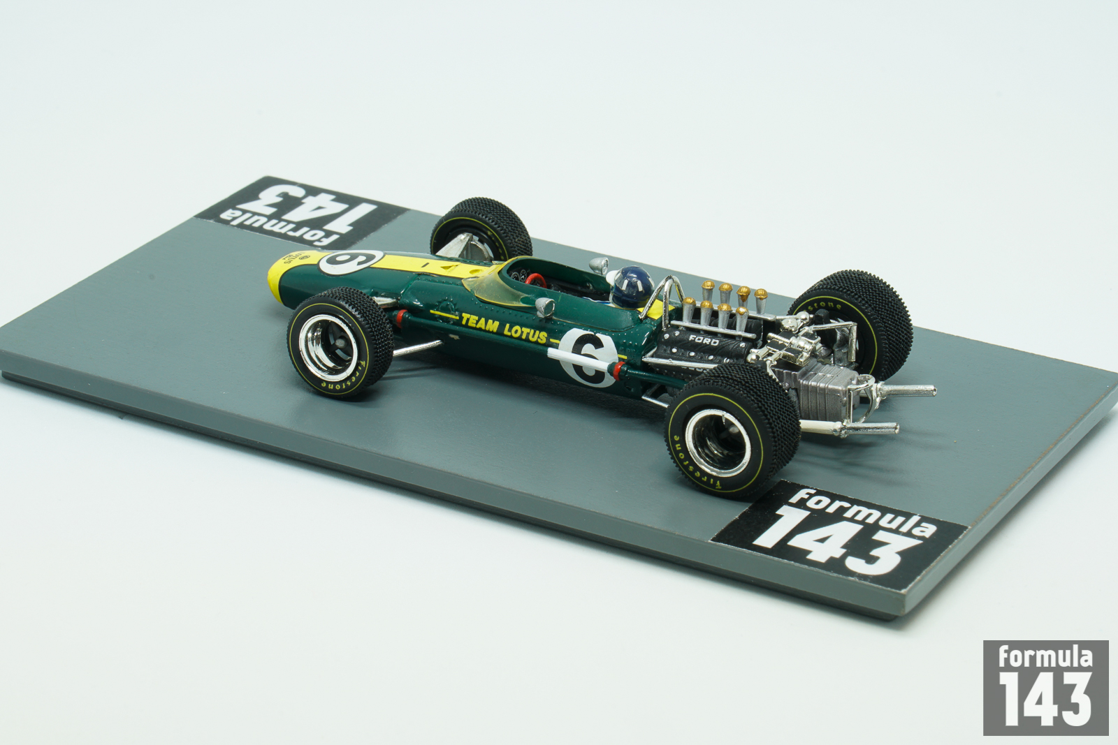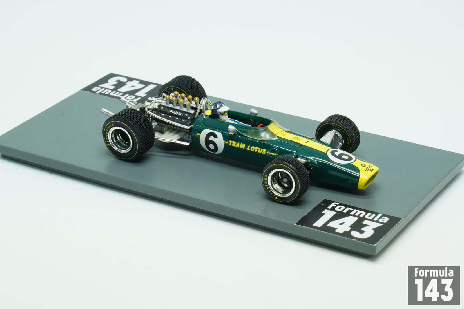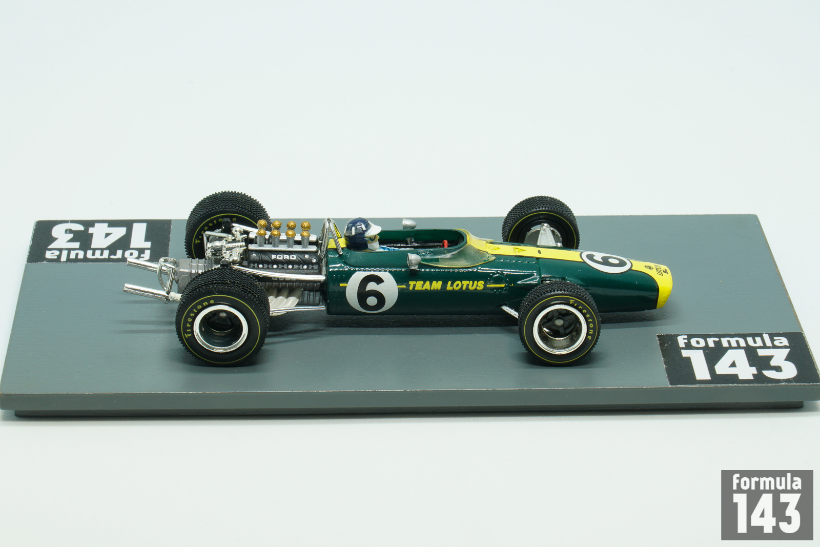 Lotus 49 was introduced by Colin Chapman for the first 3-litre Formula season in 1967. New FIA regulations left many of the independent teams like Lotus and Cooper without an engine. Solving this problem Chapman organized very productive Ford – Cosworth partnership by joining abilities of his old friends Mike Costin and Keith Duckworth, the founders of the Cosworth engine tuning company, with financial backing from Ford. Using a Ford four cylinder as a base, the Cosworth team first developed a 16-valve 1600 cc FVA engine for Formula 2. It would form the basis for the three litre V8 readied for the 1967 season. The 49 was an advanced design in Formula 1 because of its chassis configuration. The specially-designed engine became a stress-bearing structural member bolted to the monocoque at one end and the suspension and gearbox at the other. Since then, virtually all Formula 1 cars have been built this way. In the 1967 season Team Lotus retained the 1966 World Champion Jim Clark, who was joined by Graham Hill moved from BRM. Works Lotus drivers started the season with 43 and 33 models before switching to 49 since Dutch Grand Prix, the third round of the championship. The car change was successful for Clark, who won the first race in the 49 (in Holland), and then won 3 more victories, eventually finishing in 3rd place in the championship. For Hill, the season was different. Moving to Lotus 49 after second place in Monaco at the wheel of Lotus 33, Hill found himself in a streak of technical retirements, returning to the podium only at the end of the season at the US Grand Prix.