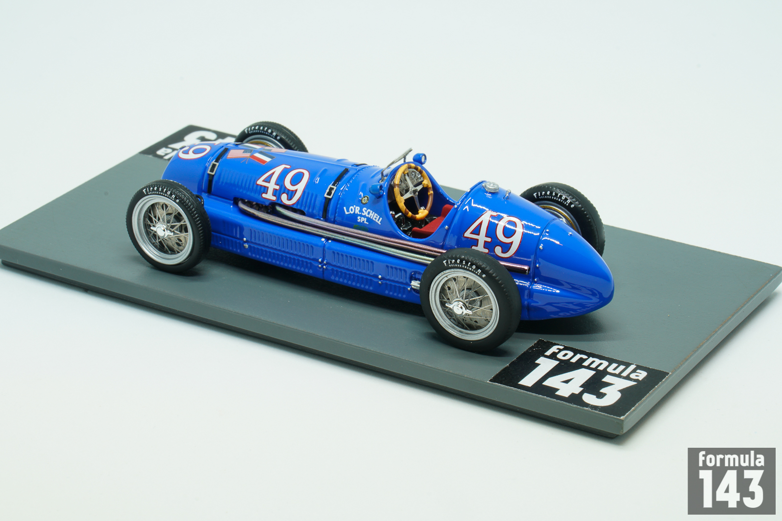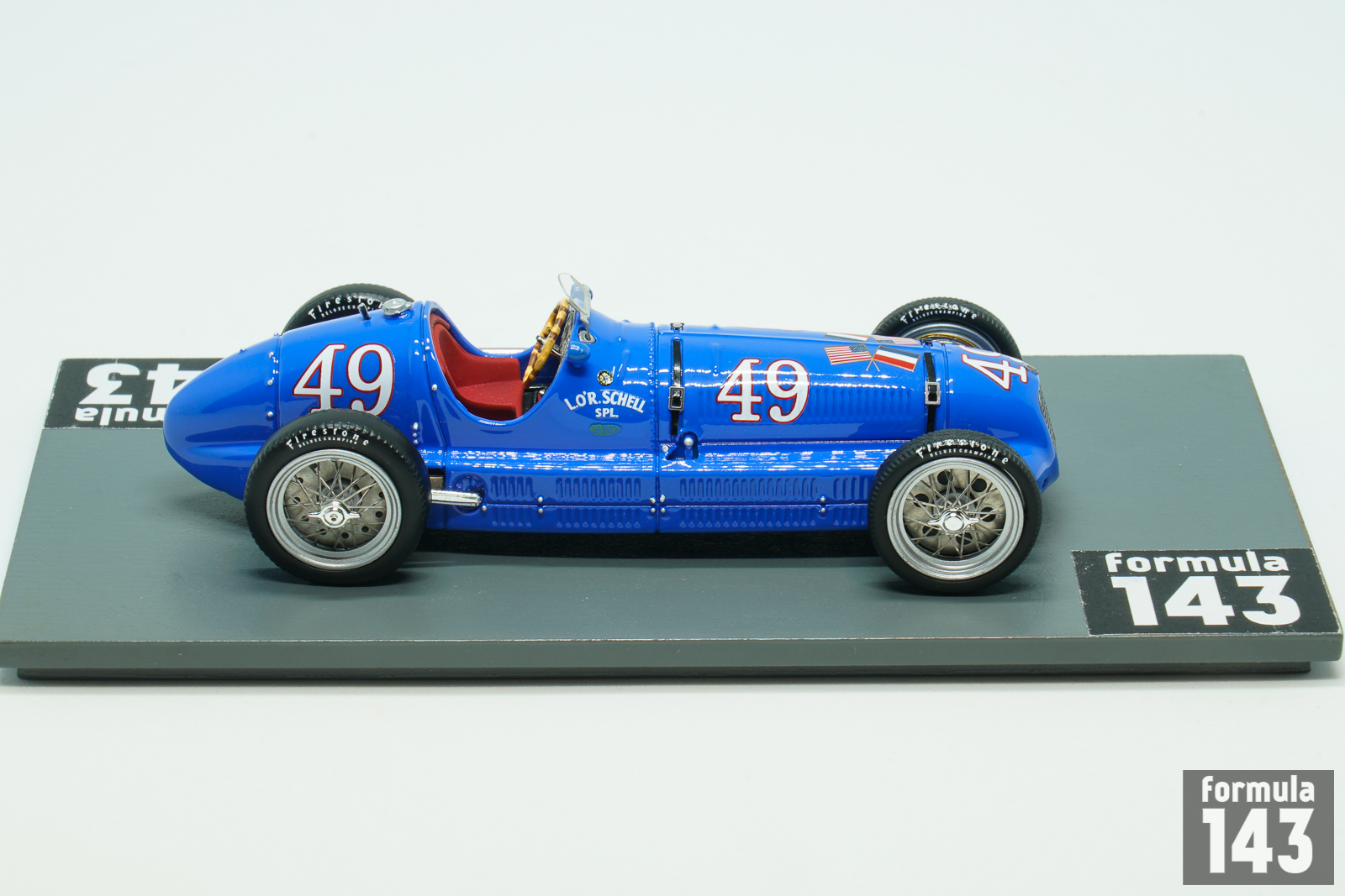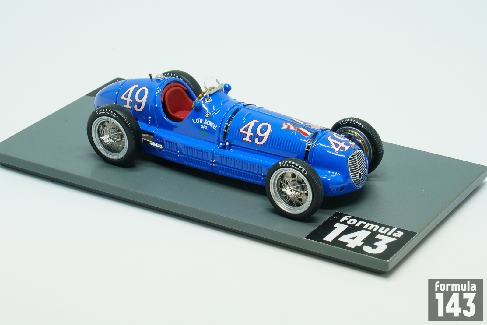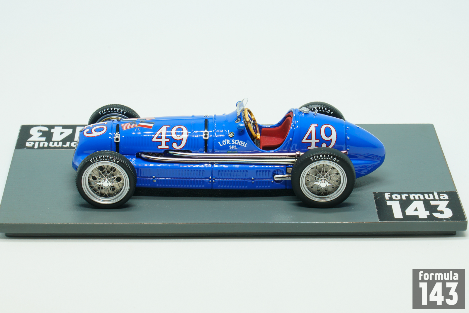 The history of Maserati in American open wheel racing goes back to 1937 when Wibur Shaw, who took part in the Vanderbilt Cup race, was astonished by the Italian cars. He told to his friend Mike Boyle: “If I had a car like that, I’d win the next 500-mile race in it.” Boyle agreed with Maserati factory, but due to misunderstanding the Italians first sent a 6CM voiturette to America, too small for Indy-500. Finally, in 1939 Boyle bought 3.0-liter 8CTF which cost him $15,000, several times than usual American-built Indy special. The car was in production in 1938 and was powered by 8-Cylinder 2991 cc 350 hp engine. The 8CTF renamed as Boyle Special became a part of Indianapolis history when Shaw won the 1939 Indianapolis 500 and again in 1940. Following Boyl’s success, American / French ex-Grand Prix female driver Lucy O’Reilly Schell entered her two recently acquired Maseratis in the 1940 Indianapolis 500 for French pilots Rene Le Begue and Rene Dreyfus. Both raced for Schell’s Ecurie Bleue in Europe, but were unfamiliar with the Brickyard and with the American racing rules. Le Begue qualified chassis 3030 in thirty-first position, while Dreyfus did not qualify in the second car (chassis 3031). On race day, it was decided for the two drivers to split time in the car, and each drove two stints of approximately 50 laps (125 miles) apiece. Le Begue started the race and ran approximately laps 1–50 and laps 101–150. Dreyfus piloted the car for laps 51–100 and from 151 to the finish. The pair brought the car home in 10th place, flagged 8 laps down. Following the race the cars were sold to Lou Moore, who rebranded them as the Elgin Piston Pin Specials and entered in the 1941 Indianapolis 500. The scale model was produced by Replicarz in its exclusive 1:43 Indy series.