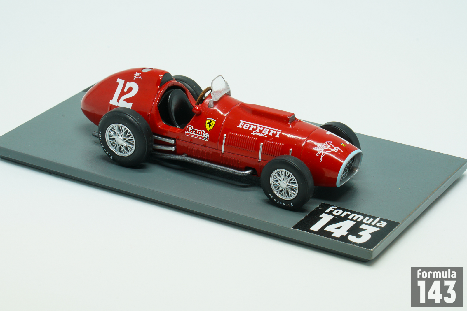 In 1950th when Indianapolis 500 was a part of World Driver’s Championship Ferrari decided to try their luck at the Old Brickyard. In 1952 Scuderia Ferrari entered Alberto Ascari as works driver to Indy 500 on a 375 model modified for specific oval track conditions. Three new Weber 40IF4C carburettors brought power output to 380 hp, the wheelbase was lengthened, and the chassis and suspension were strengthened. In addition three 375s were provided for American entrants – Johnnie Parsons, Johnny Mauro and Bobby Ball. Only Ascari was able to qualify, but the race was disappointing because Ascari had to withdraw with a broken wheel.