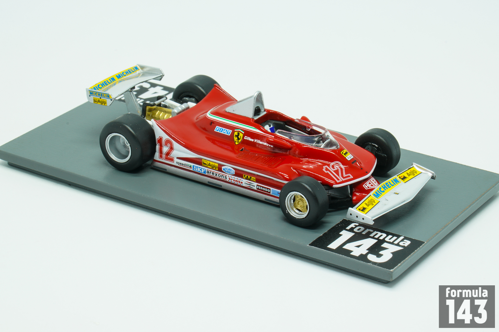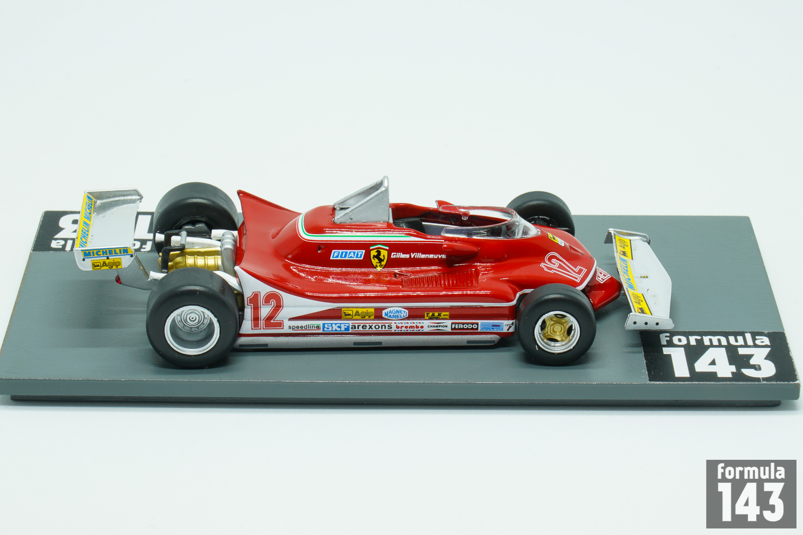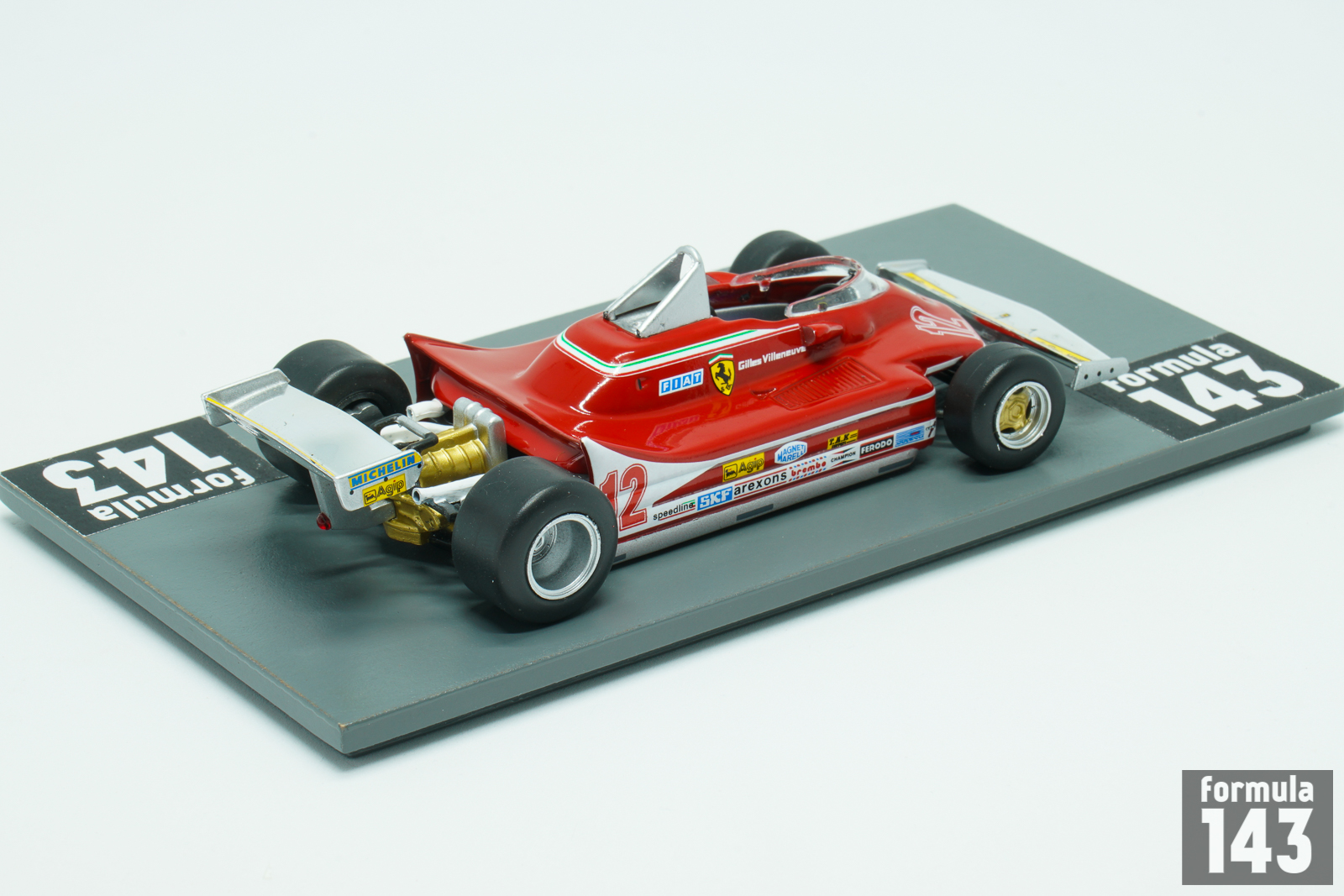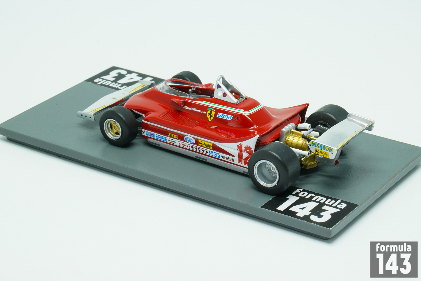 Ferrari 312 series was one of the most successful and famous Grand Prix cars from Maranello. Initially designed by Mauro Forghieri for 1975 season, it raced in various versions from 1975 until 1980 and won 27 races out of 90. 312T4 version was built for 1979 season with major improvements in the field of aerodynamics in order to follow ground effect design introduced by Colin Chapman’s Lotus in 1978. The car was fast enough to match any rival and very reliable. Jody Scheckter and Gilles Villeneuve won 3 races each and took 1st and 2nd positions respectively in the Drivers’ Championship. Gilles Villeneuve whose car is modeled in this Minichamps scale model won in South Africa, USA-West and USA Grand Prix. See also Villeneuve’s car by Minichamps and 312T4 Monaco version driven by Jody Schekter.