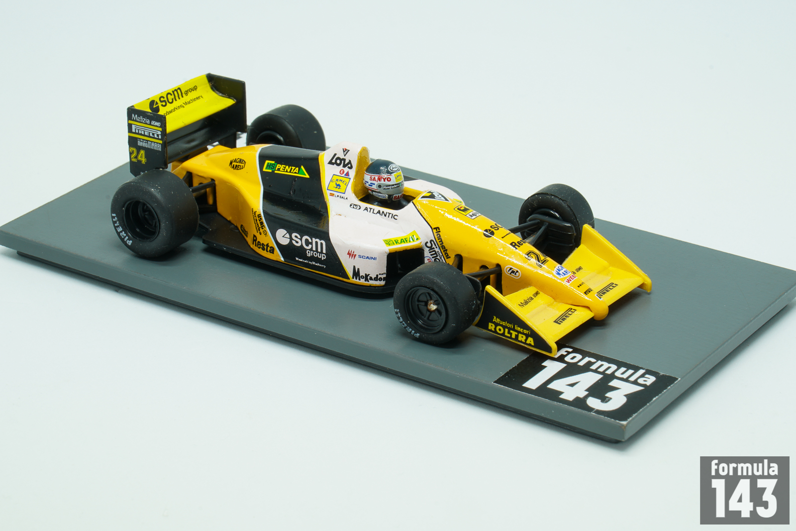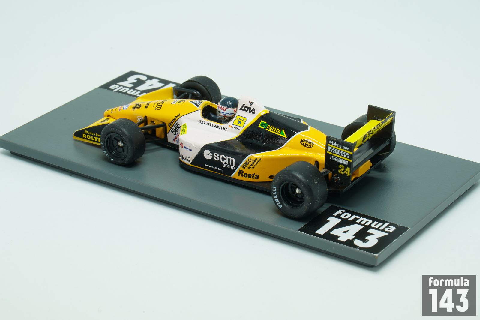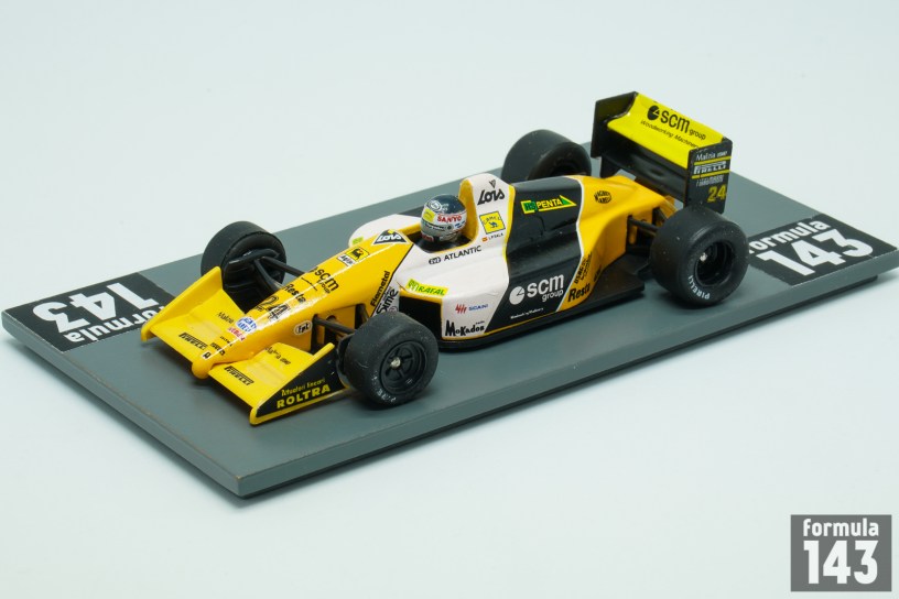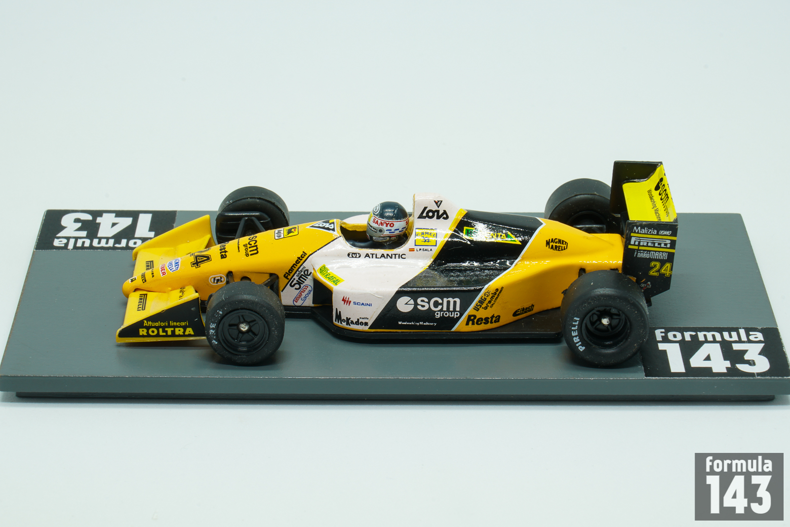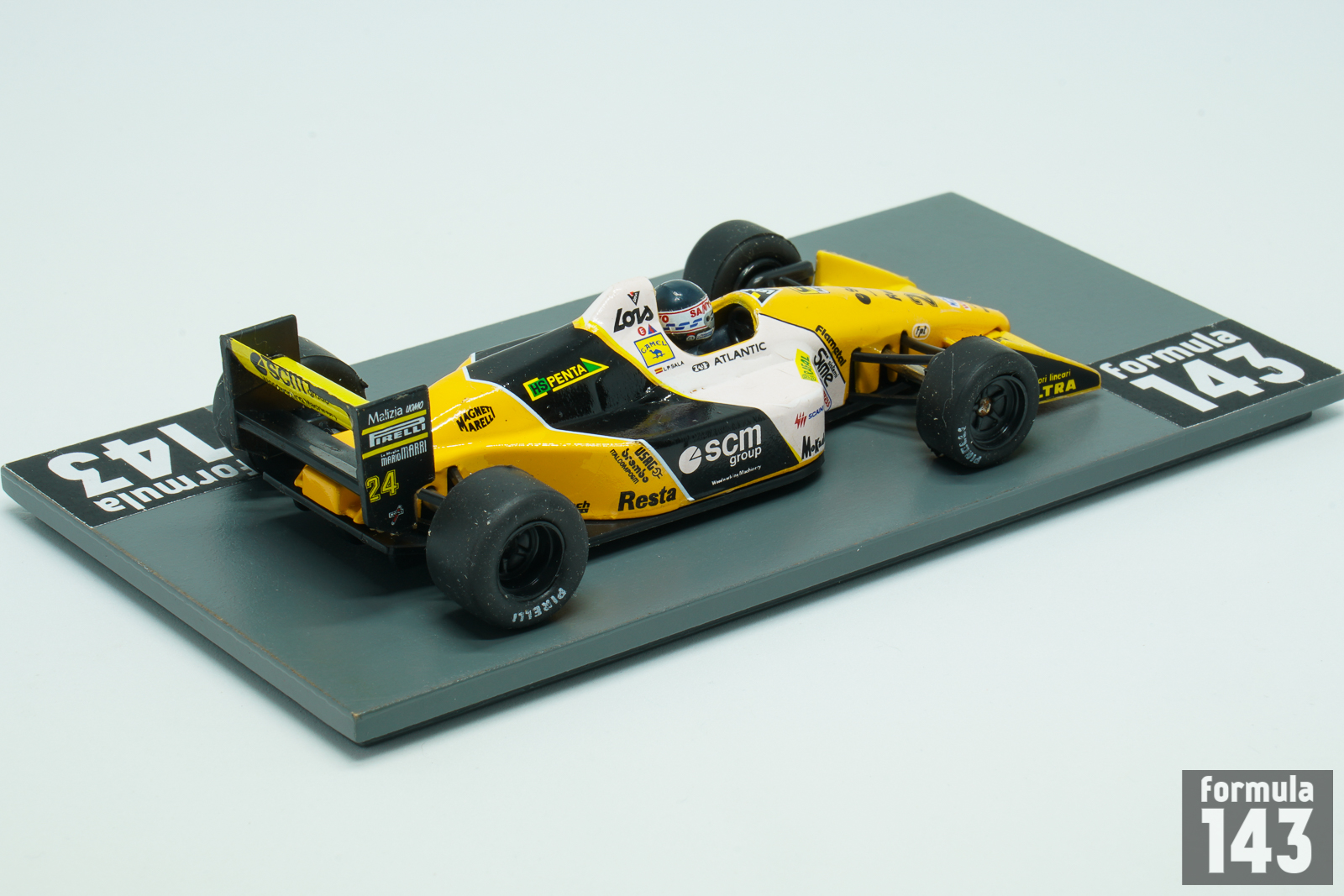 The M189 was designed by Nigel Cowperthwaite and Tommaso Carletti with Aldo Costa in the role of technical director. The car was powered by the 3500cc Ford Cosworth V8. The M189 was the first racing car entirely designed virtually using computer-aided design and drafting (CAD). The design was performed at the I.De.A. Company in Turin with a 5-axis numerical controlled machine that exploited CAD-CAM technology. The car was further developed in the wind tunnel in Crandfield in England. The M189 was driven by Pierluigi Martini and Luis Perez-Sala, both of whom had driven for the team the previous year. Minardi got first points of the season at Silverstone where Martini and Perez-Sala finished 5-6. This was first race in Minardi’s history in which both of the team’s cars finished in the points. At Estoril in Portugal was another incredible date. Martini took Minardi to the lead of a Grand Prix for the first time, controlling the two very fast Williams-Renaults with a stupendous performance and crossing the finishing line finally in fifth place. With 6 points to its credit the Minardi team finished in the Top 10 with 20 teams entered for the second consecutive year. Pérez-Sala’s sixth place in the 1989 British Grand Prix was his best result in F1 and his only point.