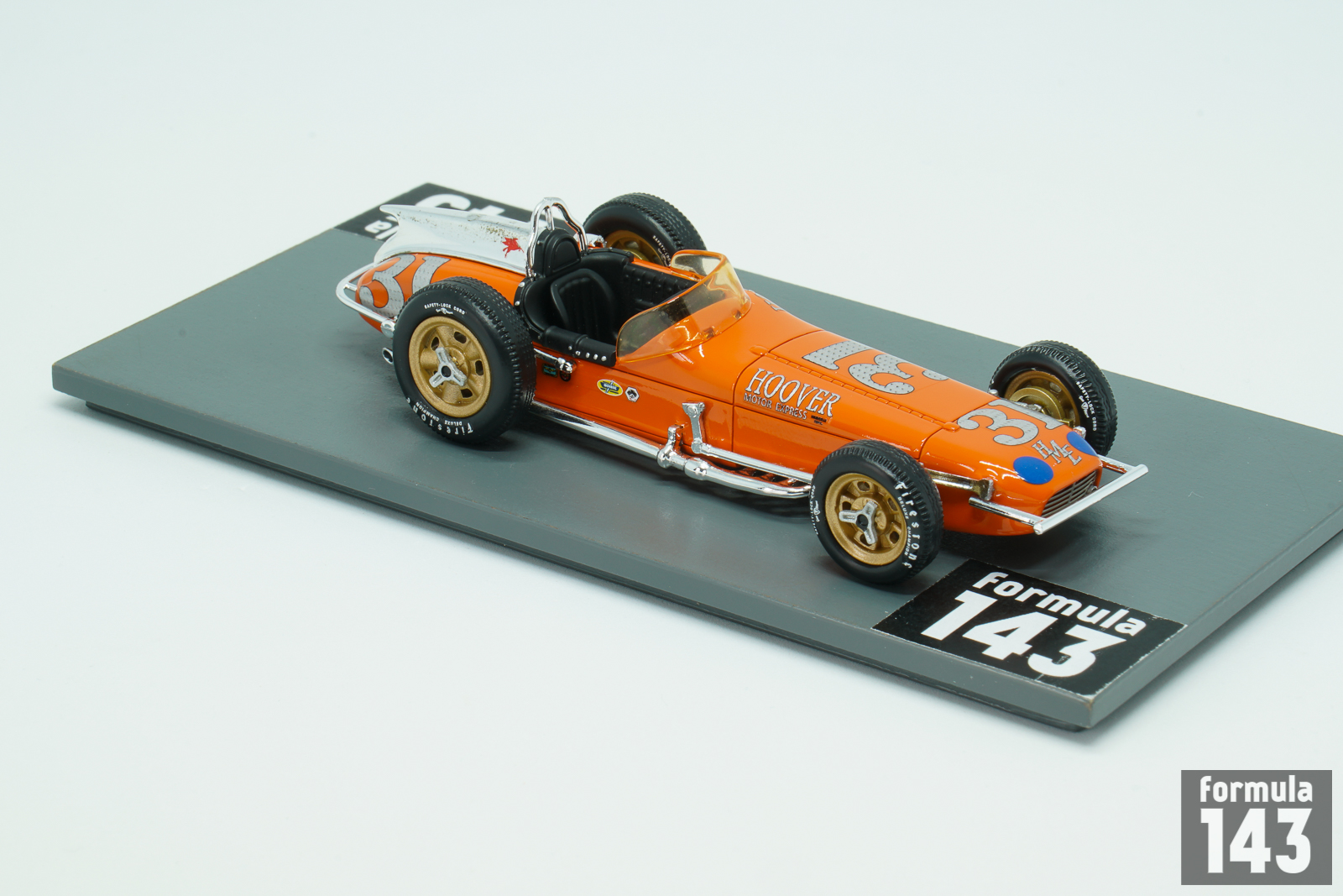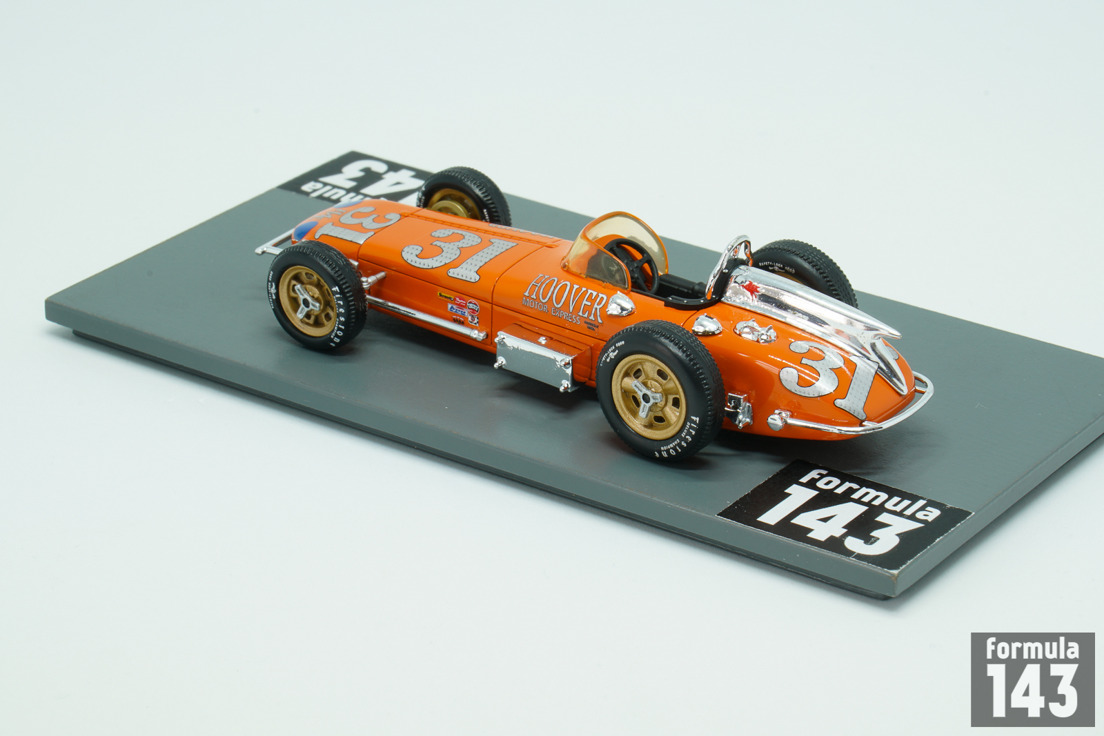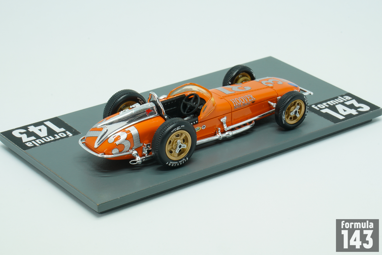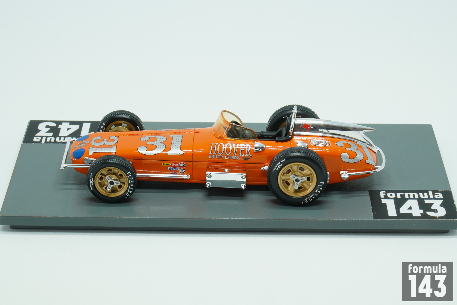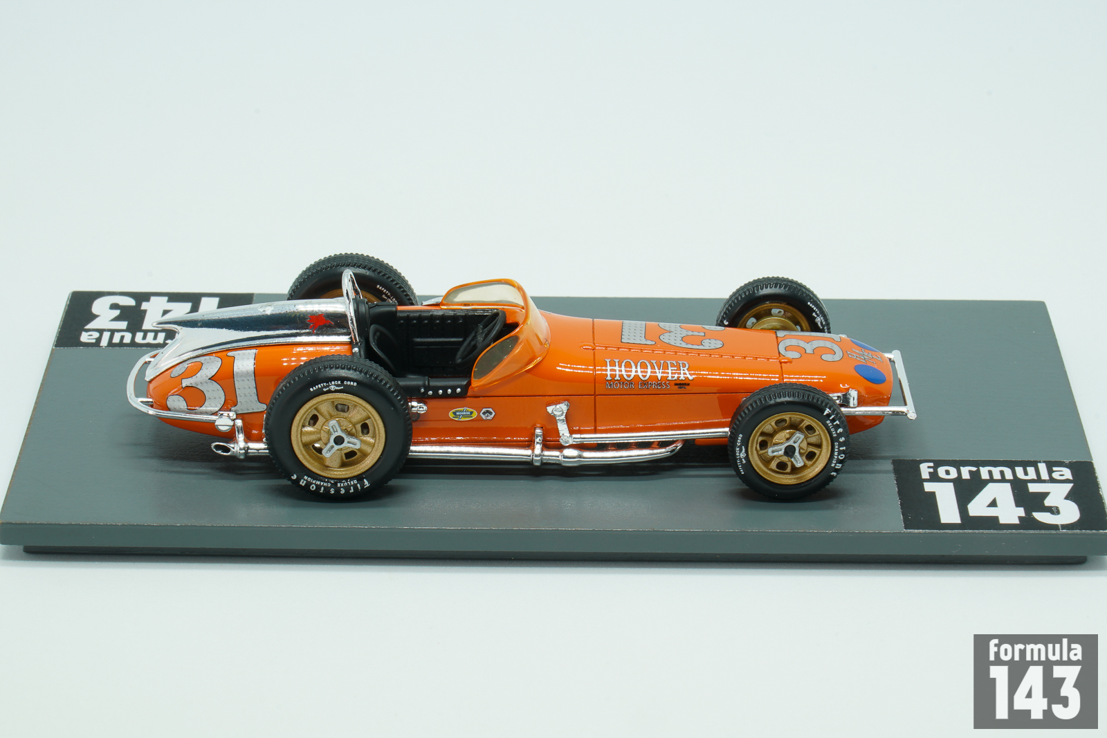 The 1961 Indianapolis 500 was won by A.J. Foyt in his Trevis – Offy named Bowes Seal Fast Spl. It was first out of four Foyt’s Indy 500 wins. Bobby Marshman, 24-years old rookie driver from Pottstown, Pennsylvania, who finished 7th, was awarded as the Rookie of the Year. Marshman drove Epperly – Offenhauser roadster officially named Hoover Motor Express after truck transport company which sponsored and entered Marshman’ car. The car was built by Quincy David “Quin” Epperly, one of the most productive Indy roadster constructors of the 1950s – 60s. In the late 1940s, Epperly worked for Frank Kurtis building racing car bodies, and in mid-1950s opened his own shop in Los Angeles. Epperly practiced a radical approach in racing car design, by placing the four-cylinder Offenhauser engine on its side, rather than in the upright position, as was the usual custom for the Indy roadsters of that era. Such a design allowed for better high-speed aerodynamics and oval-track weight distribution. As to Marshman, his racing career lasted not long. He drove in the USAC Championship Car series in the 1961-1964 seasons, with 49 career starts and a single win (at Phoenix raceway, Arizona, in 1962). In November 1964 he fatally crashed at the same oval when conducting tire tests in Lotus-Ford Indycar.