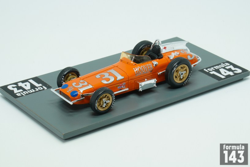 The 1961 Indianapolis 500 was won by A.J. Foyt in his Trevis – Offy named Bowes Seal Fast Spl. It was first out of four Foyt’s Indy 500 wins. Bobby Marshman, 24-years old rookie driver from Pottstown, Pennsylvania, who finished 7th, was awarded as the Rookie of the Year. Marshman drove Epperly – Offenhauser roadster officially named Hoover Motor Express after truck transport company which sponsored and entered Marshman’ car. The car was built by Quincy David “Quin” Epperly, one of the most productive Indy roadster constructors of the 1950s – 60s. In the late 1940s, Epperly worked for Frank Kurtis building racing car bodies, and in mid-1950s opened his own shop in Los Angeles. Epperly practiced a radical approach in racing car design, by placing the four-cylinder Offenhauser engine on its side, rather than in the upright position, as was the usual custom for the Indy roadsters of that era. Such a design allowed for better high-speed aerodynamics and oval-track weight distribution. As to Marshman, his racing career lasted not long. He drove in the USAC Championship Car series in the 1961-1964 seasons, with 49 career starts and a single win (at Phoenix raceway, Arizona, in 1962). In November 1964 he fatally crashed at the same oval when conducting tire tests in Lotus-Ford Indycar.