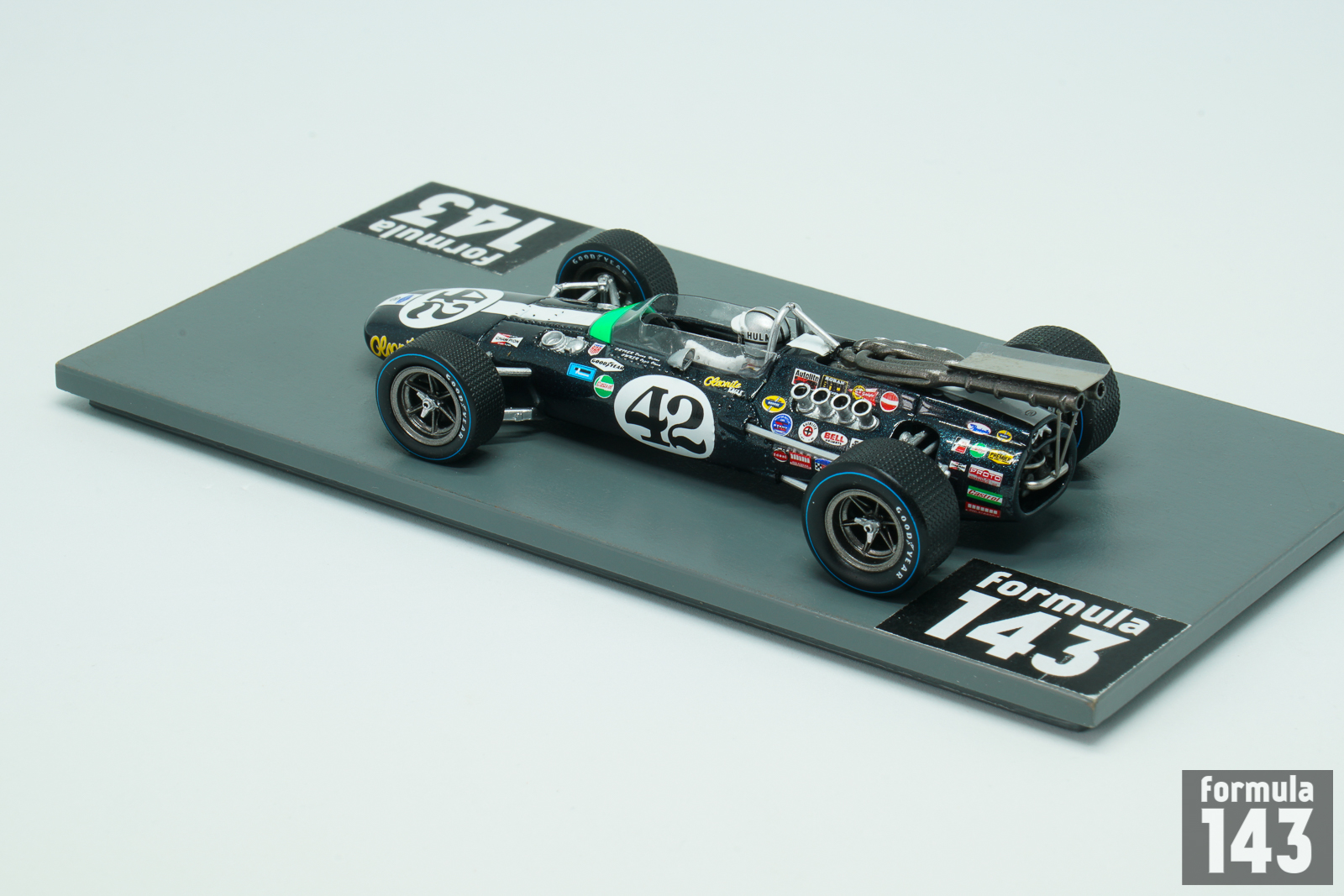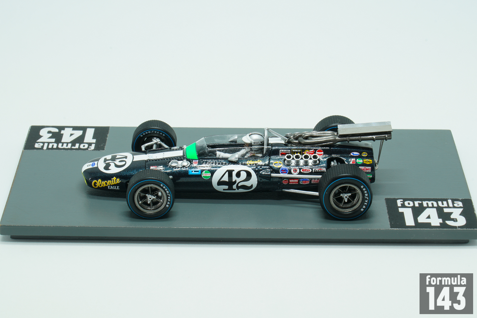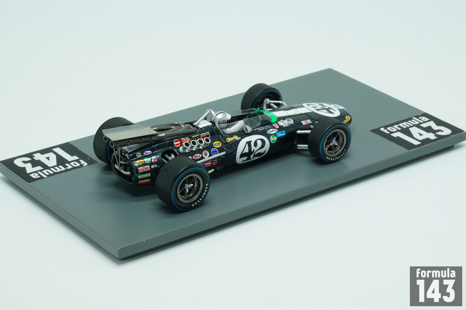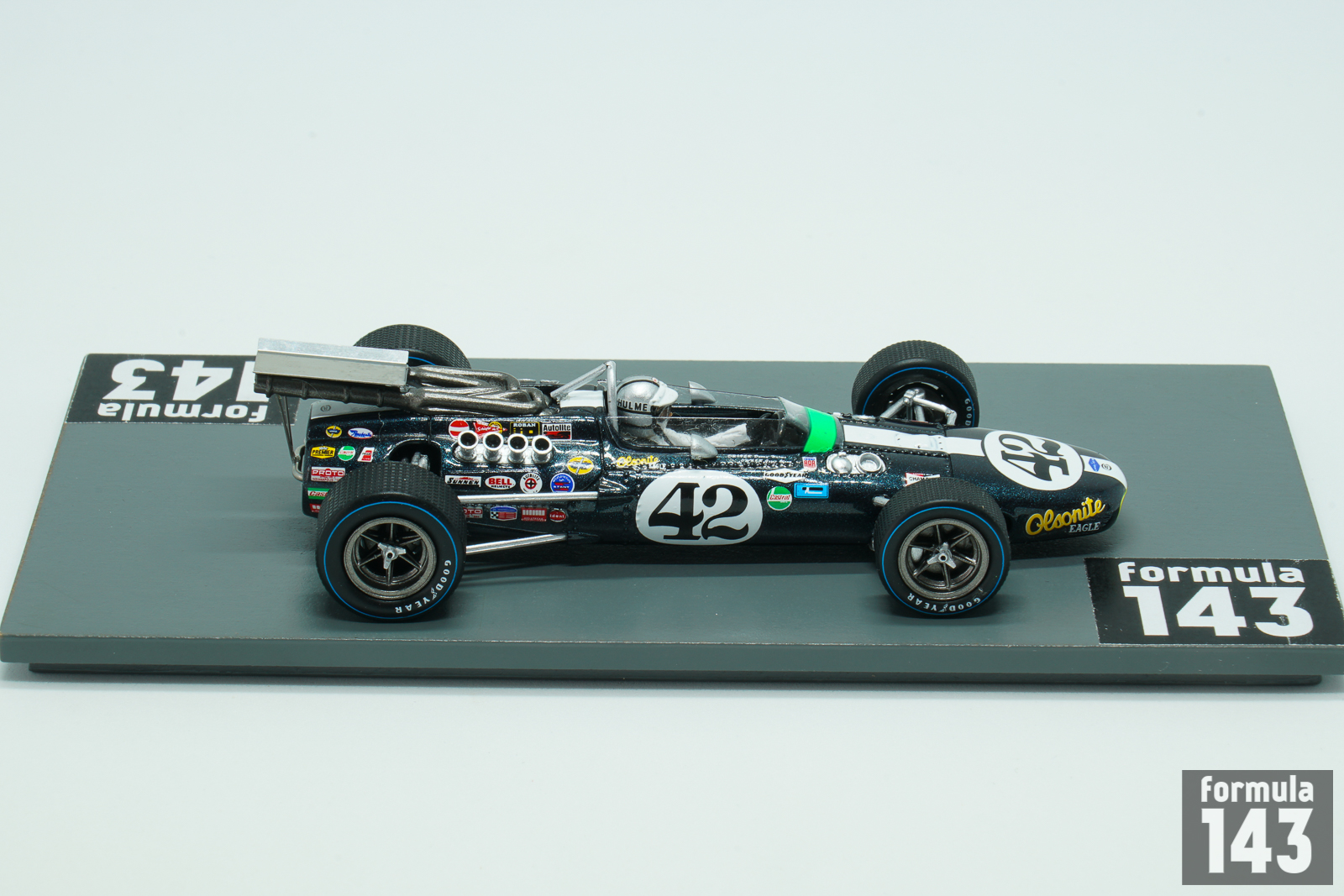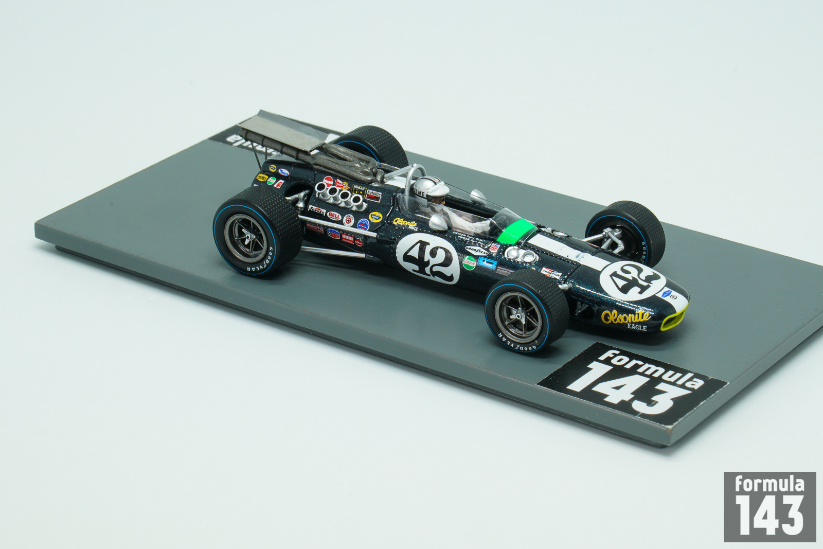 The 1968 Eagle (Mk4) was based on the previous 1966-67 model with only minor enhancements. Two works All American racers cars powered by Ford V8, driven by Dan Gurney and Denis Hulme, were entered in 1969 500 mile race. AAR team was sponsored by Olsonite Company, known for their plastic toilet seats. Five more Eagle cars also started the race for other entrants. Two of them – Bobby Unser’s Rislone and Roger McCluskey’s G.C. Murphy car were powered by turbocharged Offy engine. With just 8 laps to go Bobby Unser inherited the lead from Joe Leonard when engine of his turbo Lotus stalled, and despite gear linkage trouble, won the first of his three Indy 500 victories (1968, 1975, 1981). AAR drivers finished 2nd (Gurney) and 4th (Hulme). The New Zealander was classified next to podium for the second year in a row.