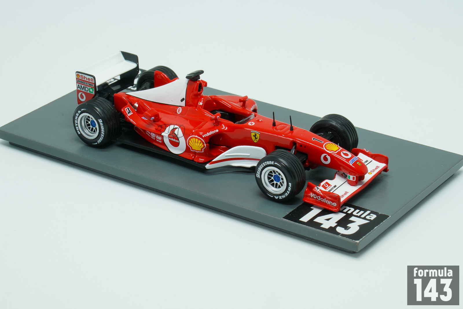 The F2003-GA was used by Scuderia Ferrari in the 2003 Formula One season. The car debuted in the mid of the season, at the Spanish Grand Prix, as the F2002, the car from the previous season, was proved to be competitive in the first part of the 2003 whilst the F2003-GA was developed further. The new car was designated F2003-GA in recognition of memory of Giovanni Agnelli, the recently deceased head of Fiat. The F2003 was based on F2002 concept of optimization of air flow, weight reduction and lowering of the center of gravity. The F2003-GA featured new sidepods and a lengthened wheelbase while engine and gearbox were developed versions of the previous model. The car won 7 out of 12 races where it was entered. Michael Schumacher won 5 Grand Prix (plus one in the F2002) and took his 6th Driver’s title beating Fangio’s record. The championship was decided at the last race of the season in Japan. McLaren driver Kimi Raikkonen needed to win and Schumacher not to score a single point in order for him to become Driver’s Champion. Schumacher finally finished in 8th position and score a single point he only needed to secure he title. Raikkonen, who started the race from eighth position, was able to move to the second, but the victory went to Barichello. Rubinho’s win saw Ferrari clinch their 13th Constructors Championship title, the team’s fifth title in a row.