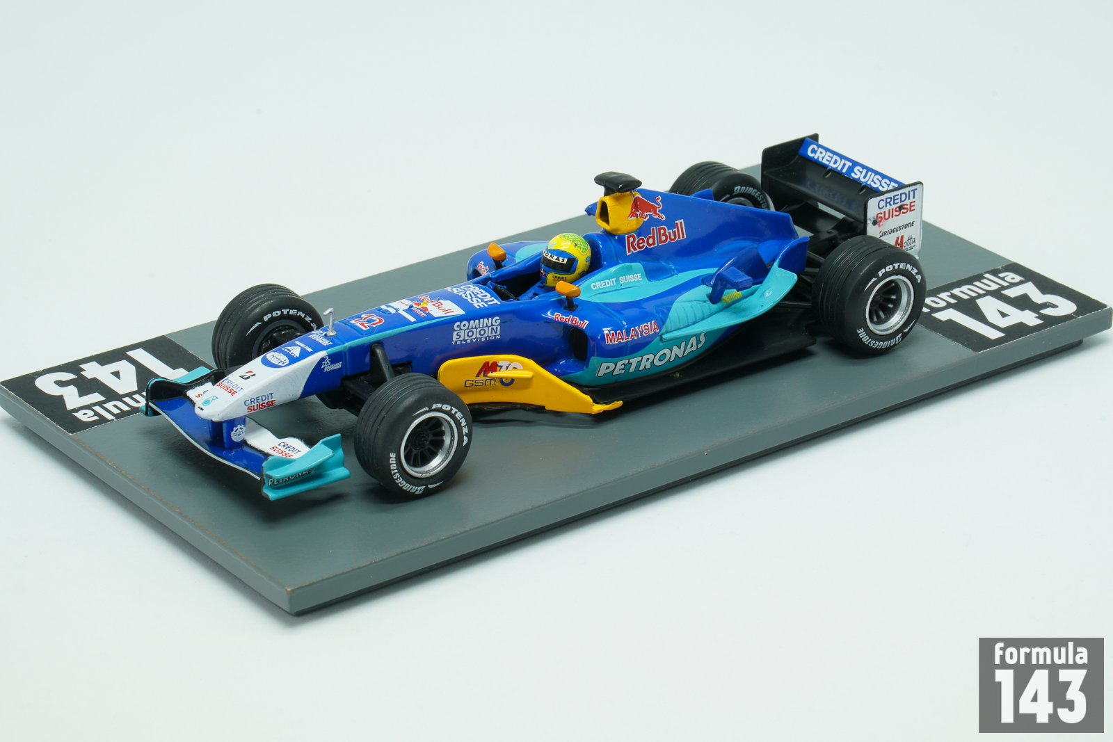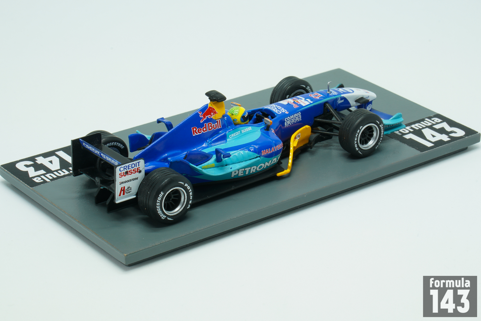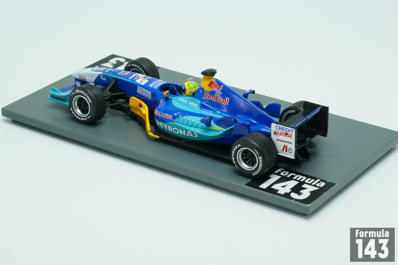 The C23 entered by Sauber Petronas team for 2004 FIA Formula One World Championship was designed by Willy Rampf based on the C22 from the previous season. The car was powered by Ferrari V10 engine badged as Petronas. It also featured Ferrari 7-speed gearbox, while the fuel was provided by Petronas. The C23 was the last Sauber car sponsored by Red Bull before Austrian energy drink manufacturer departure to Red Bull racing in 2005. Giancarlo Fisichella, who was swapped with Nick Heidfeld from Jordan, and Felipe Massa, who rejoined the team after one year as Ferrari test driver, drove the C23 in 2004. Fisichella scored 22 points with a best finish of 4th place at the Canadian Grand Prix and took the 11th position in the Drivers’ Championship standings. Massa got 12 points also with a best finish of 4th place at the Belgian Grand Prix and was classified 12th in the championship. The team finished the season on the 6th position in the Constructor’s standings.