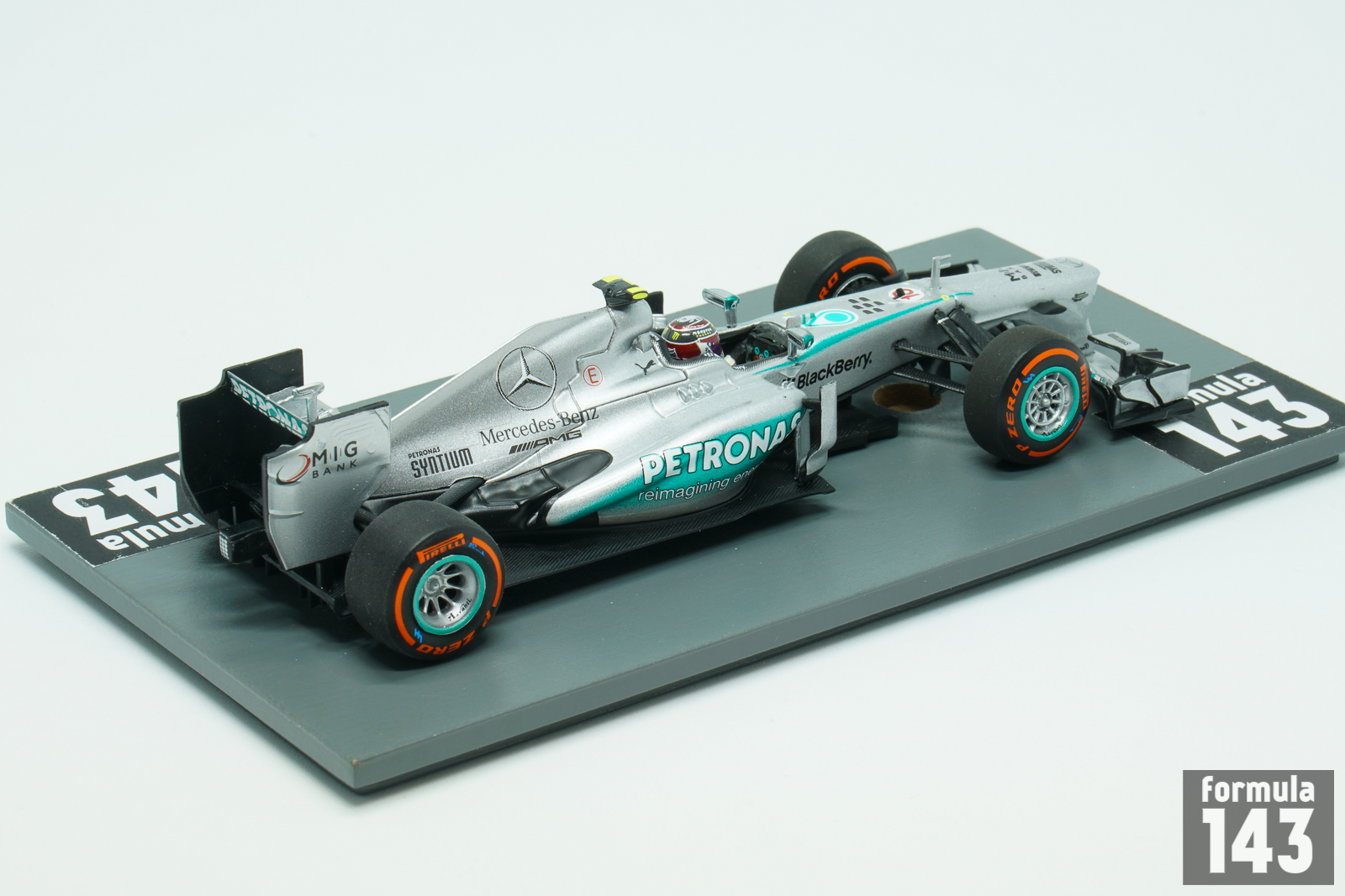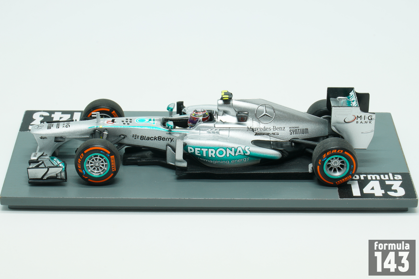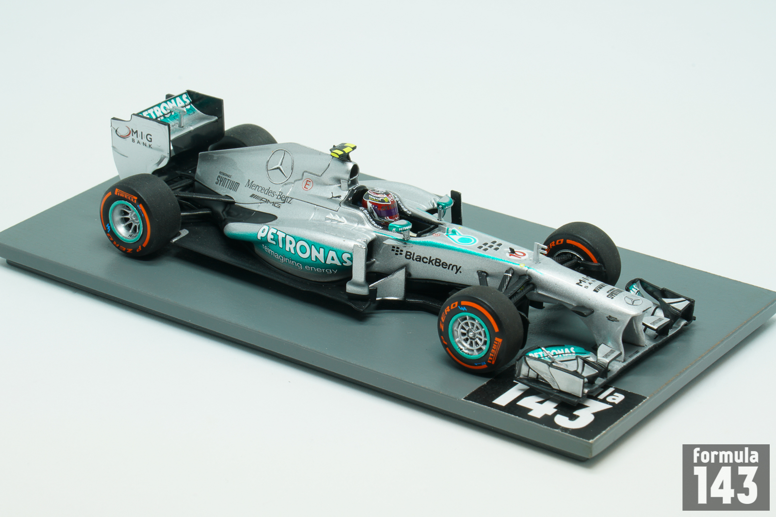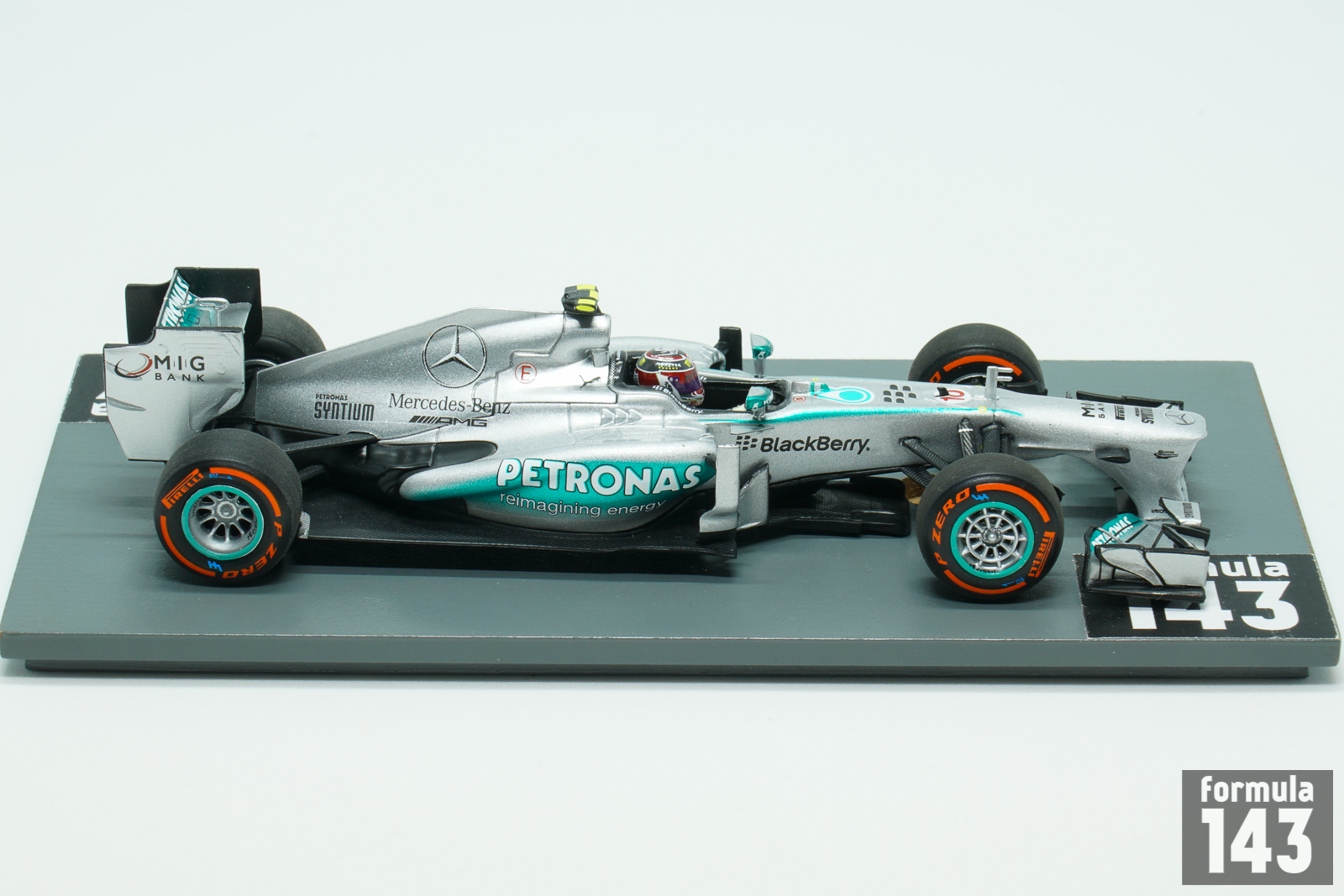 The F1 W04 was designed by the team led by Engineering Director Aldo Costa, under the coordination of Technical Director Bob Bell. With the technical regulations remaining stable in 2013, ahead of major changes for 2014, the basic vehicle concept of the F1 W04 was a sophisticated evolution of last year’s car. It was driven by 2008 World Champion Lewis Hamilton, who joined the team after Michael Schumacher’s retirement, and Nico Rosberg, who remained with the team for a fourth season. Mercedes took 3 victories in 2012. Rosberg won at Monaco and Silverstone, and Hamilton secured his first win for the team at Hungaroring. In the final driver standings of the season Hamilton and Rosberg were 4th and 6th, respectively, and the Mercedes team finished 2nd in the Constructors’ Championship, a huge improvement from 5th in 2012.