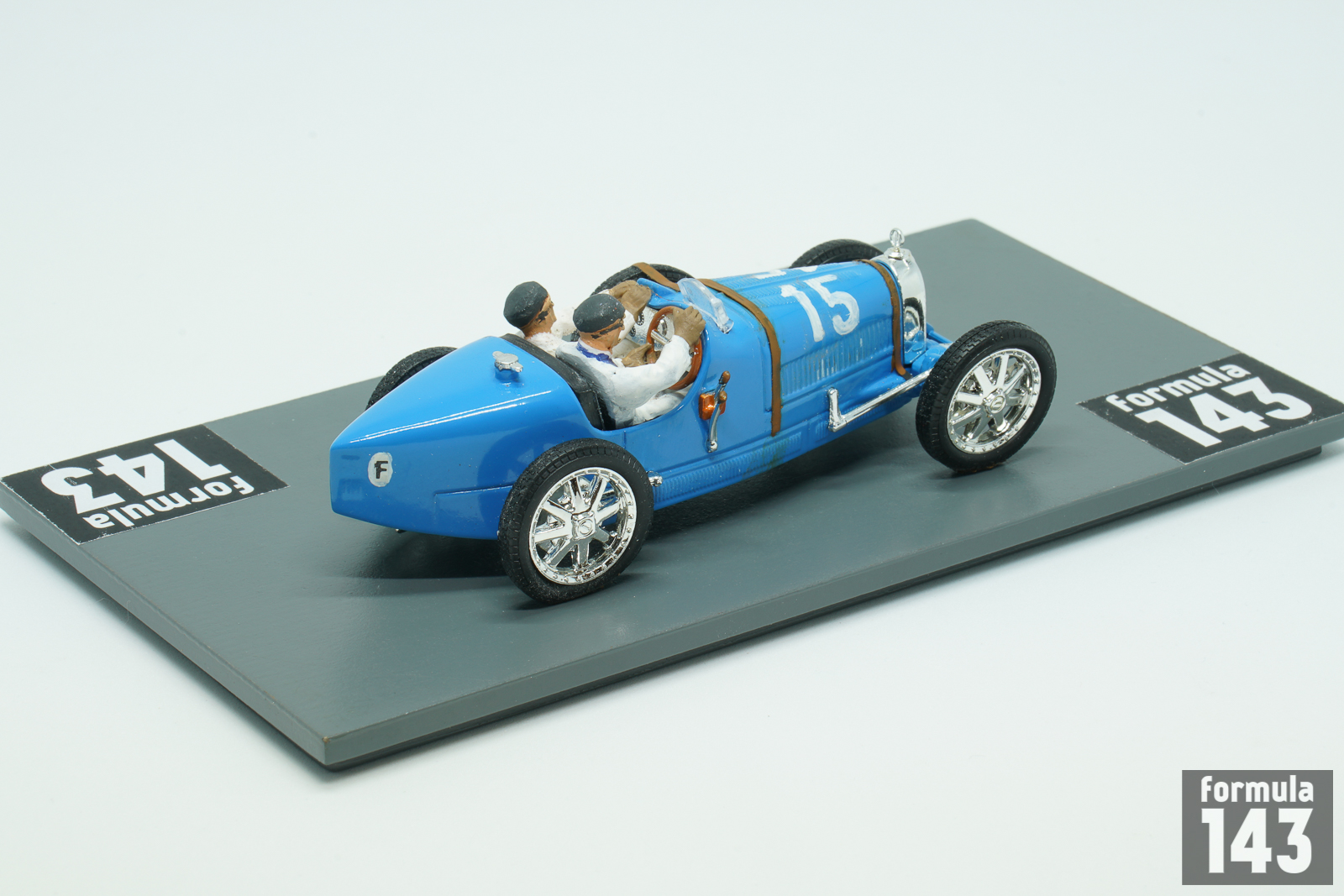 Andre Dubonnet, son of the founder of the Dubonnet apéritif firm, was an industrialist, fighter pilot, athlete, racing driver and inventor. He was a fighting pilot during World War I ending up with six aerial victories. During the 1920s, Dubonnet competed in Olympic bobsledding, as well as racing cars for Bugatti and Hispano-Suiza. He took part in the 1928 Olympic Games at St. Moritz as captain for the French #2 bobsleigh team, finishing 15th. He was also known as inventor. His independent suspension was used on the Alfa Romeo P3 from 1935 onwards and he also sold the invention to General Motors. In the 1926 Targa Florio Dubonnet drove independently entered 8-cylinder 2000 Bugatti T35, and finished a credible 5th overall, winning the 2000 cc category with the average speed 69.7 km/h. Only three new 35T 8-cylinder 2300 works Bugattis by Meo Costantini, Ferdinando Minoia and Jules Goux, and 5.8-litre Itala driven by Emilio Materassi was ahead of Dubonnet #15 blue car. The model is the conversion based on IXO Bugatti model from Altaya “100 ans de sport automobile” collection.