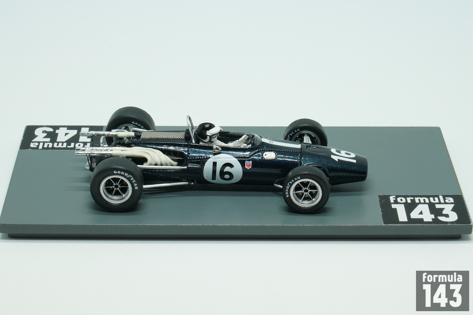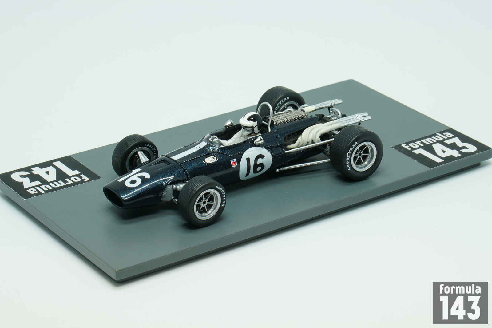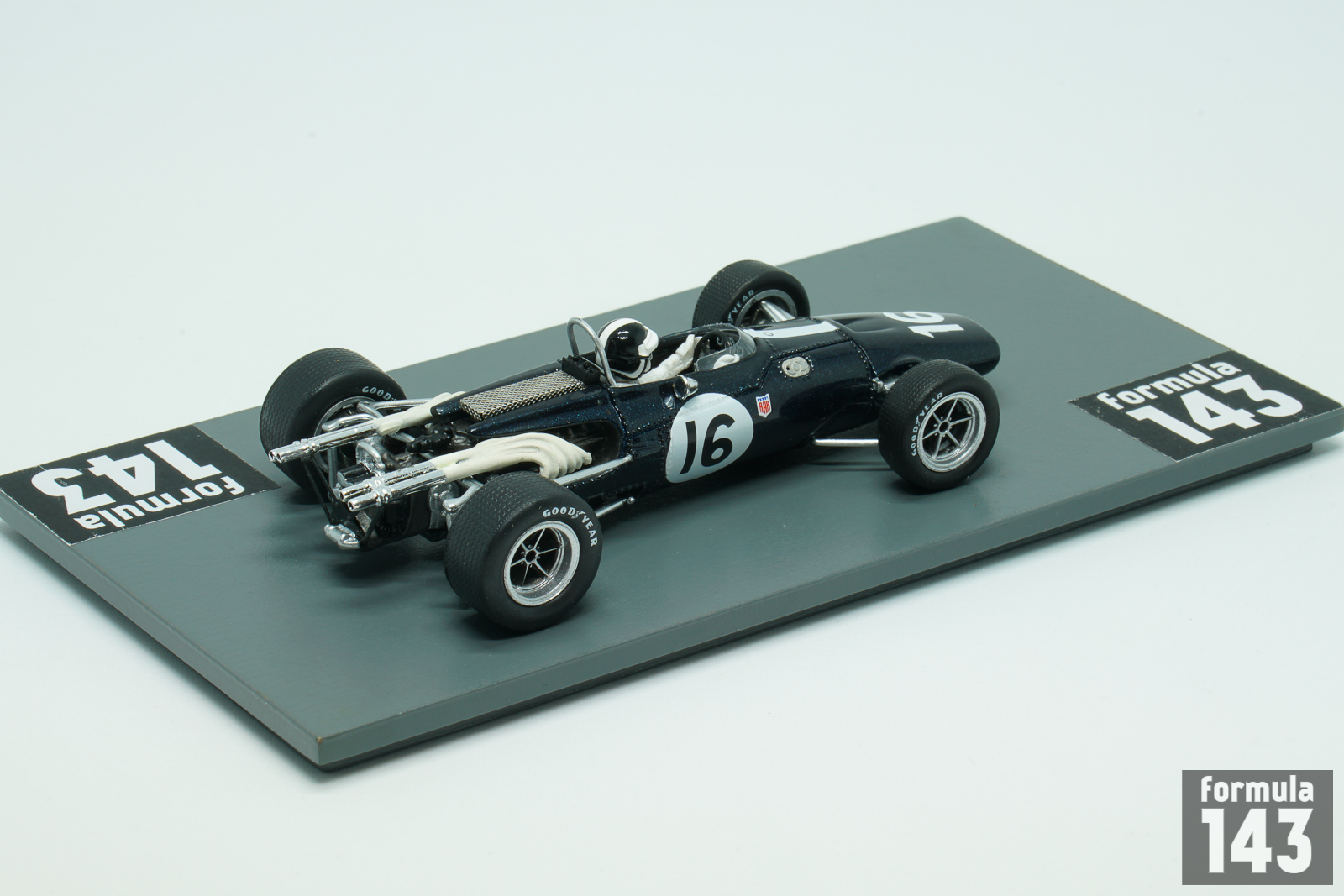 The Eagle Mk1, also referred to as the Eagle T1G, designed by Len Terry for Dan Gurney’s Anglo American Racers team, was the first F1 car by Eagle. The car made its race debut at the 1966 Belgian Grand Prix, and was used by various entrants until 1969. Gurney himself acted as main team’s driver achieving two 5th positions in 1966 World Championship Grand Prixs (at Reims and Mexico City). American Bob Bondurant drove the second Eagle car in two final rounds of the Championship held in North America. At Watkins Glen he drove Climax-powered Mk1 and was disqualified for the outside assistance, while at Mexico City in his last F1 race Bob retired in Weslake-powered car.