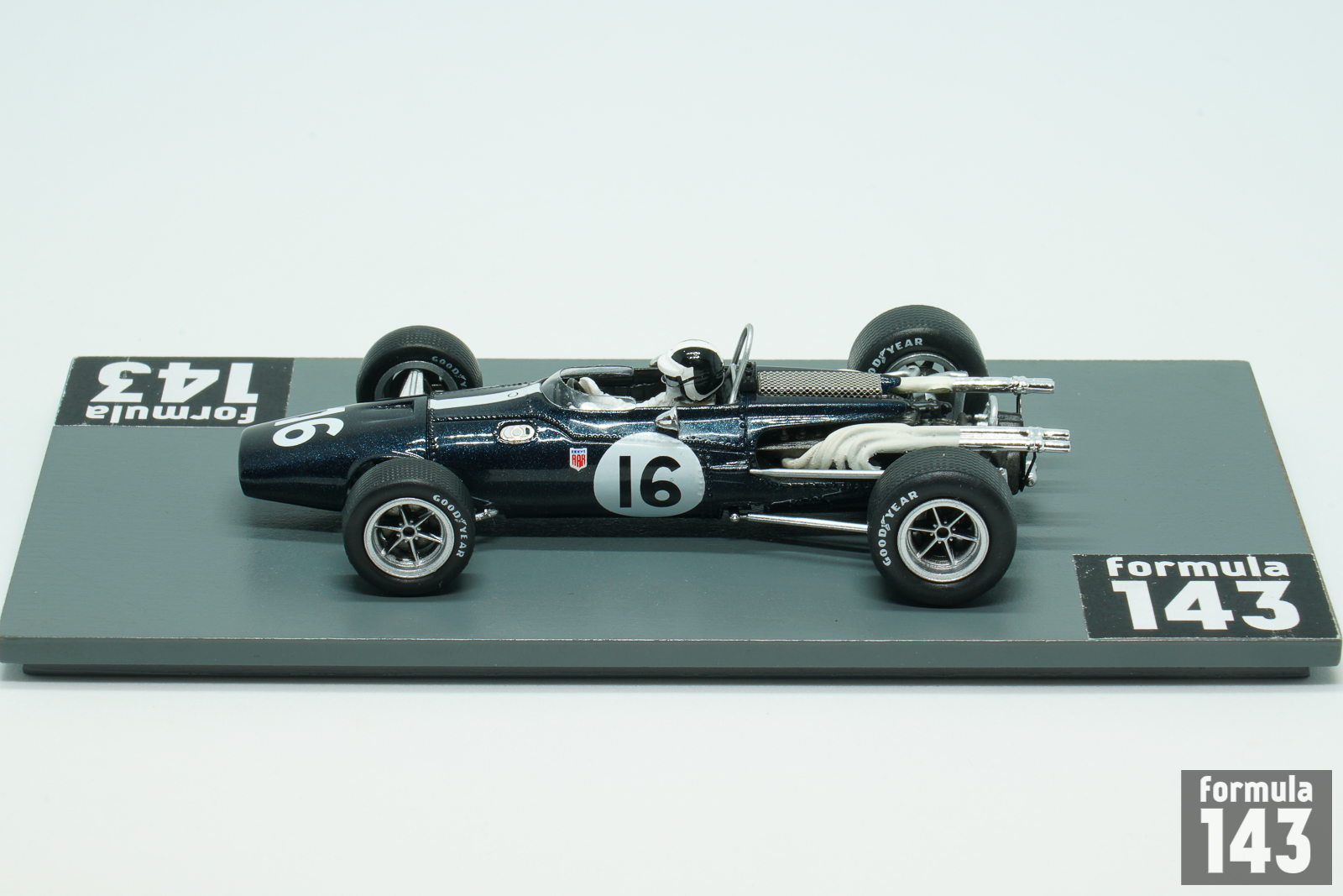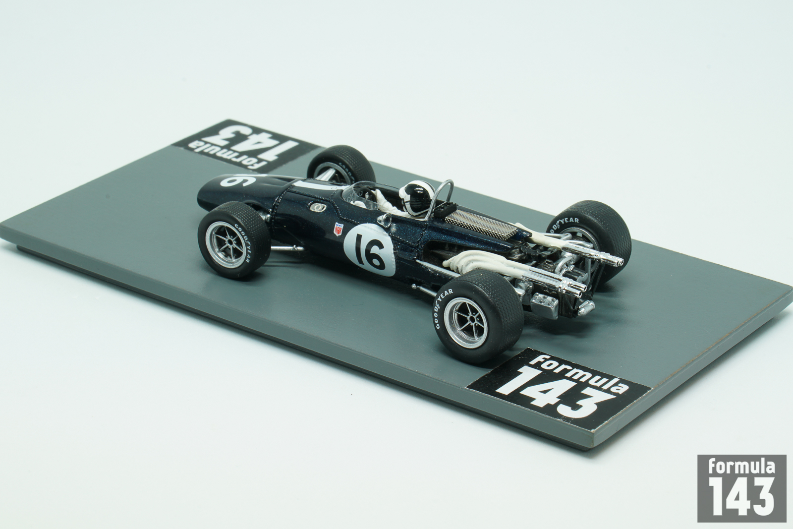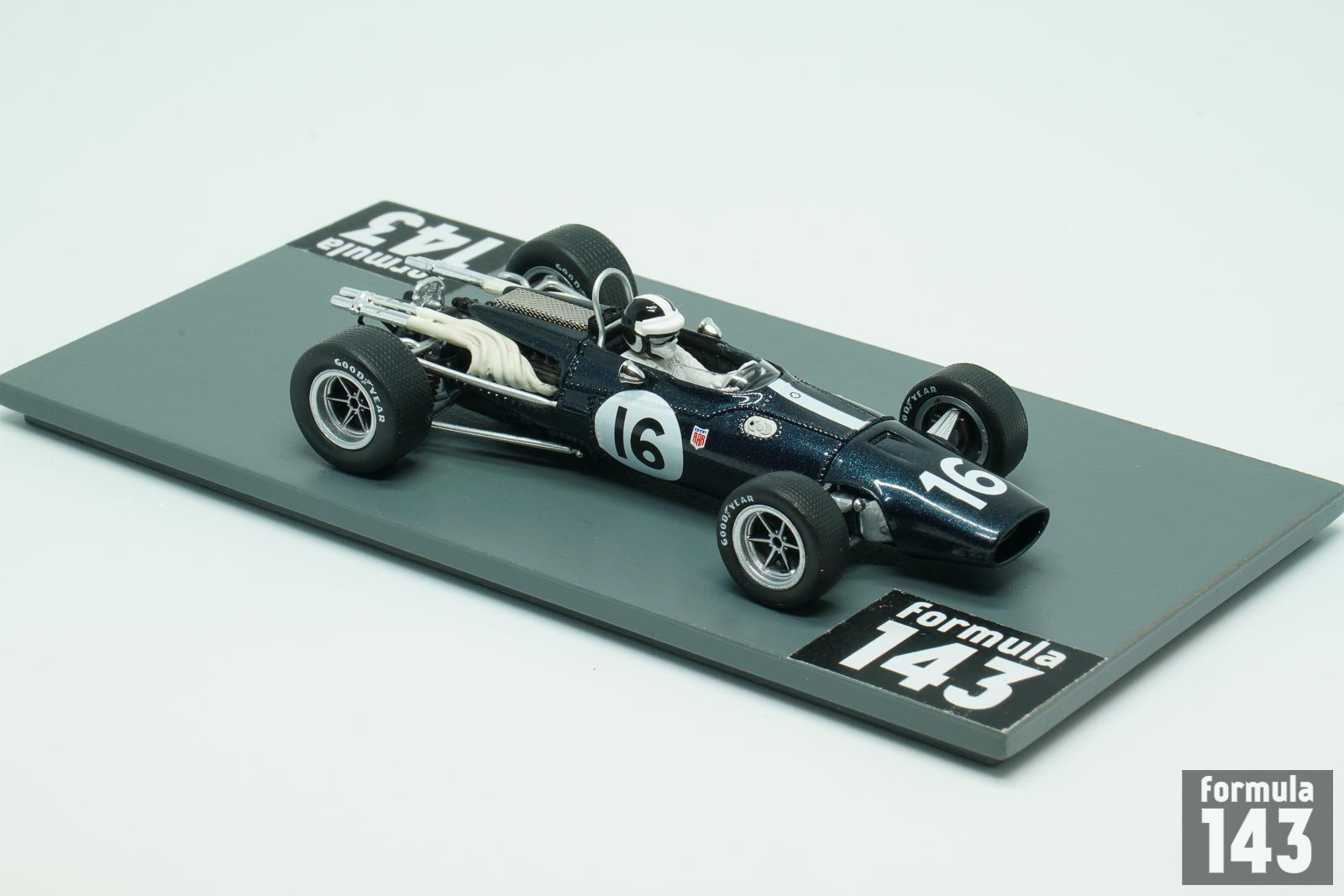 The Eagle Mk1, also referred to as the Eagle T1G, designed by Len Terry for Dan Gurney’s Anglo American Racers team, was the first F1 car by Eagle. The car made its race debut at the 1966 Belgian Grand Prix, and was used by various entrants until 1969. Gurney himself acted as main team’s driver achieving two 5th positions in 1966 World Championship Grand Prixs (at Reims and Mexico City). American Bob Bondurant drove the second Eagle car in two final rounds of the Championship held in North America. At Watkins Glen he drove Climax-powered Mk1 and was disqualified for the outside assistance, while at Mexico City in his last F1 race Bob retired in Weslake-powered car.