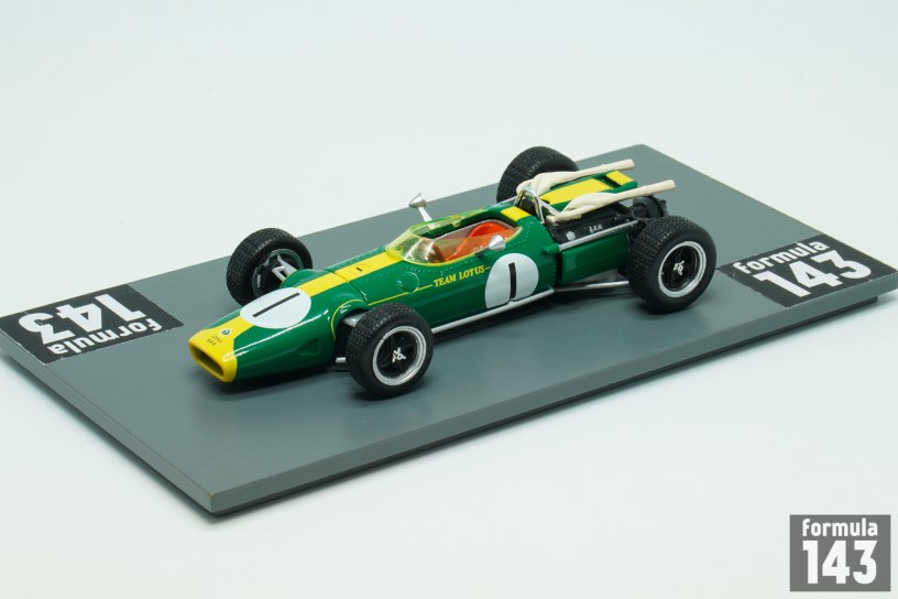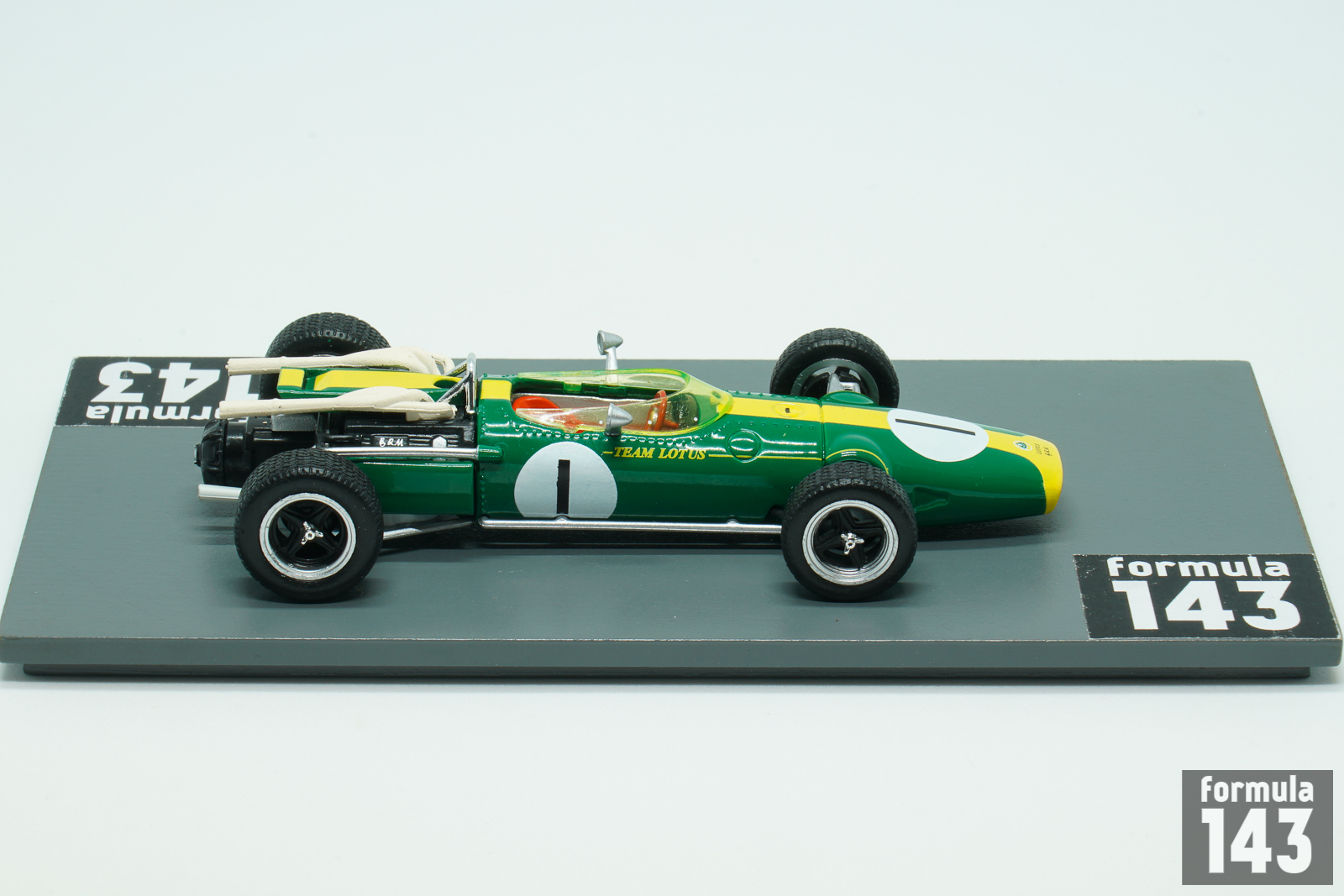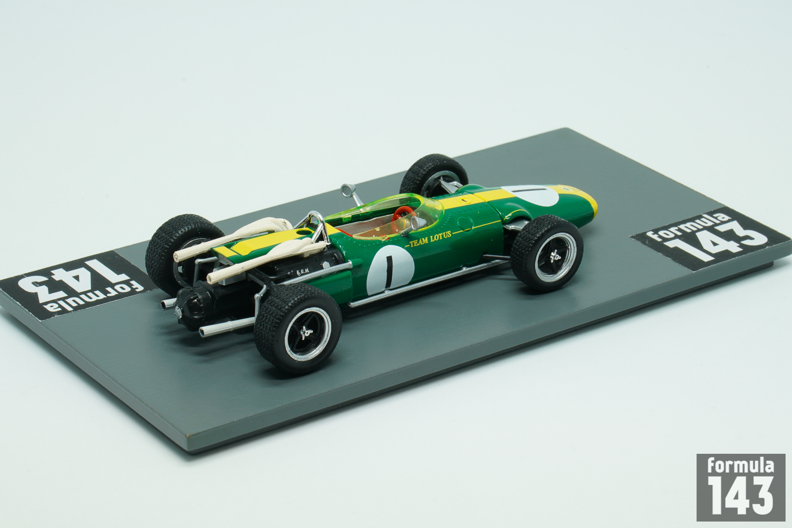 In the 1966 season with new regulations, which increased the engine capacity to 3 litres, Lotus was waiting for new Cosworth engine, the DFV, to be introduced for the 1967 Formula One season. Lotus used the 33 model with bored out 2 litre Climax V8 and BRM V8 engines for the early races of 1966. As an interim measure Chapman produced his Lotus 43 after he made a deal for use of the BRM P75 H16 3 litre engine. The 43 was partially based on the Lotus 38 Indycar, due to Chapman’s experience at Indy with larger engine capacity and tyre/suspension setup. The car debuted at Monza where Clark retired, but in the next race, at Watkins Glen, Clark drove the Lotus 43 to victory, his and team’s only win in 1966, the occasion also marking the first victory for the H16 BRM engine.