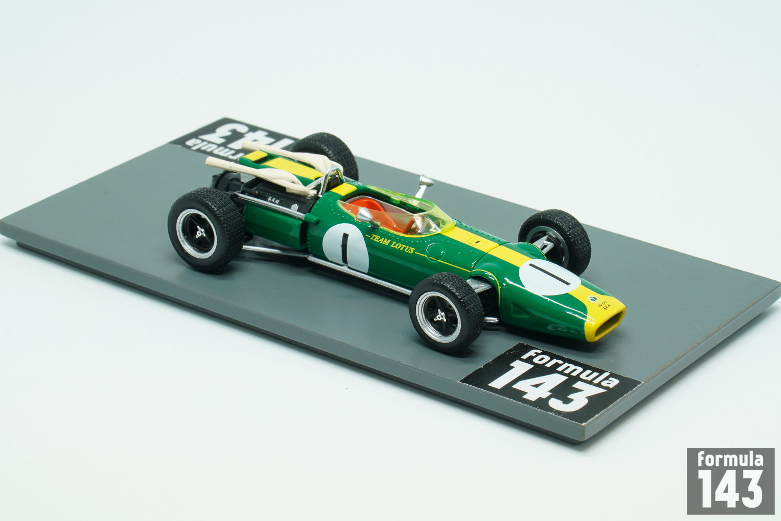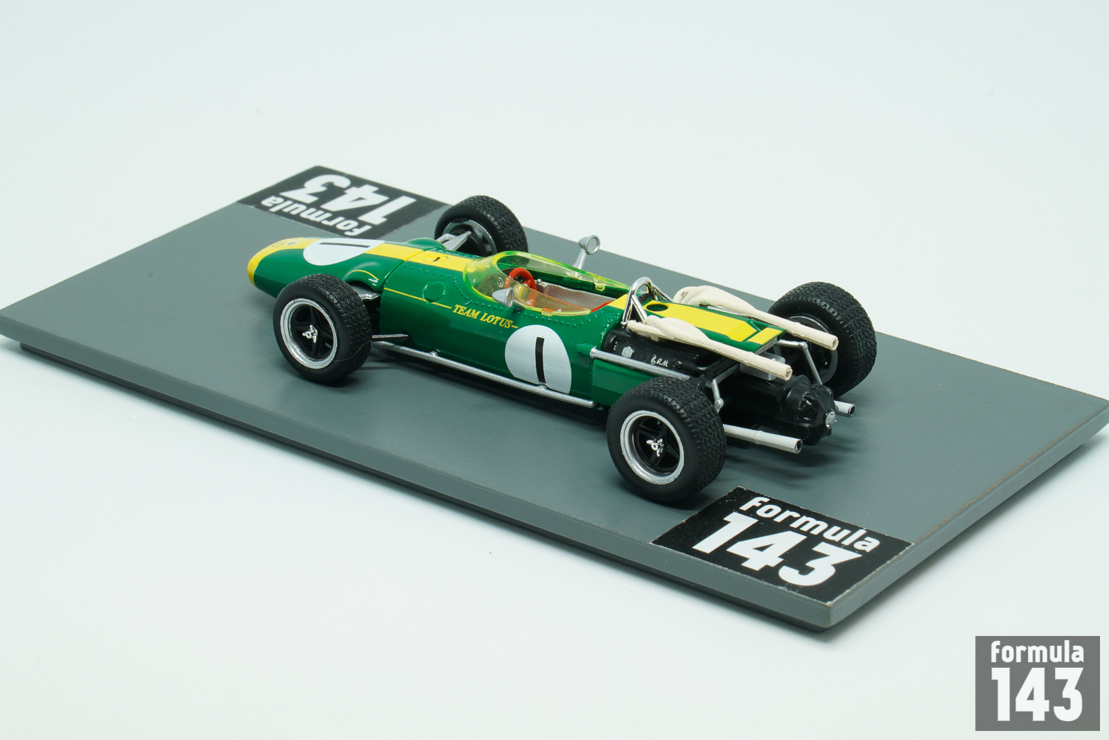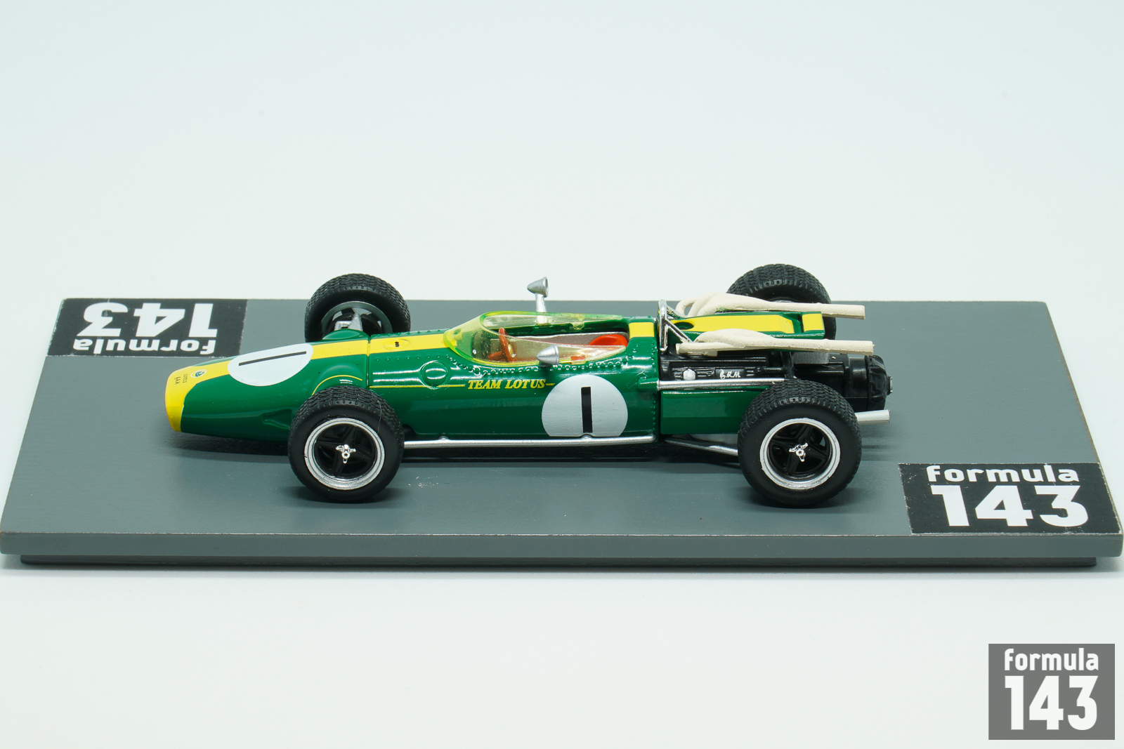 In the 1966 season with new regulations, which increased the engine capacity to 3 litres, Lotus was waiting for new Cosworth engine, the DFV, to be introduced for the 1967 Formula One season. Lotus used the 33 model with bored out 2 litre Climax V8 and BRM V8 engines for the early races of 1966. As an interim measure Chapman produced his Lotus 43 after he made a deal for use of the BRM P75 H16 3 litre engine. The 43 was partially based on the Lotus 38 Indycar, due to Chapman’s experience at Indy with larger engine capacity and tyre/suspension setup. The car debuted at Monza where Clark retired, but in the next race, at Watkins Glen, Clark drove the Lotus 43 to victory, his and team’s only win in 1966, the occasion also marking the first victory for the H16 BRM engine.