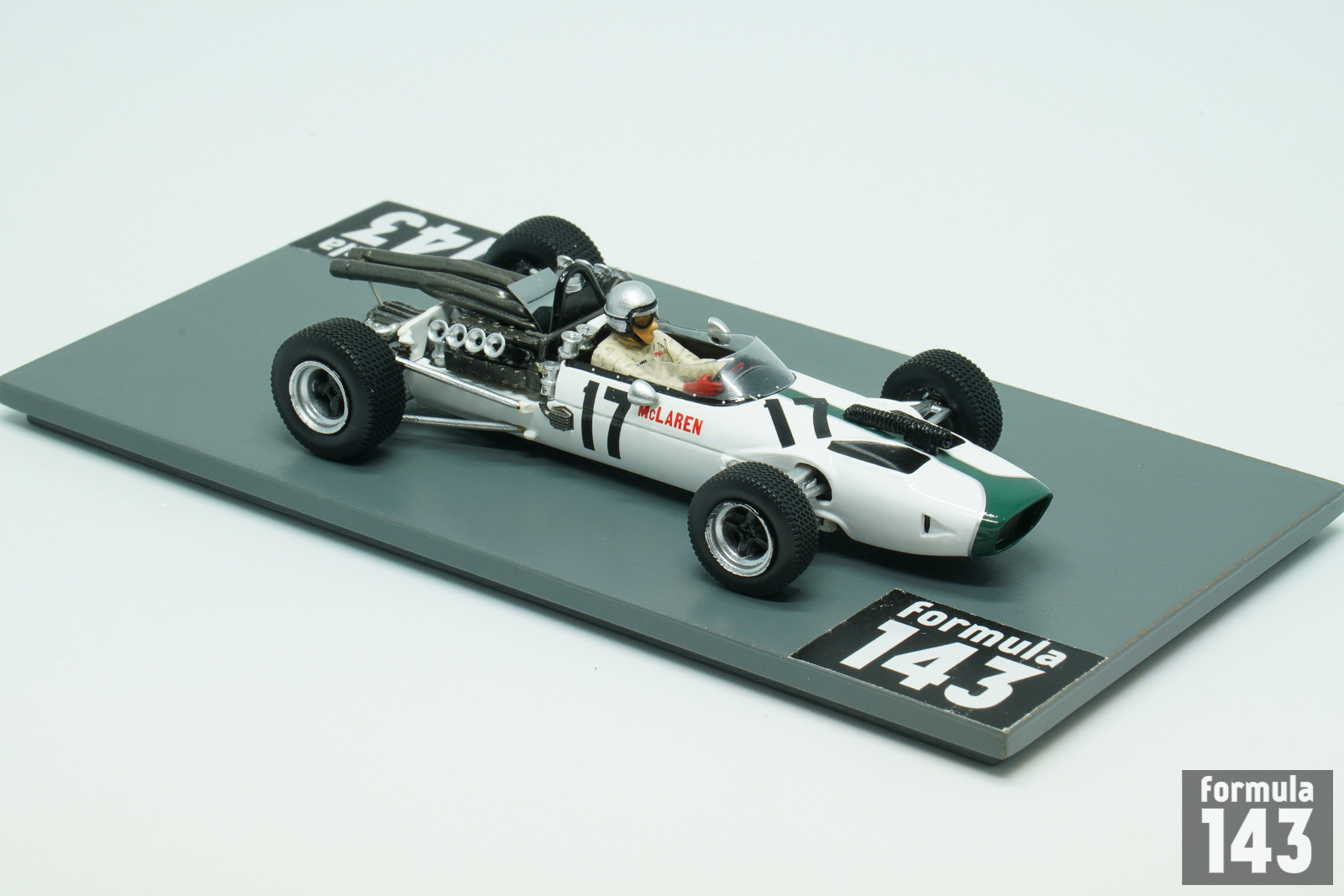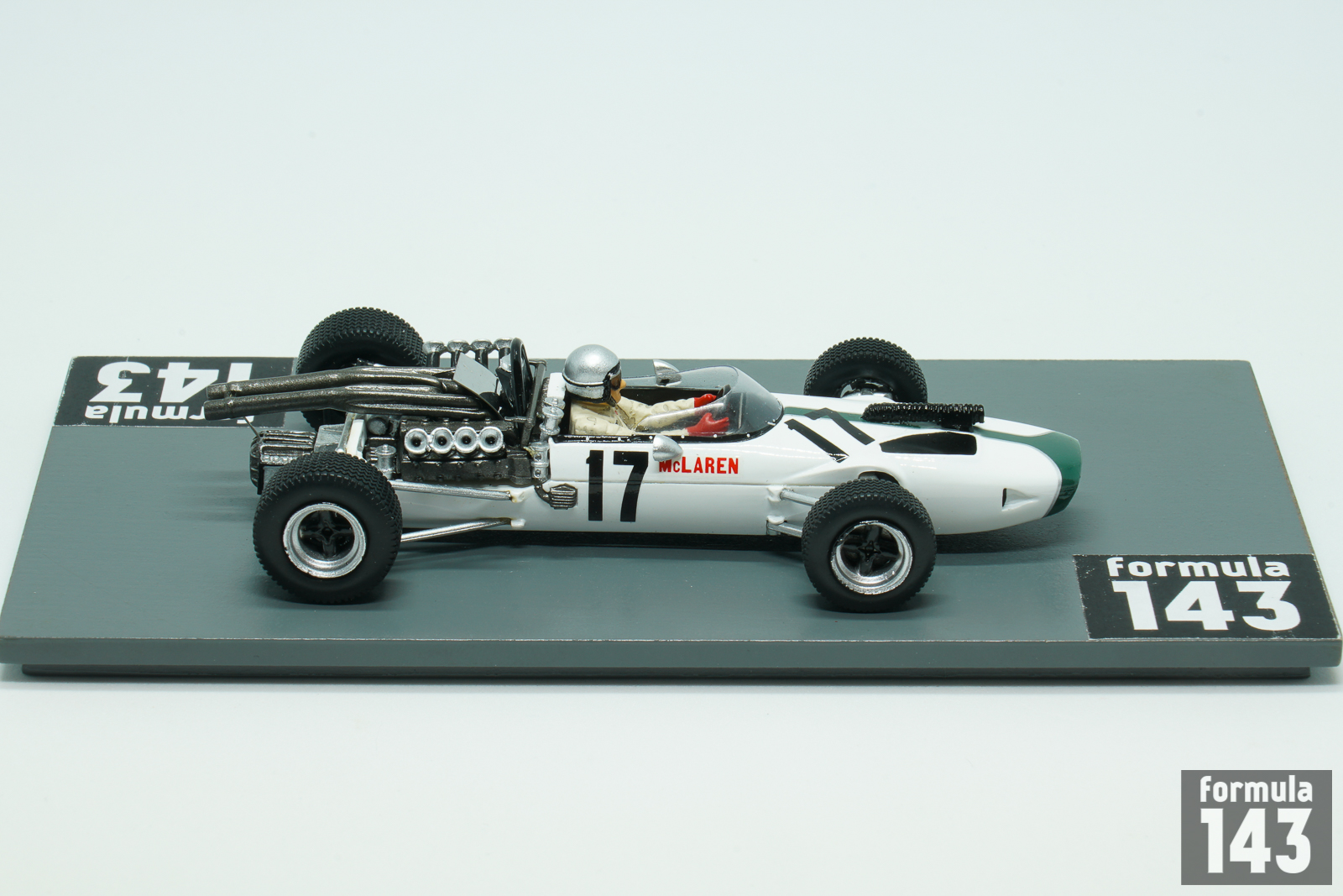 Bruce McLaren formed his own team, Bruce McLaren Motor Racing, in 1963. For two years the McLaren team had raced in the Tasman Series, a competition for single-seaters that ran during the Formula One world championship off-season, and in various sports car races, while Bruce continued to race in F1 for Cooper Car. In 1965 McLaren decided to build his own Formula One car to race the following year and enlisted Robin Herd, former aerospace engineer, to design the car. The McLaren 2B had monocoque chassis constructed from Malite, a material formed by a sheet of balsa wood being compressed between two thin sheets of aluminium. To power his new car McLaren chose to reduce 4.2-litre Ford V8 4-camshft Indy engine by using a shorter stroke. The new power unit having a capacity of 2995 cc and producing 303 bhp, faced various problems and forced McLaren to also use a 3-litre Serenissima sports car engine, which produced only 260 bhp and was equally unsuccessful. The M2B driven by Bruce debuted at Monaco Grand Prix, powered by Ford. McLaren retired in that race, switched to Serenissima for British Grand Prix where he finished 6th. Then after several non-starts and withdrawals, McLaren returned with improved Ford for two North American F1 races. At Watkins Glen Bruce was able to finish 5th, while at Mexico City M2B retired again with engine troubles.