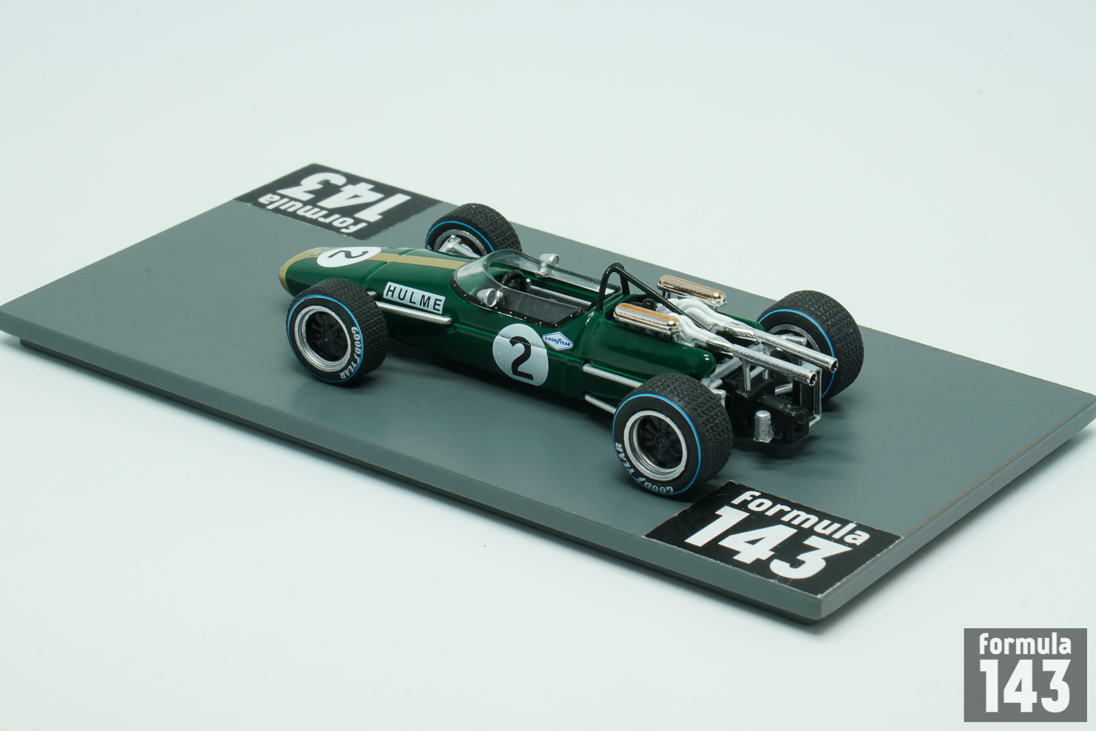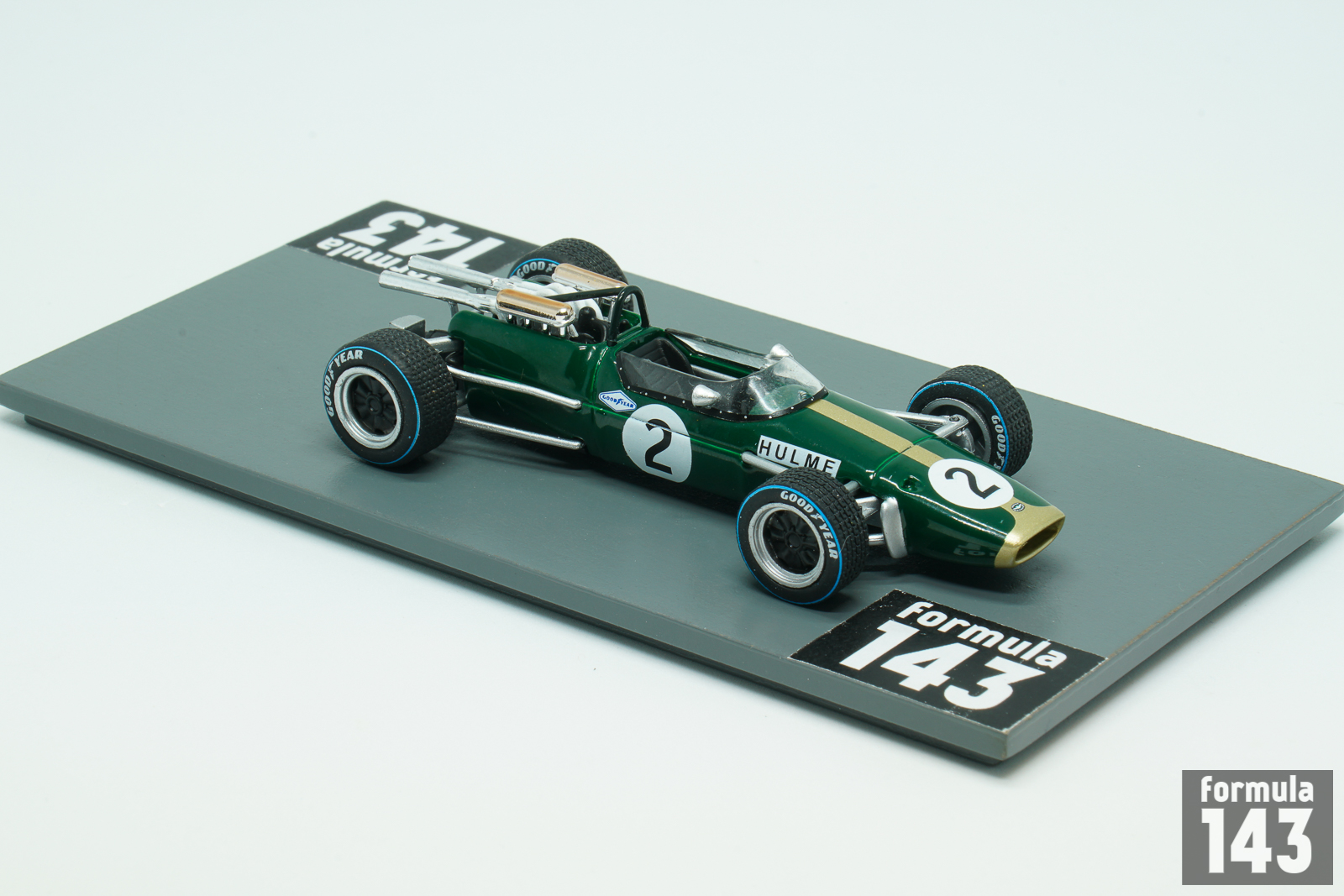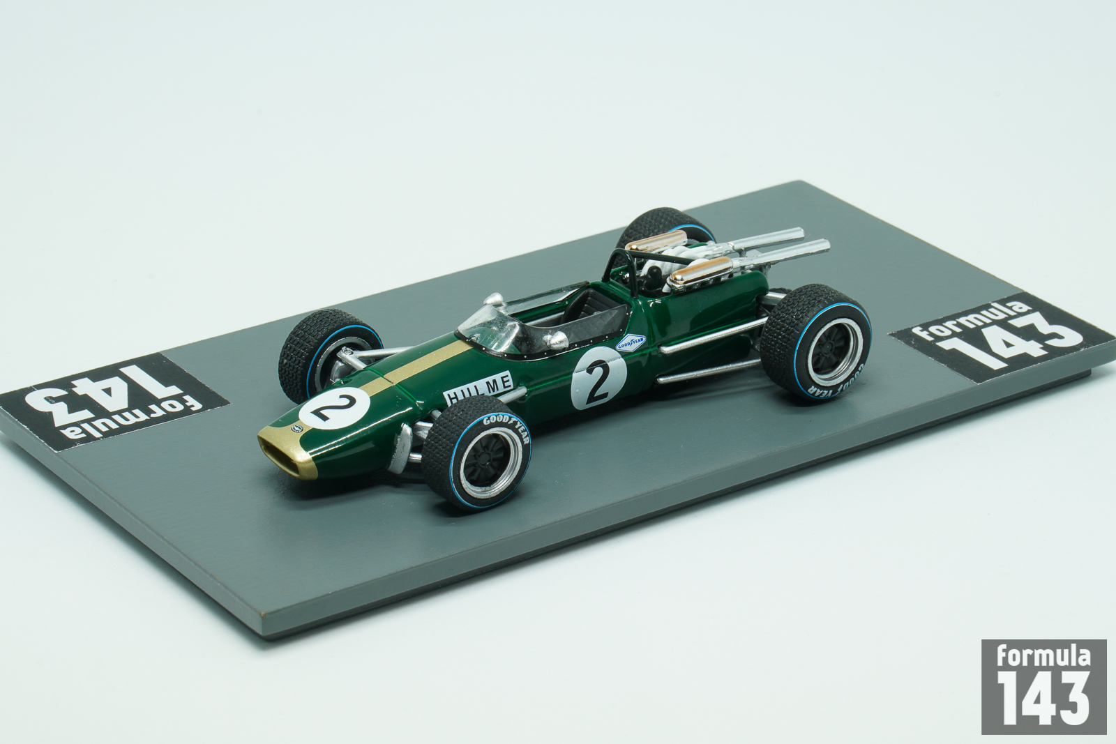 The Brabham car for the 1967 season was designed by Ron Tauranac based on previous season winning BT20 and Formula 2 light and compact BT23. The car had fibreglass body on tubular steel space frame chassis chassis – Tauranac still preferred space frame while other Formula One designers shifted to monococque chassis. The power was provided by entirely new Repco 740 engine. The car appeared at Dutch Grand Prix, while first three races of the Championship Jack Brabham and Denny Hulme have started on BT20. Danny Hulme from New Zeeland won in BT24 in Monaco and Germany and took the Championship due to his great consistency throughout the whole season. His teammate Jack Brabham, won in France and Canada and took the second position in the Drivers’ Champoinship, 5 points behind Denny Hulme. See also model of BT24 driven by Hulme from RBA Collection.