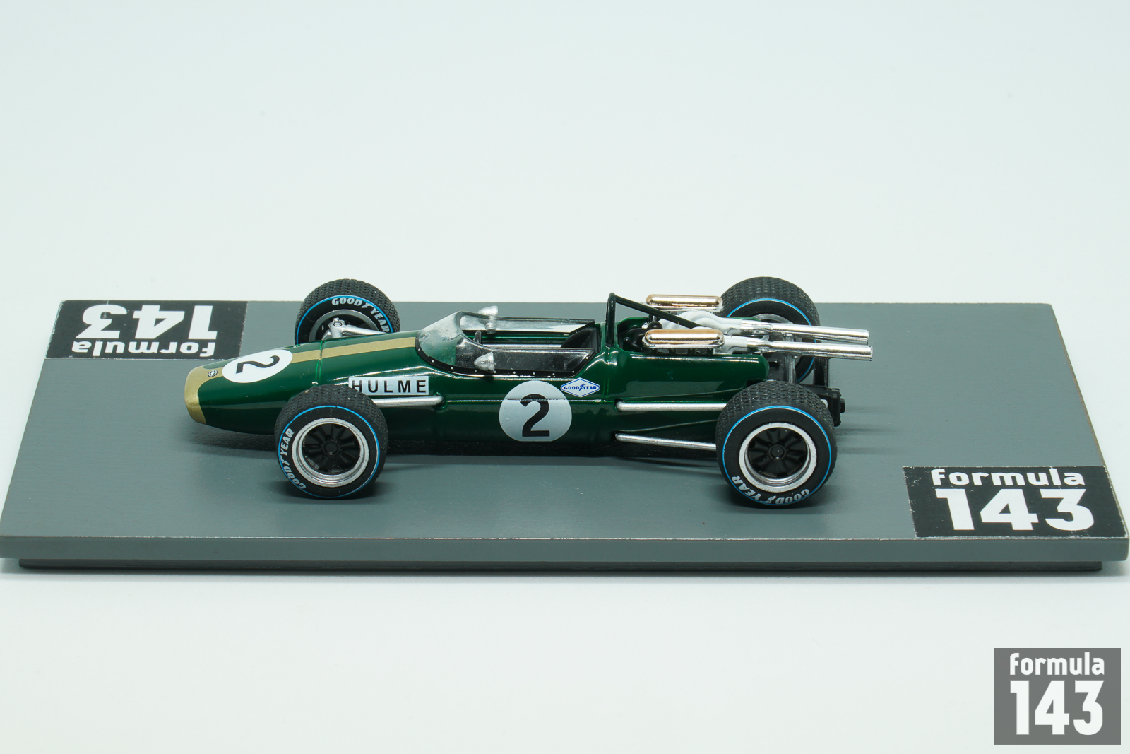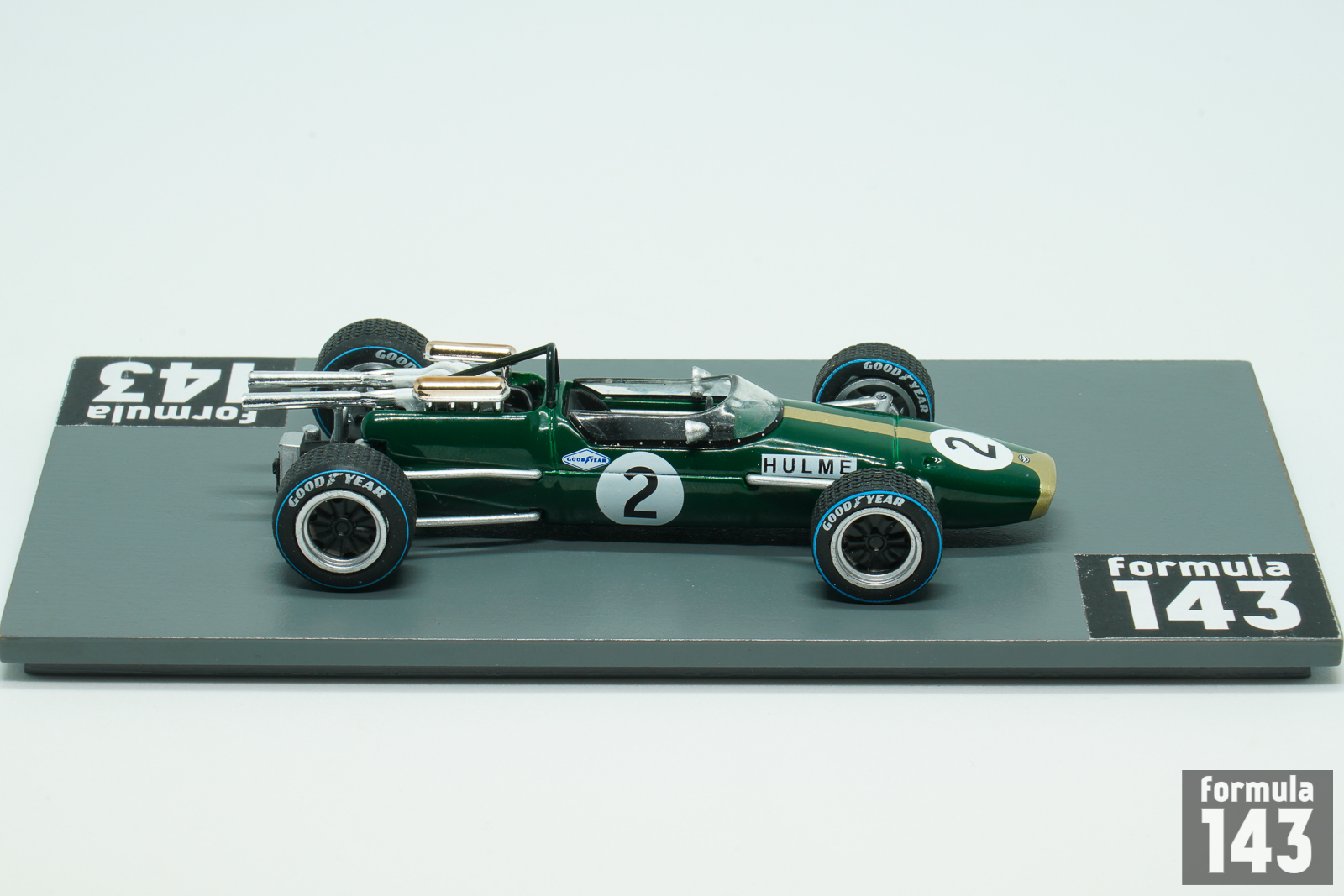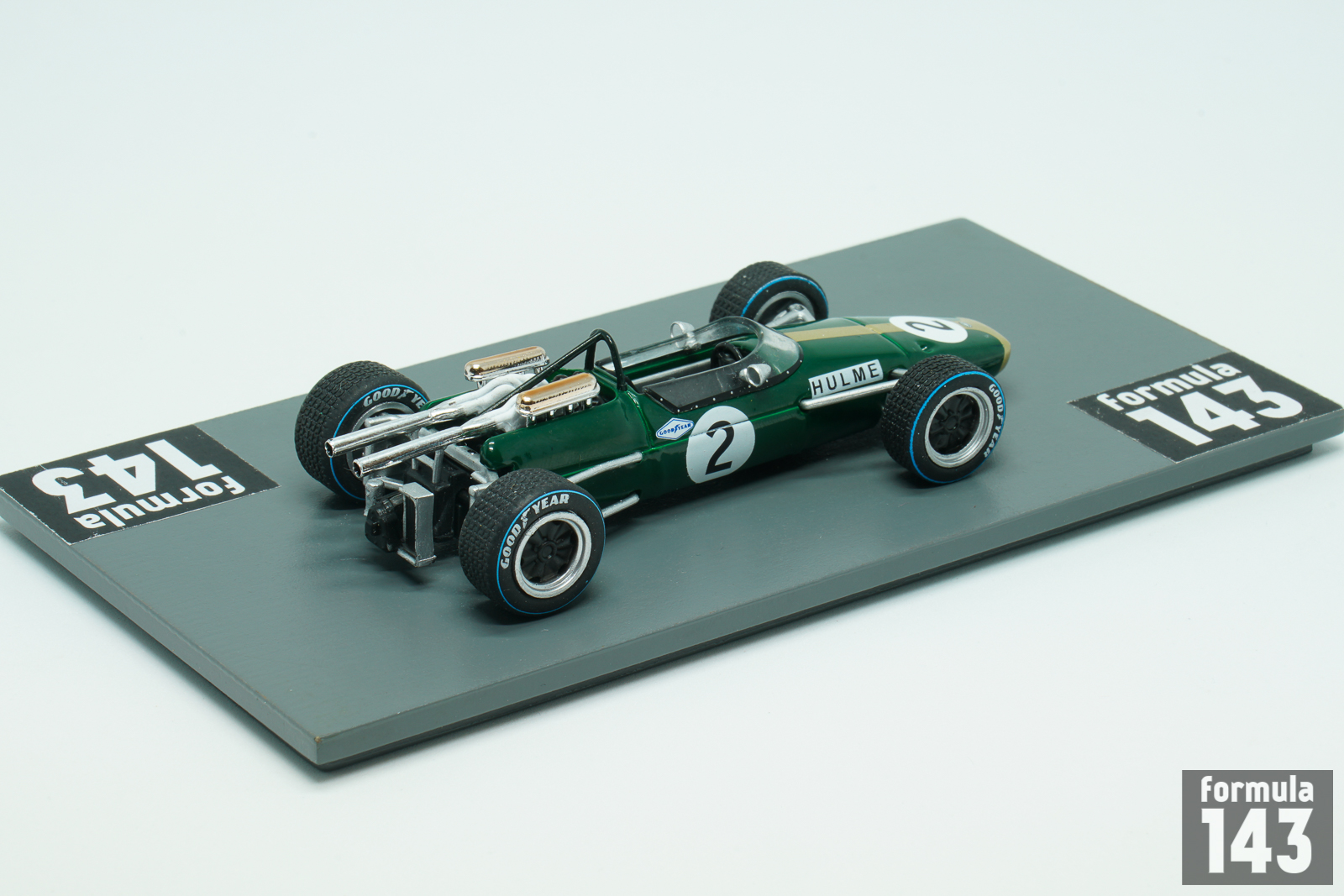 The Brabham car for the 1967 season was designed by Ron Tauranac based on previous season winning BT20 and Formula 2 light and compact BT23. The car had fibreglass body on tubular steel space frame chassis chassis – Tauranac still preferred space frame while other Formula One designers shifted to monococque chassis. The power was provided by entirely new Repco 740 engine. The car appeared at Dutch Grand Prix, while first three races of the Championship Jack Brabham and Denny Hulme have started on BT20. Danny Hulme from New Zeeland won in BT24 in Monaco and Germany and took the Championship due to his great consistency throughout the whole season. His teammate Jack Brabham, won in France and Canada and took the second position in the Drivers’ Champoinship, 5 points behind Denny Hulme. See also model of BT24 driven by Hulme from RBA Collection.