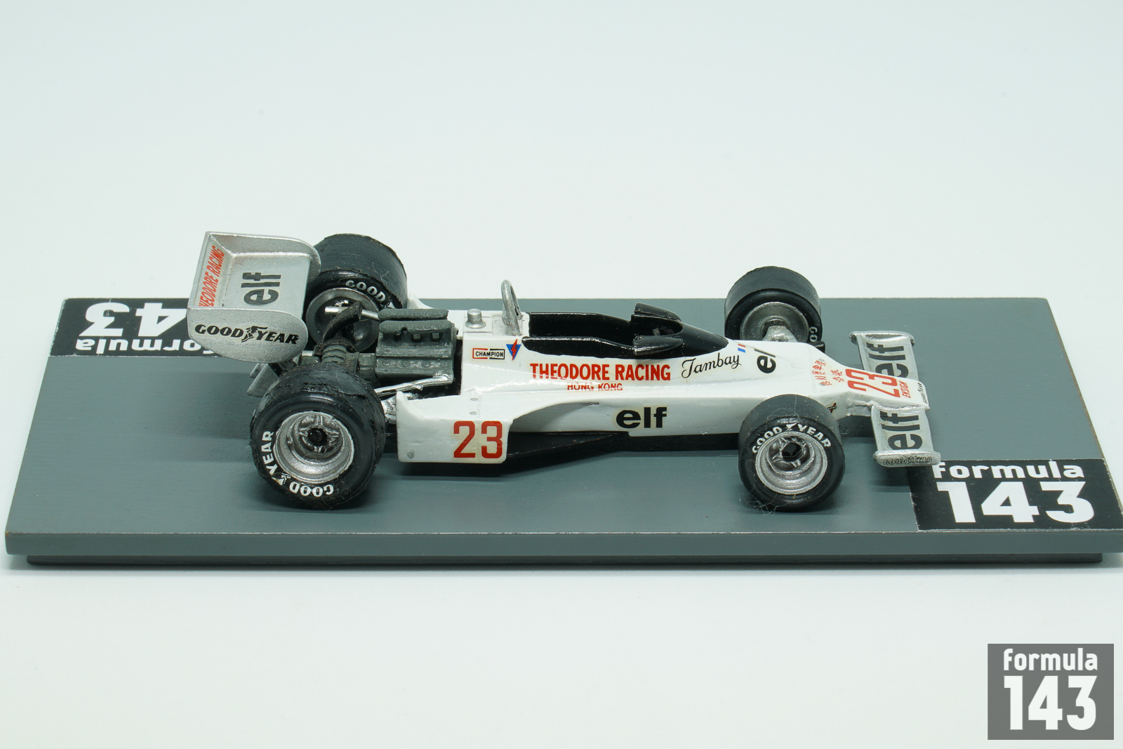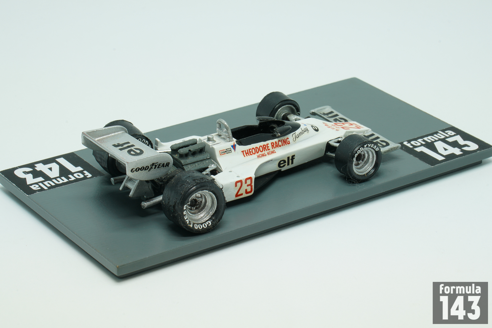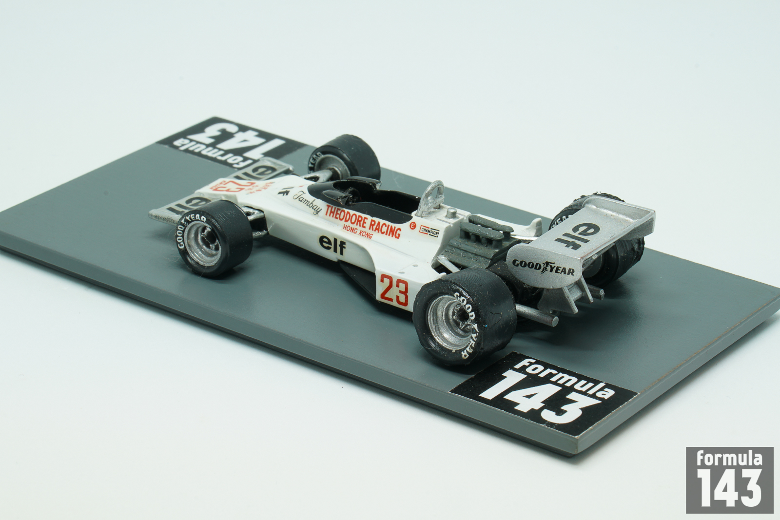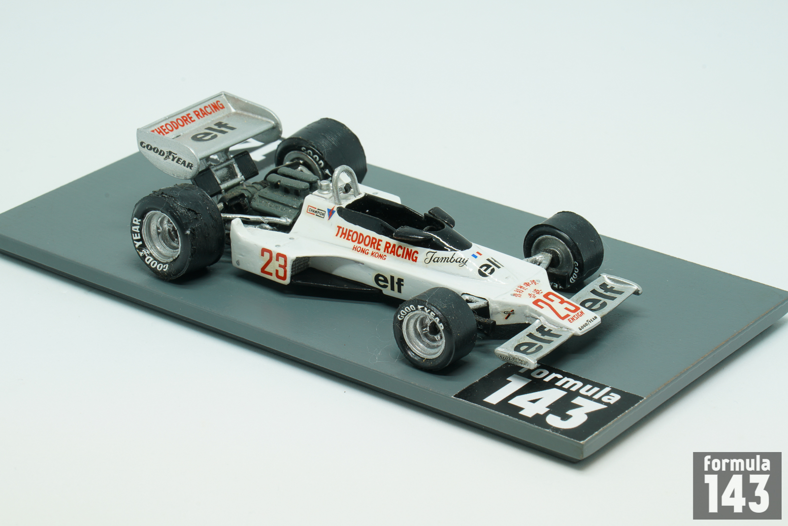Mo Nunn, Ensign owner, after difficult 1976 season managed to compile a budget big enough to build a new car. The car itself was a further evolution of the existing N176 with detail design changes only. The sponsorship money came from Teddy Yip, whose Theodore team ran a new N177 for Patrick Tambay in the second half of the year. Three cars were built in 1977, and one more in 1978. Two chassis were used by works team’s driver Clay Regazzoni, and one was at the disposal of Theodore Racing. Hong Kong real estate magnate Teddy Yip Yip, who backed Ensign since 1974, has founded his own Theodore Racing team in 1976 to enter Formula 1 in 1977. Yip signed French F2 driver Patrick Tambay, and appeared on F1 scene starting from the British Grand Prix. Tambay drove the Theoodor’s Ensign in 8 races and scored 5 points – exactly the same amount as factory driver Regazzoni in 17 races of the season.