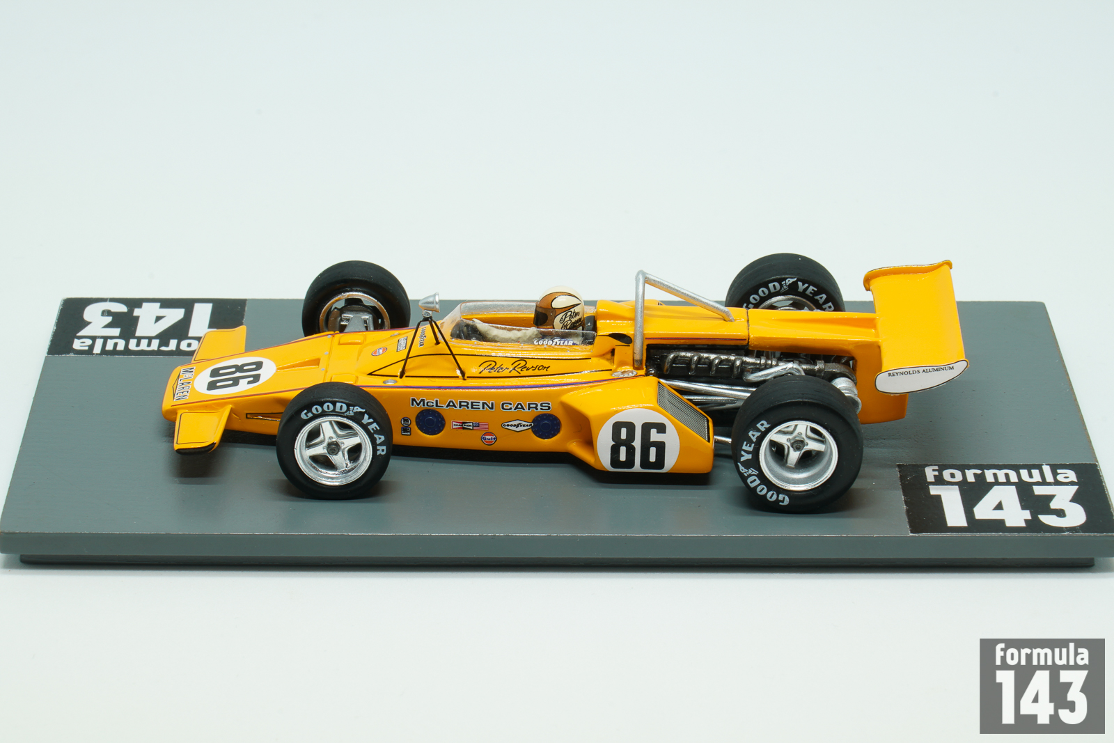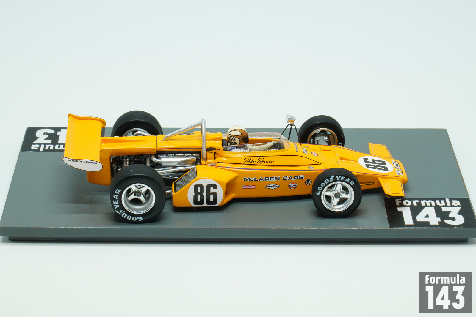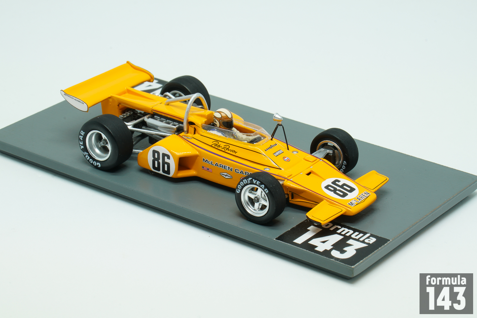 McLaren first ran a works team at Indianapolis in 1970 with the M15, which also appeared in the other big 500-mile events at Ontario and Pocono. For the 1971 season Gordon Coppuck designed the all-new M16 (or M16A as later versions caused it to be known) borrowed its wedge shape from the Lotus 72 which had proved so successful in Grand Prix racing in 1970. Coppuck felt that the sleek shape would ideal for Indycar racing, and he was to be proved right. The car was unveiled at the Colnbrook factory in January 1971, some four months before action got underway at Indianapolis. As was standard in those days, it used a 2.6-litre Offenhauser engine, mounted in a supporting frame. The engine was mated to a Hewland gearbox with three speeds instead of the two usually favoured at Indy, the idea being to provide better acceleration out of pit stops. Works drivers Denny Hulme and Peter Revson gave the car its first testing miles at Ontario Motor Speedway, before Roger Penske took over and ran with Mark Donohue at Phoenix and Indianapolis. Penske had abandoned plans to run a Lola and had instead become McLaren’s first Indycar customer entrant. In the qualification for Indianapolis 500 new M16 cars proved to be very fast. Revson ultimately took pole at a record speed, with Donohue earning second place and Hulme – never a fan of ovals – in fourth. With three cars at the front, a debut win for the M16A seemed assured. But the race proved somewhat disappointing, with Revson managing only a low-key second behind the Colt of Al Unser, Donohue stopping with gearbox problems, and Hulme spinning early on before having engine trouble. Nevertheless, McLaren had made its mark and M16-series cars had won three of the six 500-mile races held since their debut – in 1972, 1974 and 1976.