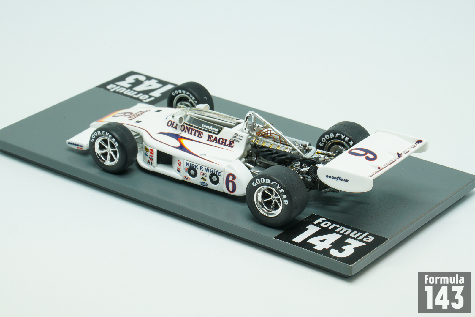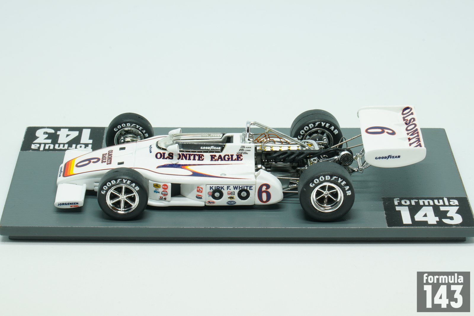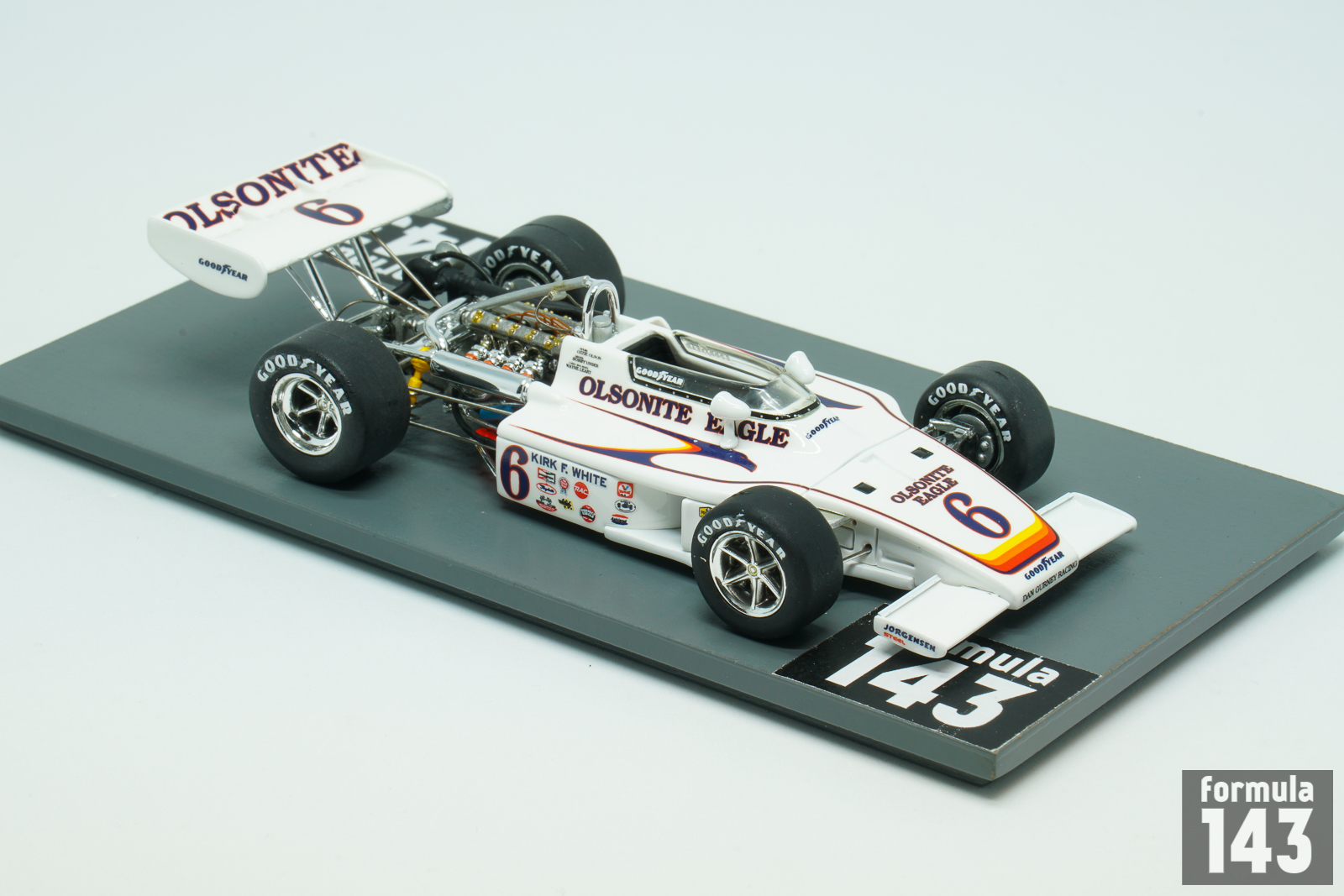 The classic 1972 Indianapolis Eagle was the fastest car of 1972, and the most popular customer Indy car of its era. Together with its inspiration, the McLaren M16, it completely redefined the design of Indycars. The All American Racers car was designed by Roman Slobodynskyj, who had been with AAR since 1969, having previously worked as a designer in the aerospace operations of the Rockwell Corporation. The starting point for the 1972 Eagle was McLaren M16, which had broken all speed records when it first appeared in early 1971. The width of the new Eagle was the maximum allowed under USAC regulations, as was its overall length, the distance from the rear wheels to the rear wing, and the height of the rear wing. Wide and flat, the car had its main cooling radiators situated just behind the front wheels, taking advantage of the airflow through the inboard front suspension, and ducted out at the sides. Bobby Unser in Olsonite-entered car won the opening race of the USAC Championship at Phoenix and took pole at Indy, but retired while leading at the Speedway. Despite taking seven pole positions in 1972,Olsonite-Eagle with Bobby Unser won only four races (twice at Phoenix and at Milwaukie and Trenton ovals), breaking down the rest of the time. The sponsor and the entrant of the Bobby’s car was Olsonite Division, known for their plastic seats and owned by Oscar Olson.