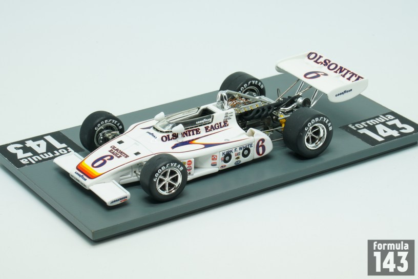 The classic 1972 Indianapolis Eagle was the fastest car of 1972, and the most popular customer Indy car of its era. Together with its inspiration, the McLaren M16, it completely redefined the design of Indycars. The All American Racers car was designed by Roman Slobodynskyj, who had been with AAR since 1969, having previously worked as a designer in the aerospace operations of the Rockwell Corporation. The starting point for the 1972 Eagle was McLaren M16, which had broken all speed records when it first appeared in early 1971. The width of the new Eagle was the maximum allowed under USAC regulations, as was its overall length, the distance from the rear wheels to the rear wing, and the height of the rear wing. Wide and flat, the car had its main cooling radiators situated just behind the front wheels, taking advantage of the airflow through the inboard front suspension, and ducted out at the sides. Bobby Unser in Olsonite-entered car won the opening race of the USAC Championship at Phoenix and took pole at Indy, but retired while leading at the Speedway. Despite taking seven pole positions in 1972,Olsonite-Eagle with Bobby Unser won only four races (twice at Phoenix and at Milwaukie and Trenton ovals), breaking down the rest of the time. The sponsor and the entrant of the Bobby’s car was Olsonite Division, known for their plastic seats and owned by Oscar Olson.