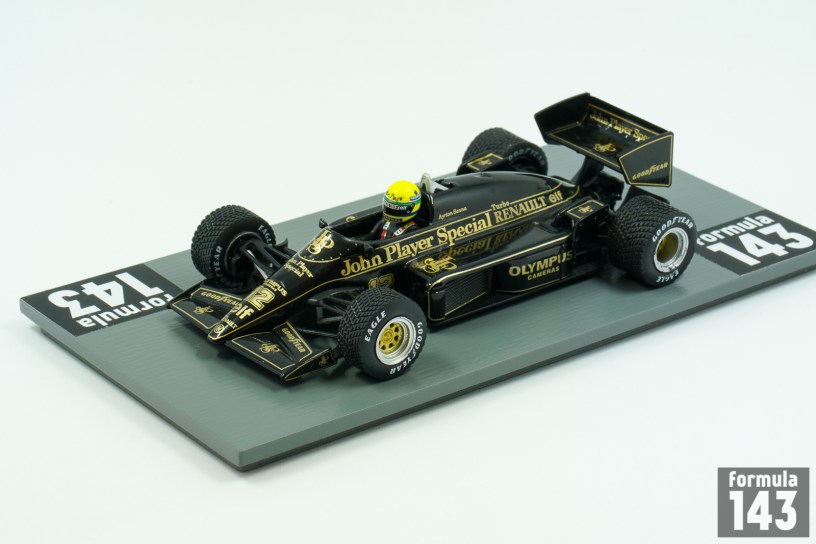 The Lotus 97T was designed by Gérard Ducarouge for the Team Lotus and was driven by Ayrton Senna and Elio de Angelis. A development of the previous year’s 95T, the car was powered by the turbocharged 1.5-litre Renault EF15B V6 engine. Ayrton Senna demonstrated his ability to race in the rain in the second race of the 1985 season, winning the Portuguese Grand Prix at Estoril. It was his first ever F1 win. Senna crossed the line having led every lap of the race, and with only one other car on the lead lap, that of second place Michele Alboreto well over a minute behind. Later the season Senna won his second race, Belgian Grand Prix at Spa, again in wet track conditions. In his first year at Lotus Senna finished fourth in the driver’s championship. His team mate, Elio de Angelis, managed to win one more race (at Imola) to help Lotus finish joint third with Williams in the constructor’s championship.