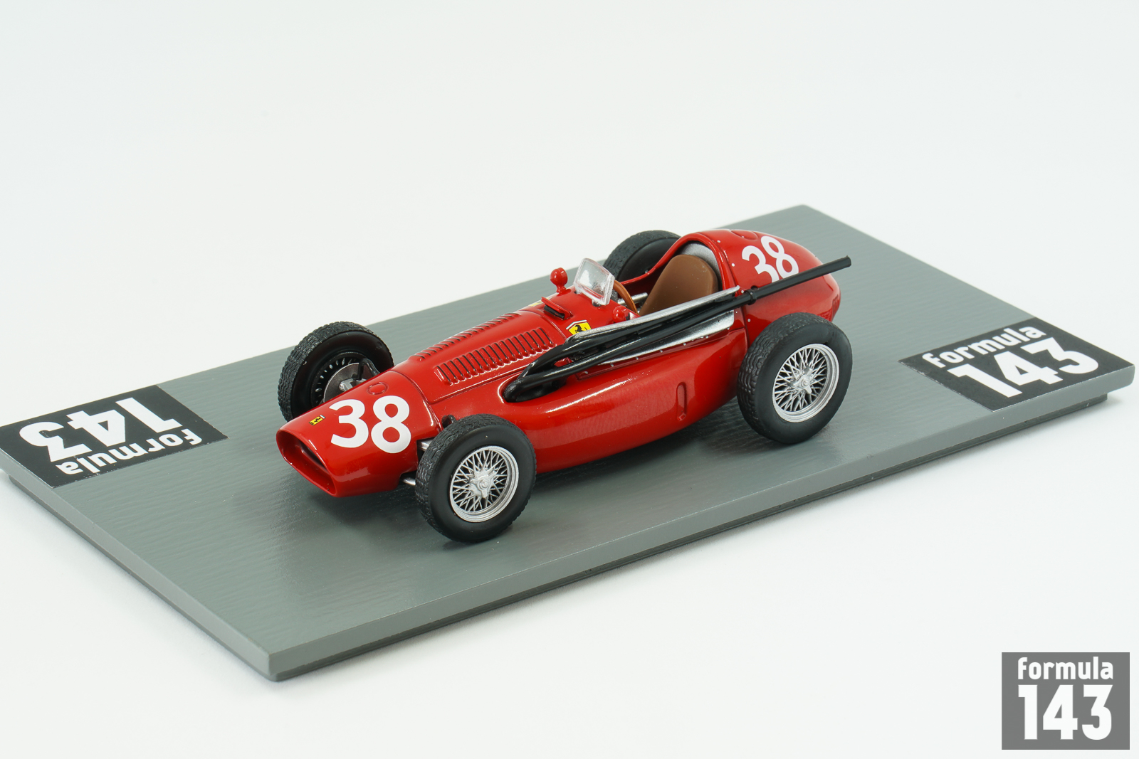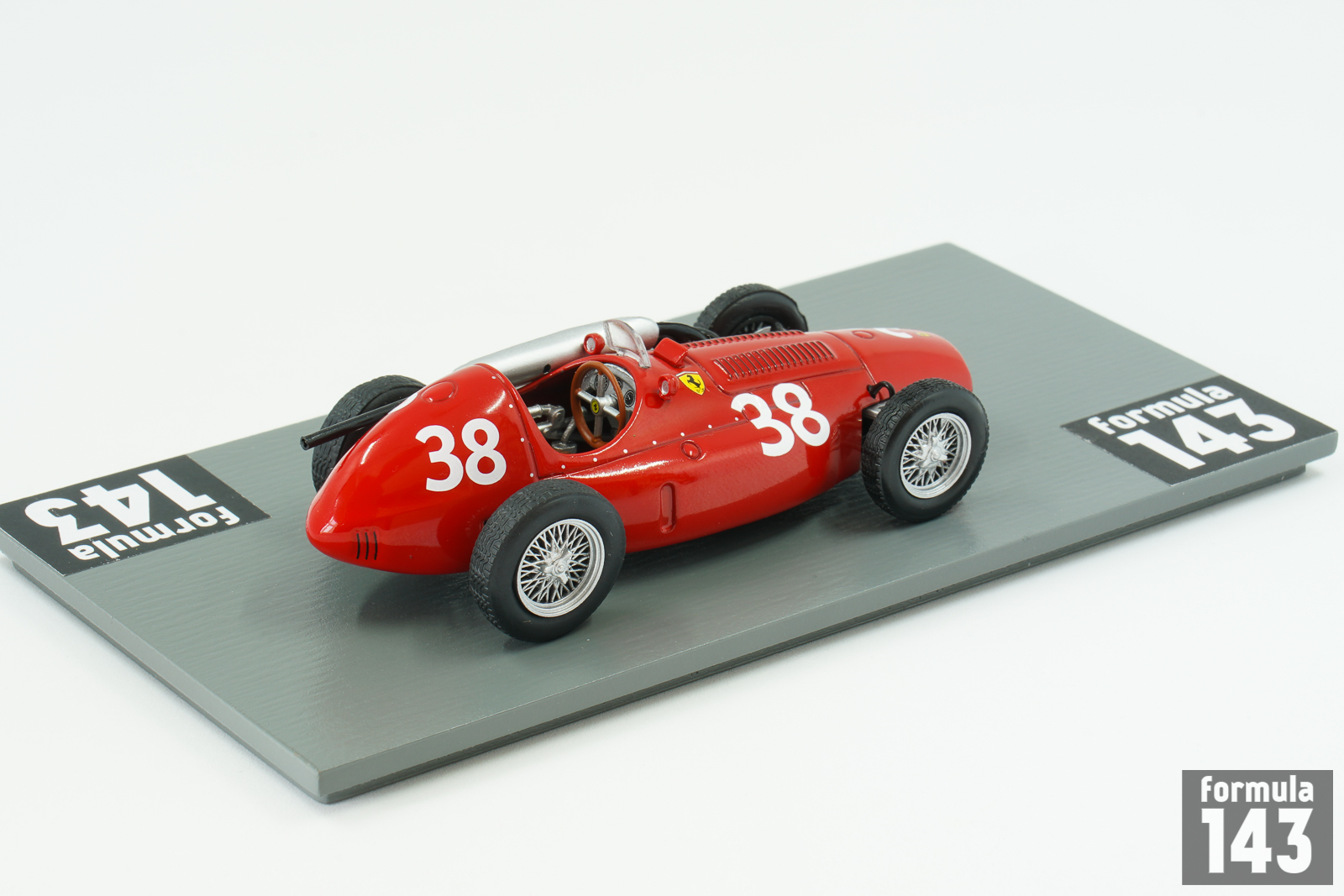 The new version of Ferrari F2 car, the 553, was the interim car designed by Aurelio Lampredi in 1953 with new 1954 Formula 1 regulations in mind. The engine was completely redesigned, with a shorter stroke and other modifications and, thanks to complete interchangeability, could also be used in the F1 version. New tubular frame chassis featured of the distinctive rounded bodywork and air-intake, because of which the car was nicknamed Squalo, meaning Shark in Italian. The new car was first raced at Monza in 1953 Italian Grand Prix. In 1954 the 553 was fitted with the new 2.5 liters engine, but car performed not better than the 625. The major problems were poor handling and tendency to engine overheating. So, 553 was used in the 1954 season only occasionally. Ferraris were able to win races only if their rivals from Mercedes-Benz would face some problems. The 553 achieved its only win in the final Grand Prix of the season, at Pedralbes street circuit in Barcelona, in hands of Mike Hawthorn.