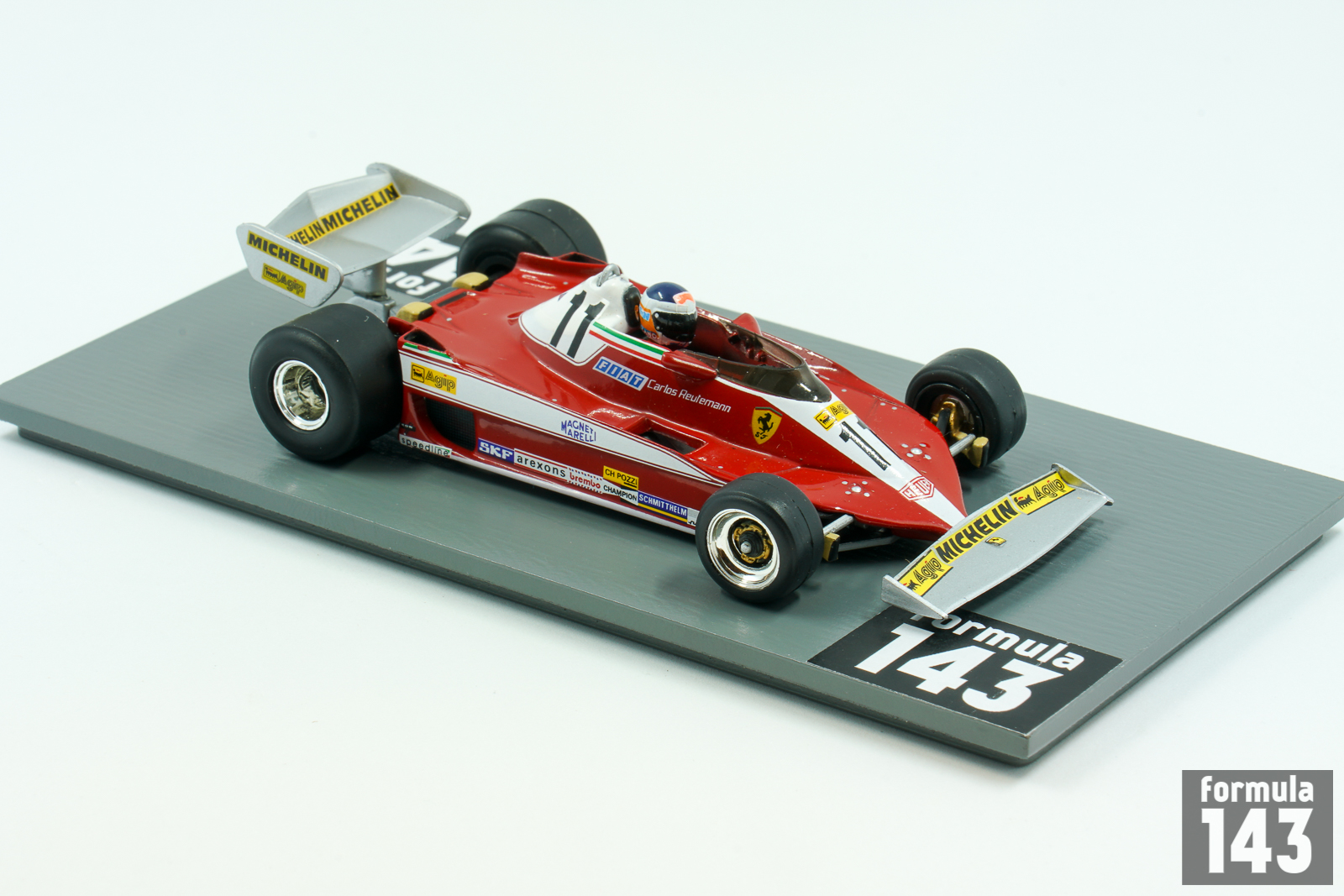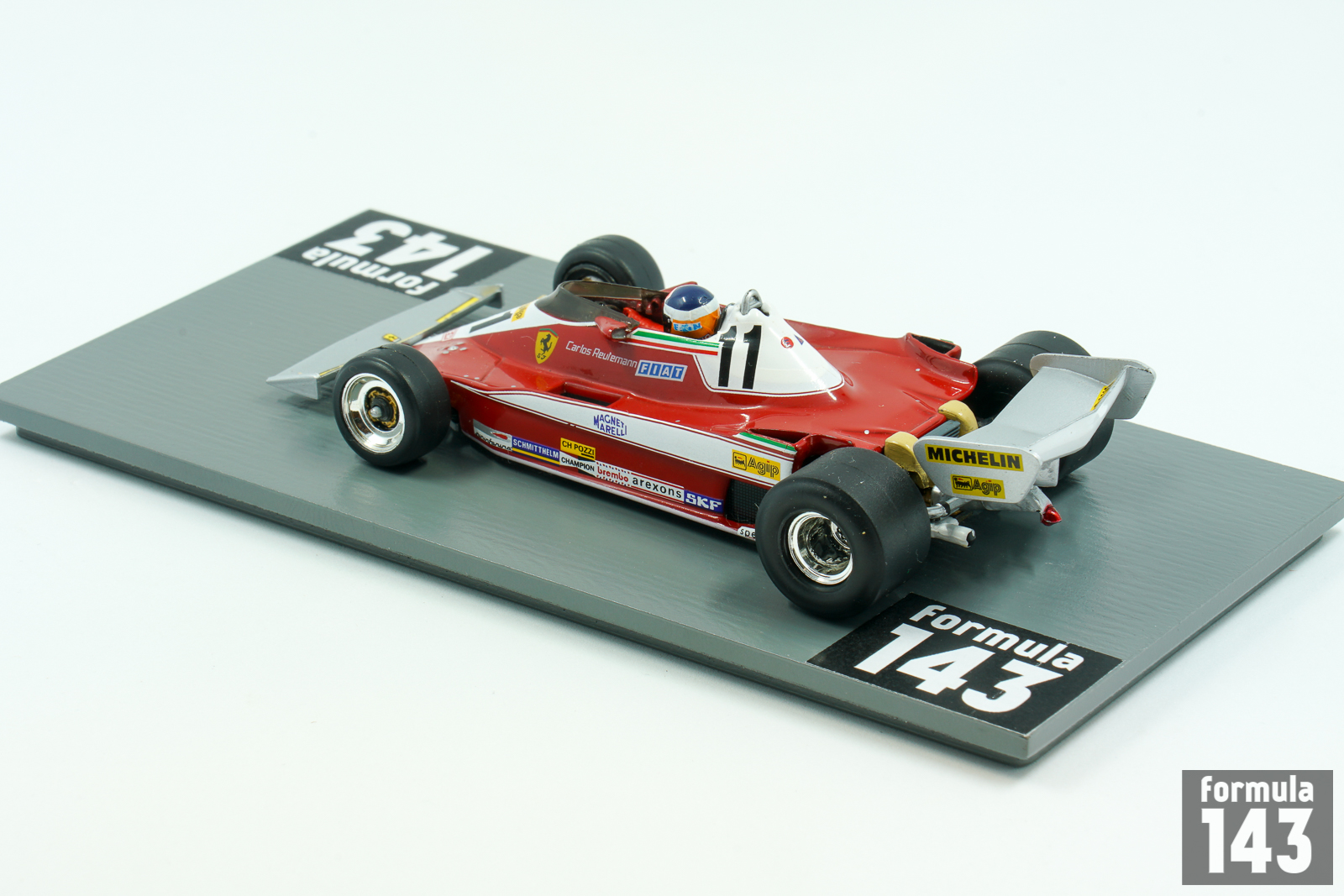The 312T3 continued the evolution of the T series with an engine with 12 horizontally opposed cylinders, that had been used since 1970, albeit tuned to give around 515 bhp. The chassis was completely new, with a new monocoque structure and a different suspension arrangement, designed to work with the Michelin tyres. The bodywork visibly was very different, with a flatter top to the body, allowing improved air flow to the rear wing. The 312T3 was introduced at the third race of the 1978 season. Argentinian Carlos Reutemann won four races (including one win in 312T2 in Brazil) and was ranked third in the final drivers’ standings. Gilles Villeneuve won for the first time at the final race, his home Grand Prix in Canada, but was only 9th in the championship.