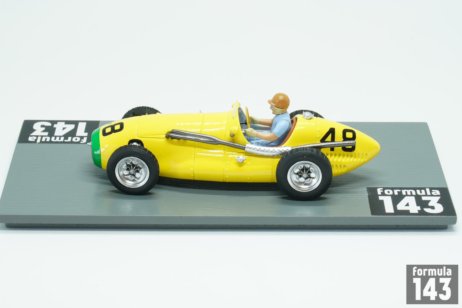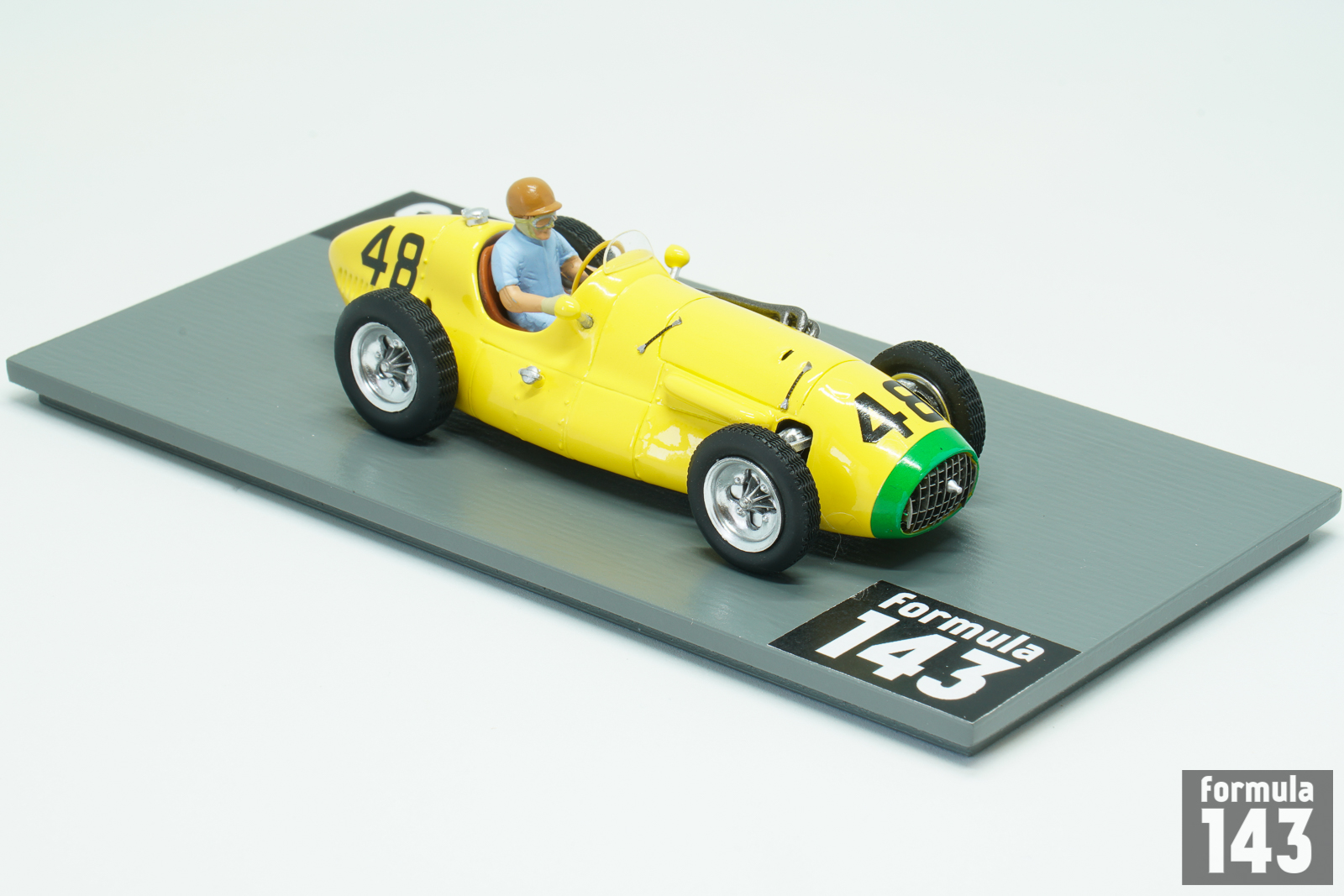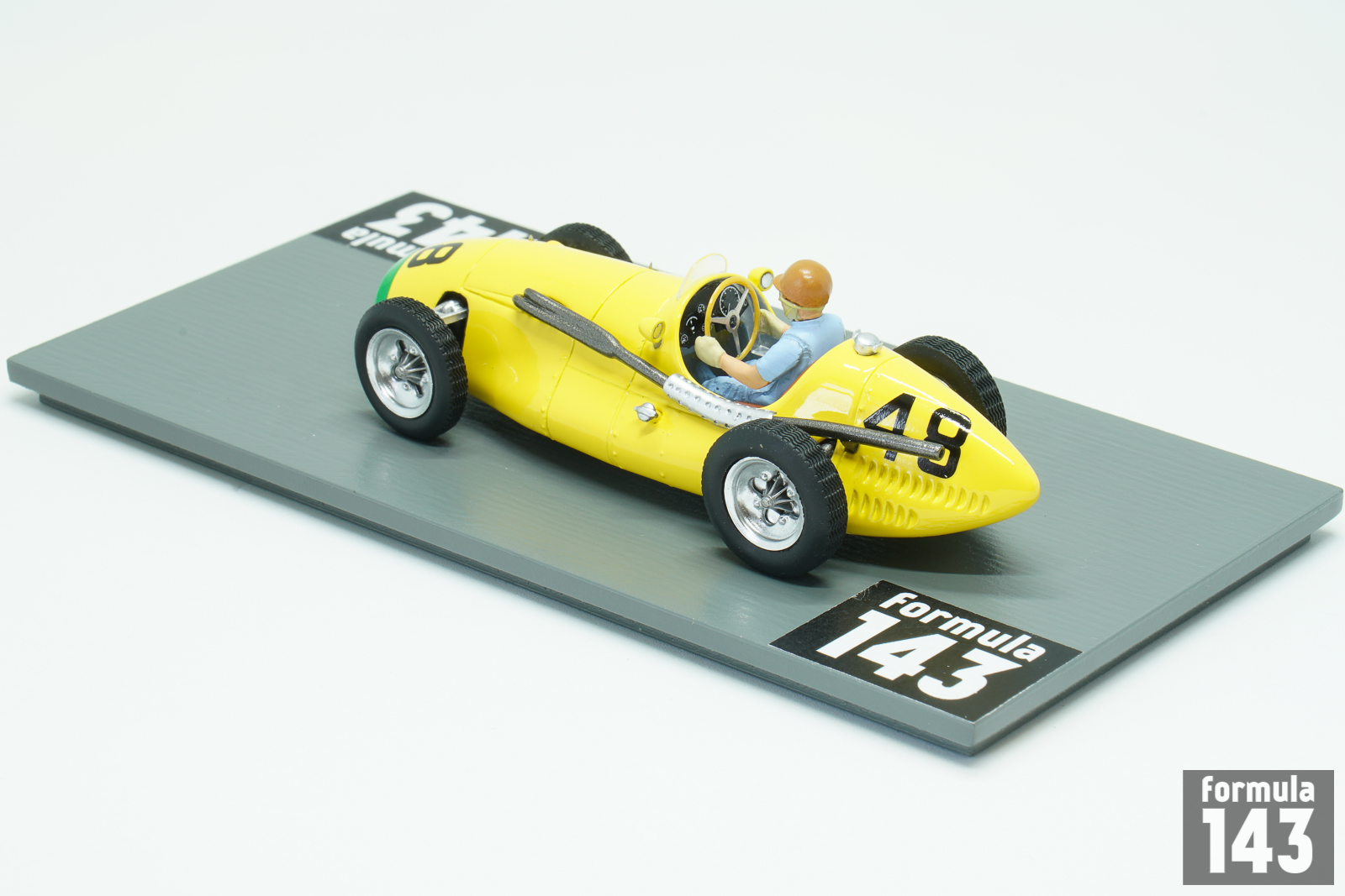The Connaught A was built by Rodney Clarke according Formula 2 regulations in 1952 and raced in 1952 – 54. It was the first Formula car for Connaught Engineering team. The car was powered by engine developed by Connaught from the Lea-Francis engine used in their “L” type sports cars. The driving force behind Connaught team was Kenneth McAlpine who backed and managed the team being one of it works driver at the same time. In 1953, which was the second season for Connaught, McAlpine hired Roy Salvadori as the second driver, and provided the third car for some races to Prince Bira, Stirling Moss and Jack Fairman. Three more cars were entered by Ecurie Belge, Ecurie Ecosse and Rob Walker Racing Team. The yellow Connaught A of Ecurie Belge was driven my Johnny Claes and Andre Pilette. Claes retired in three out of four races. His only finish was 12th place in 1953 French Grand Prix.
