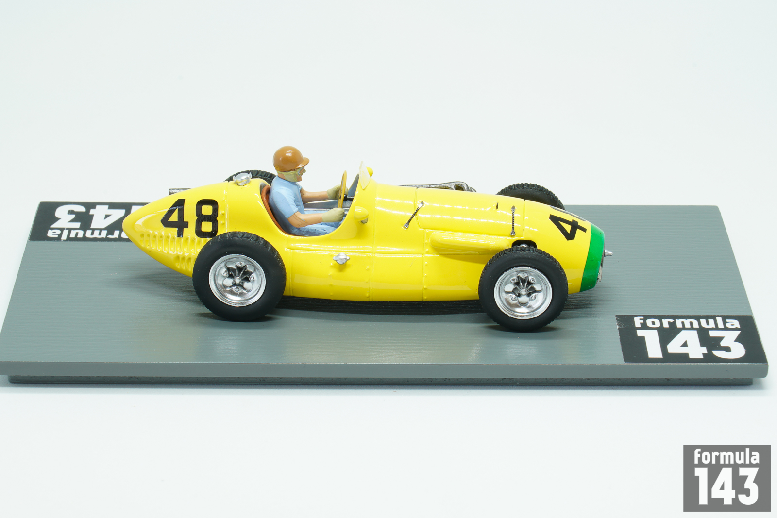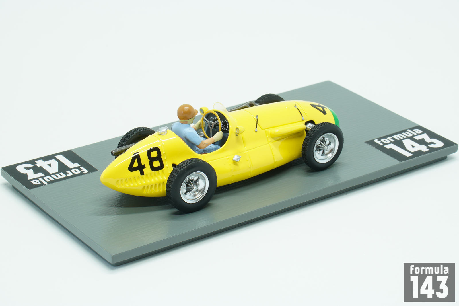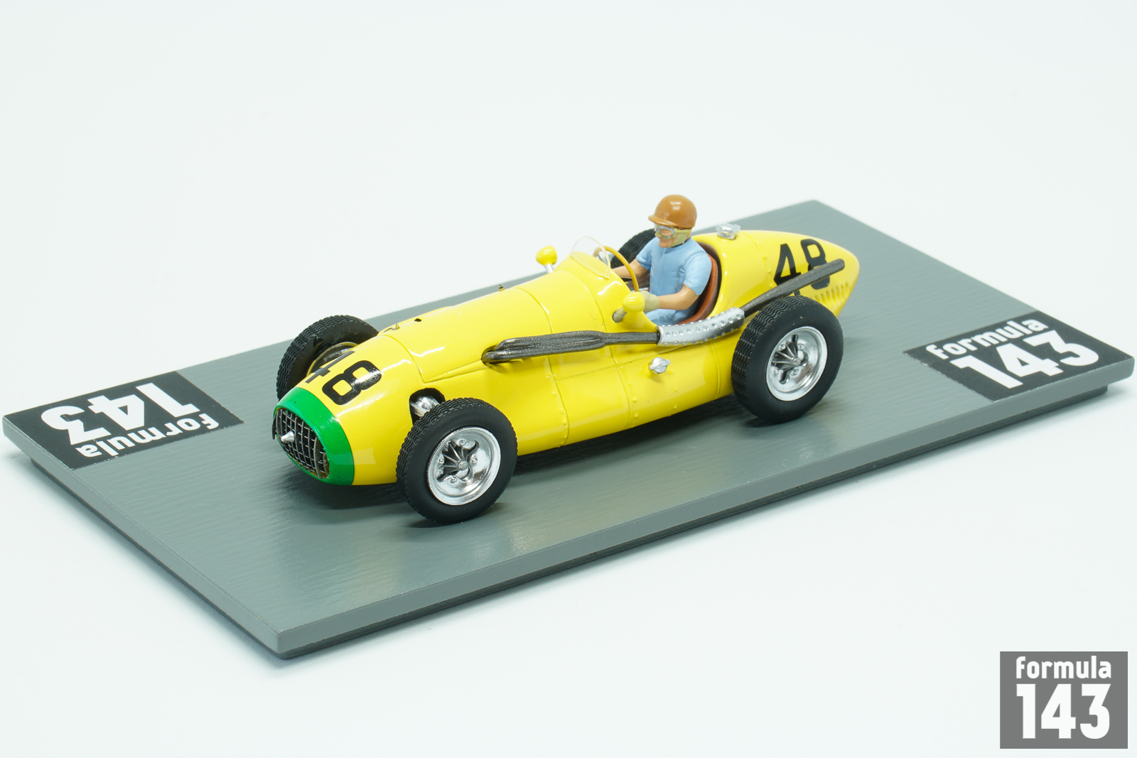 The Connaught A was built by Rodney Clarke according Formula 2 regulations in 1952 and raced in 1952 – 54. It was the first Formula car for Connaught Engineering team. The car was powered by engine developed by Connaught from the Lea-Francis engine used in their “L” type sports cars. The driving force behind Connaught team was Kenneth McAlpine who backed and managed the team being one of it works driver at the same time. In 1953, which was the second season for Connaught, McAlpine hired Roy Salvadori as the second driver, and provided the third car for some races to Prince Bira, Stirling Moss and Jack Fairman. Three more cars were entered by Ecurie Belge, Ecurie Ecosse and Rob Walker Racing Team. The yellow Connaught A of Ecurie Belge was driven my Johnny Claes and Andre Pilette. Claes retired in three out of four races. His only finish was 12th place in 1953 French Grand Prix.