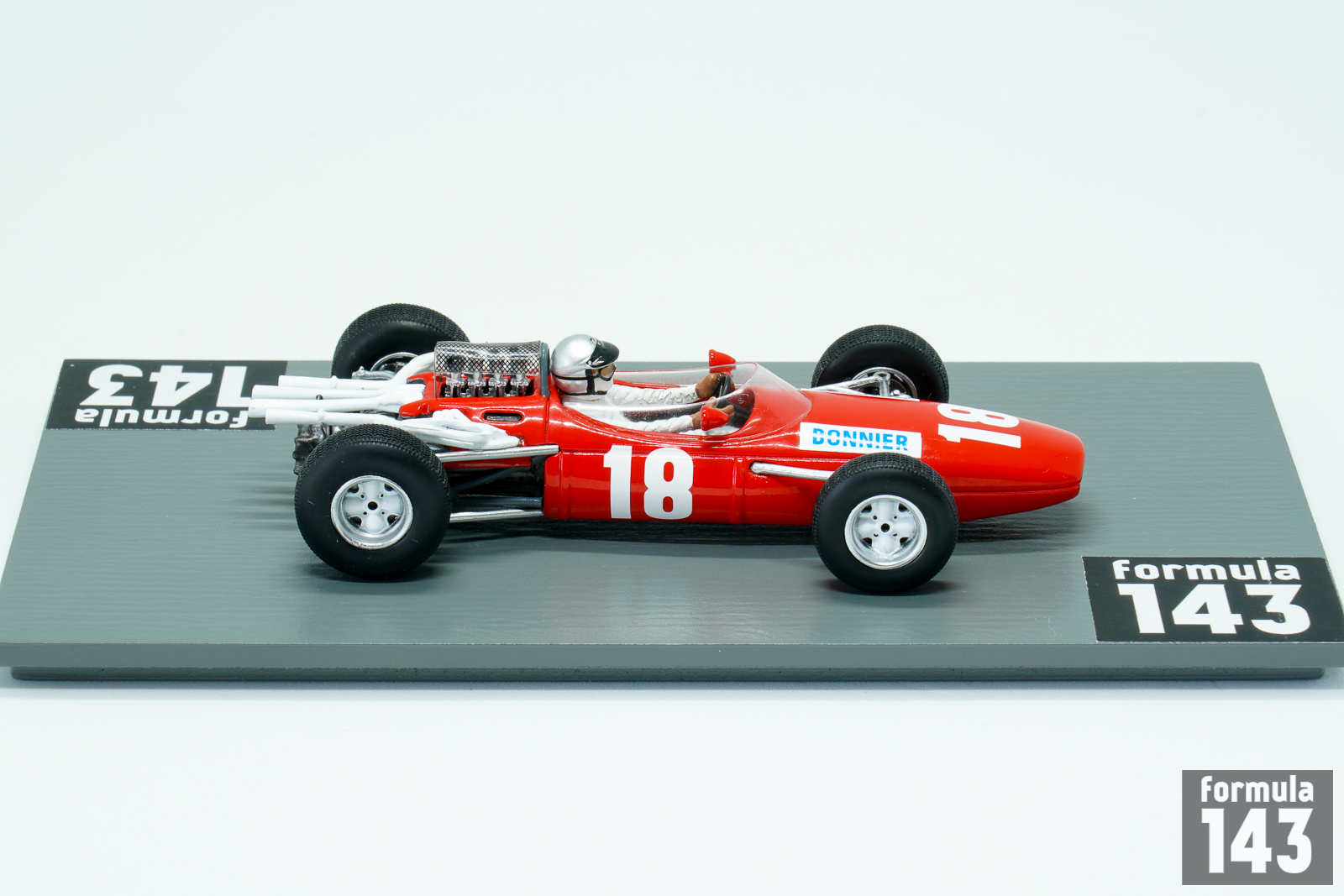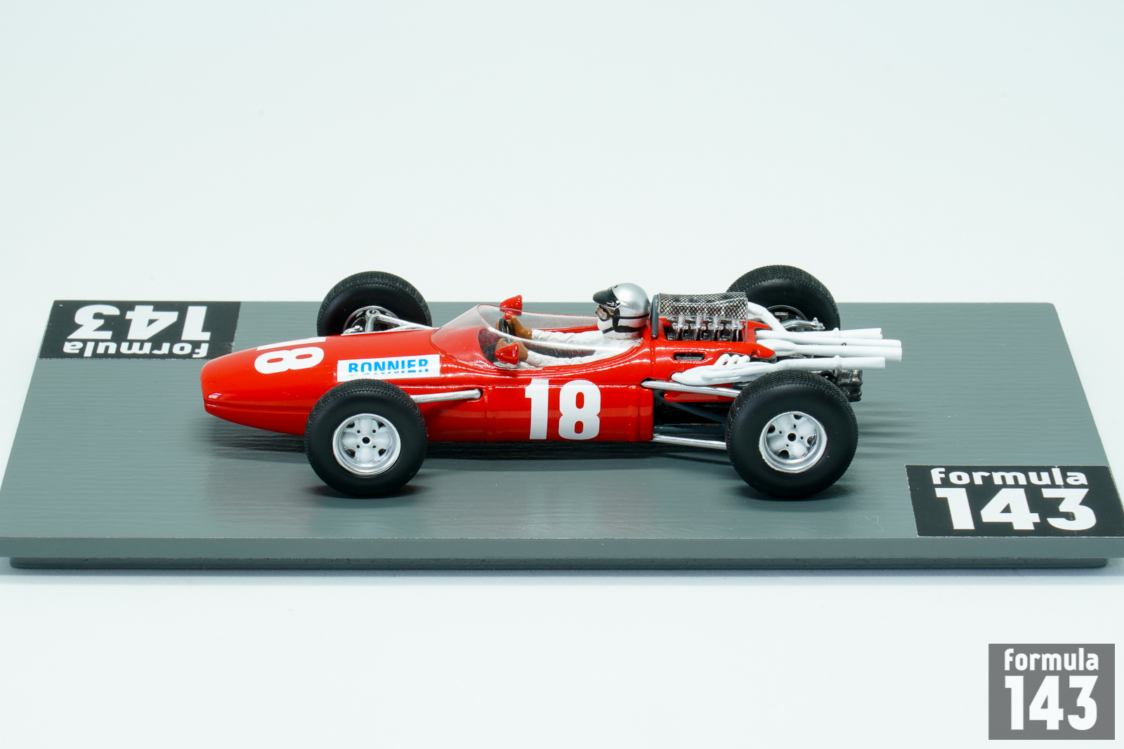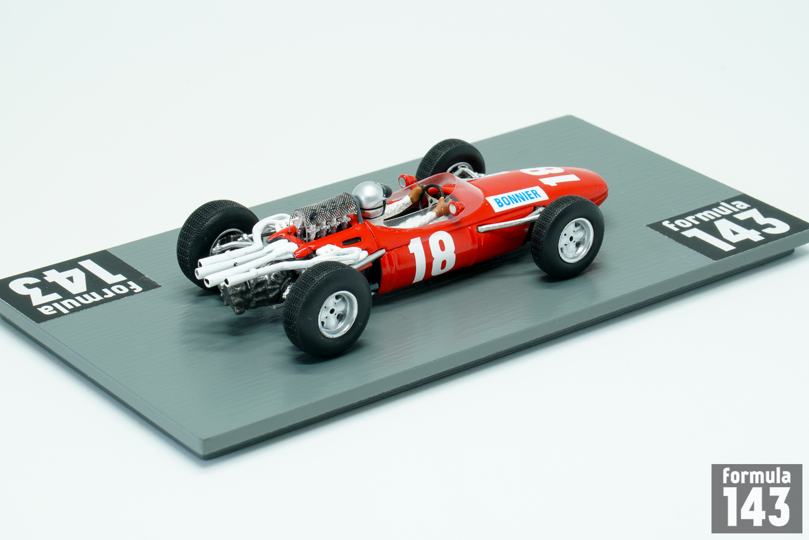 Jo Bonnier began entering cars in Formula One under his own name in 1957-1958, first with a Maserati 250F. The Swede spent the next seven years driving for the works BRM and Porsche teams, and Rob Walker’s highly organised private racing stable. Bonnier returned to entering his own team in 1966, under the name Anglo-Suisse Racing to reflect his residency in Switzerland at the time. His principal mount that year was a Cooper-Maserati T81, painted in Swiss racing red and white. He also drove Brabham BT22 in French Grand prix, and Brabham BT7 in British Grand Prix.
