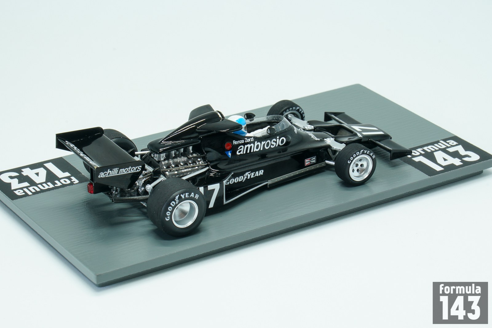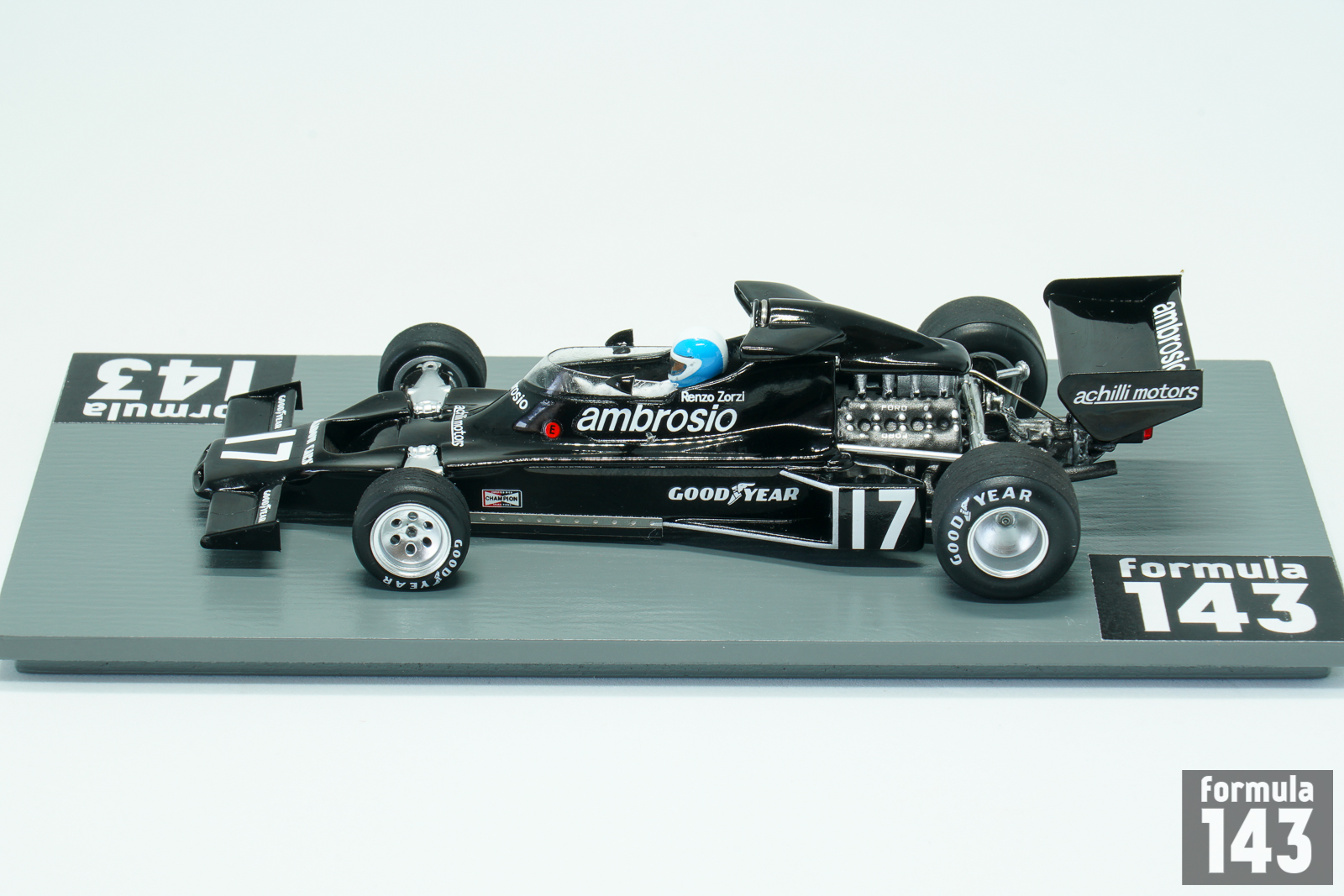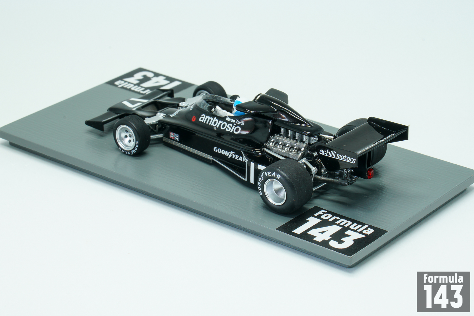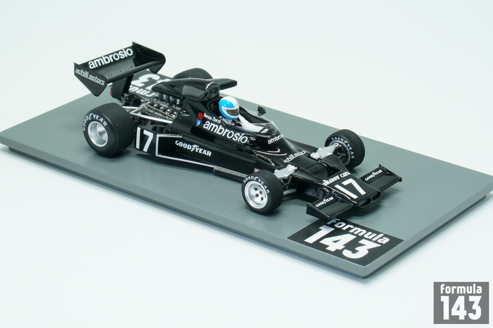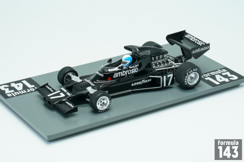 Shadow DN5 was designed by Tony Southgate and built by Shadow Racing Cars for 1975 Formula One season. The DN5 was the further evolution of DN3 from 1974. The car was built around an aluminium monocoque, which used the Cosworth DFV V8 as a fully stressed member. DN5 inherited a low and long nose with twin nostrils that fed the oil cooler. The water radiators were mounted on either side of the monocoque. The DN5 was updated into a ‘B’ specification for the 1976 Formula One season, and was used also in first two races of the 1977 season. Italian Renzo Zorzi, ex-Formula 3 driver who had couple of F1 appearances with Frank Williams team in 1975-76 returned to Formula One in 1977 with the Shadow team as team-mate to Welsh driver Tom Pryce. Zorzi was backed by their Italian sponsor Franco Ambrosio who demanded an Italian driver as part of the agreement for his financial support. Driving DN5B Zorzi took 6th place in the second round of the championship, in Brazil, earning his only point in F1. The team switched to new DN8 from the next race in South Africa. In this race Zorzi was involved in tragic accident with his teammate Tom Pryce. Zorzi pulled off the track with a fuel leak caused by a broken metering unit, and the car caught fire. Zorzi quickly got out of the car and activated his on-board fire extinguisher which doused the flames. Several seconds later, although the fire was out, two marshals ran across the track with hand-held fire extinguishers. One of them was struck and killed by the car of Pryce. His extinguisher struck Pryce on his helmet, causing fatal head and neck injuries. Zorzi career in Formula 1 ended after a few races. When Zorzi arrived in Monaco for the 1977 Monaco Grand Prix, he found that his car had Riccardo Patrese’s name on it, and that he had been replaced by Patrese, another Ambrosio protege, without being informed.