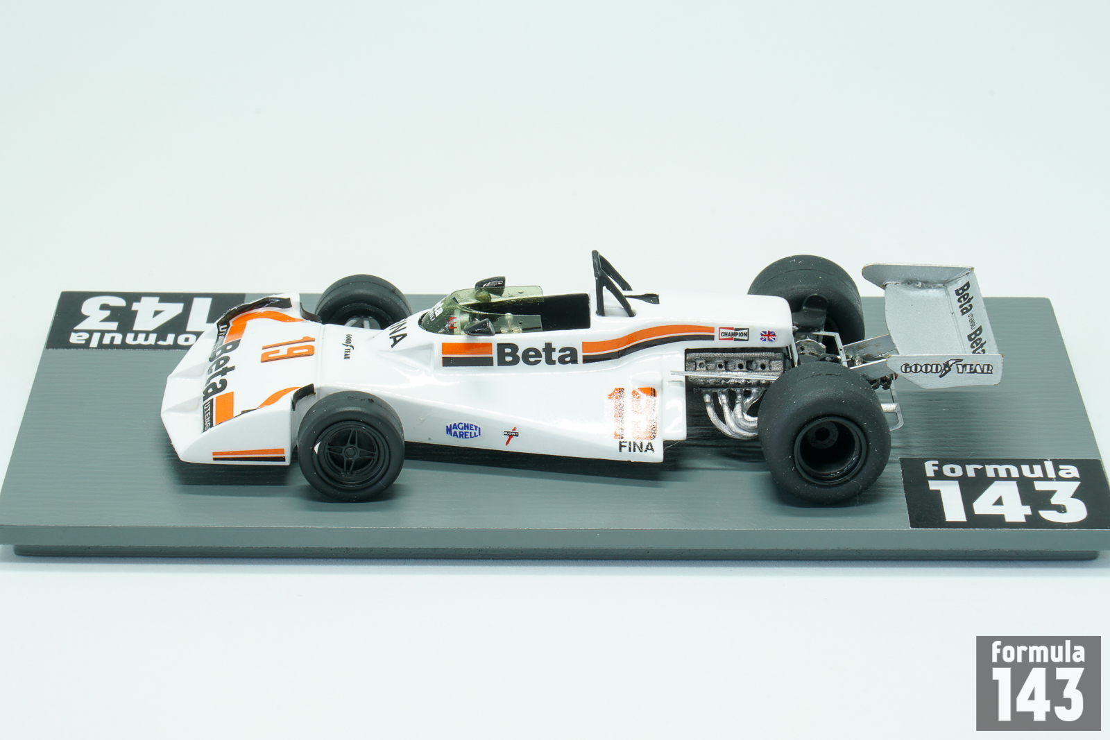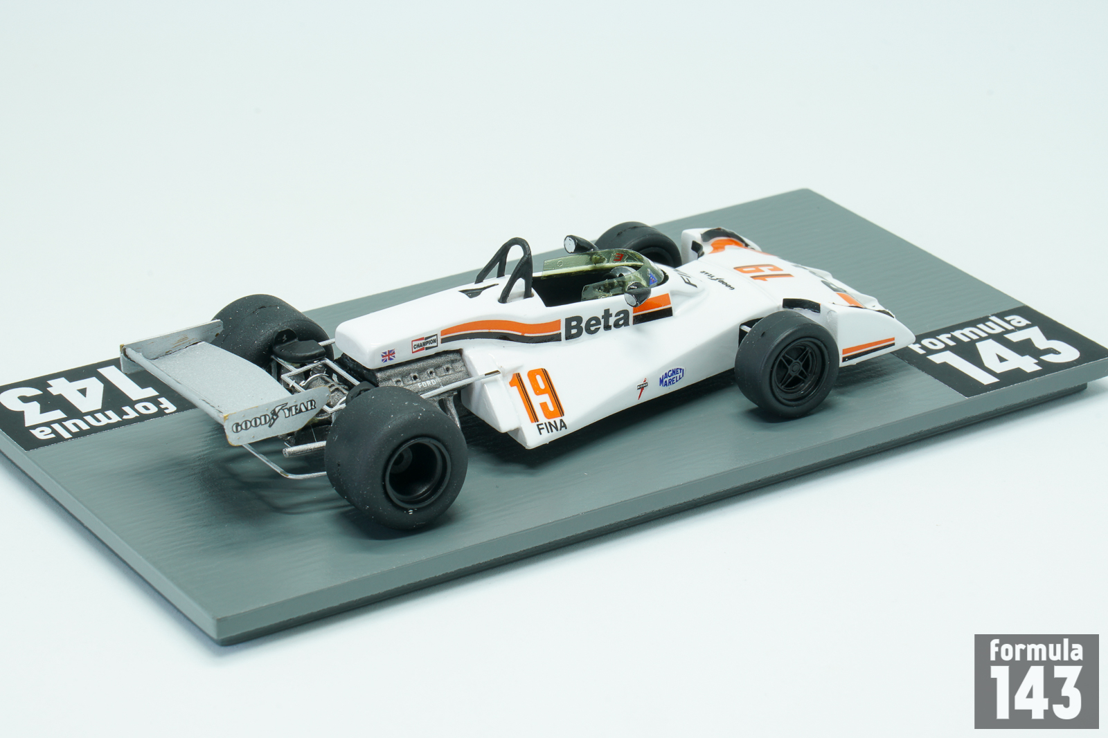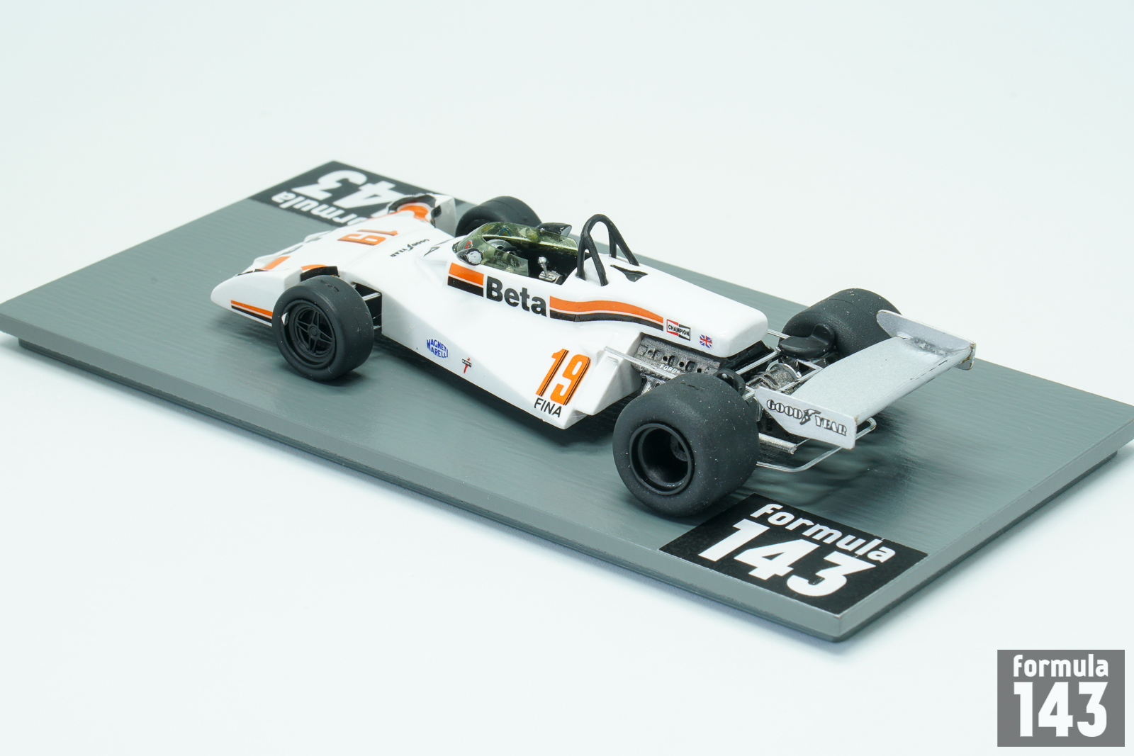 The Surtees TS19 was designed by John Surtees and Ken Sears and was used by Surtees during the 1976, 1977 and 1978 F1 seasons. The car was typical F1 vehicle of the time powered by a Ford Cosworth V8 engine mated to a Hewland FGA400 gearbox. It had an aluminum monocoque and rode on Goodyear tires. А characteristic recognizable feature of the car that distinguished it from its rivals was the big integrated front wing with air intakes. For 1977, Surtees had a new driver lineup. Austrian Hans Binder drove the Durex-sponsored car, and Italian Vittorio Brambilla drove with sponsorship from Beta. Brambilla managed to score six points, with 4th place in Belgium as the highest finish of the year.
