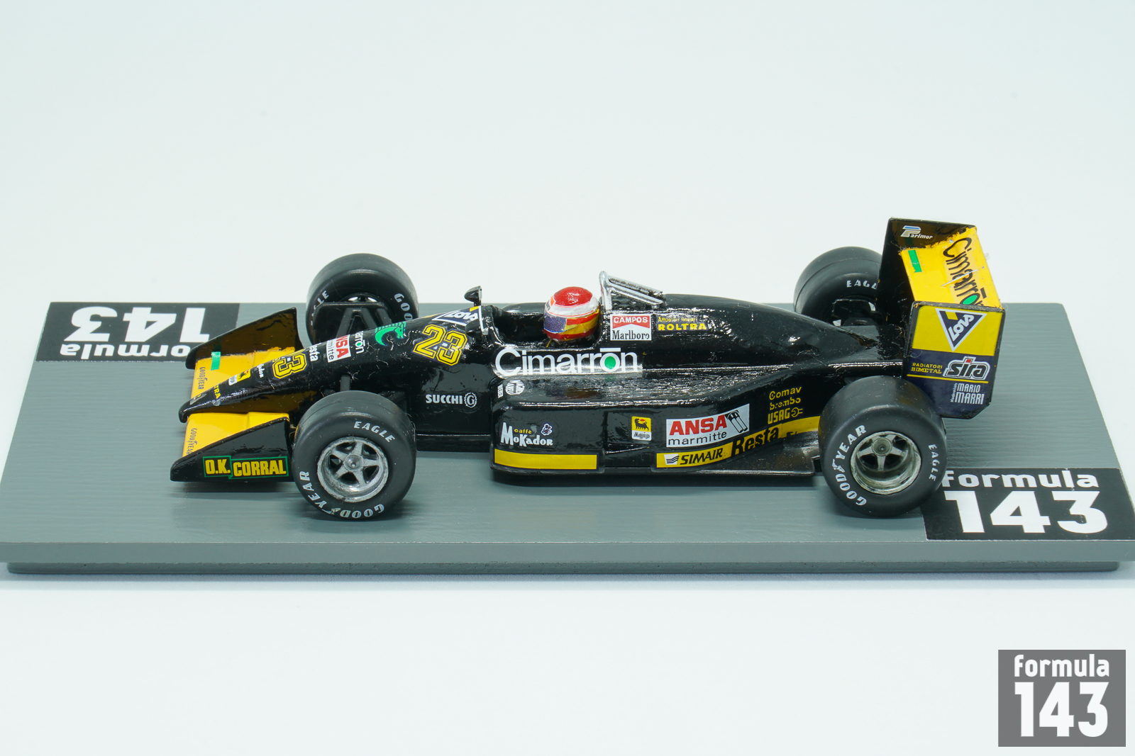 The Minardi M188 designed by Giacomo Caliri and Aldo Costa. In 1988, ahead of the ban in turbo engines for the 1989 season, Minardi changed their engine from the Motori Moderni V6 turbo to the naturally cooled 3500 cc Ford Cosworth DFZ V8. The car had a very short wheel base of 2670 mm, even if aided by a torsion bar suspension (a solution that would be taken up in F1 only 10 years later) the M188 did not perform and was badly suited to the regular road surfaces. The drivers’ duo of the team consisted of Spanish pilots Adrian Campos, who drove for Minardi for the second year, and rookie Luis Perez-Sala. Campos was dismissed after the fifth round of the season due to poor performance and he was replaced by Pierluigi Martini, who previously raced for the team in 1985 and then moved down to International Formula 3000 in 1986. However, the car recorded eleven retirements, seven failures to qualify and one failure to classify. With just one point scored by Martini’s 6th place at Detroit, the year was far from a success.