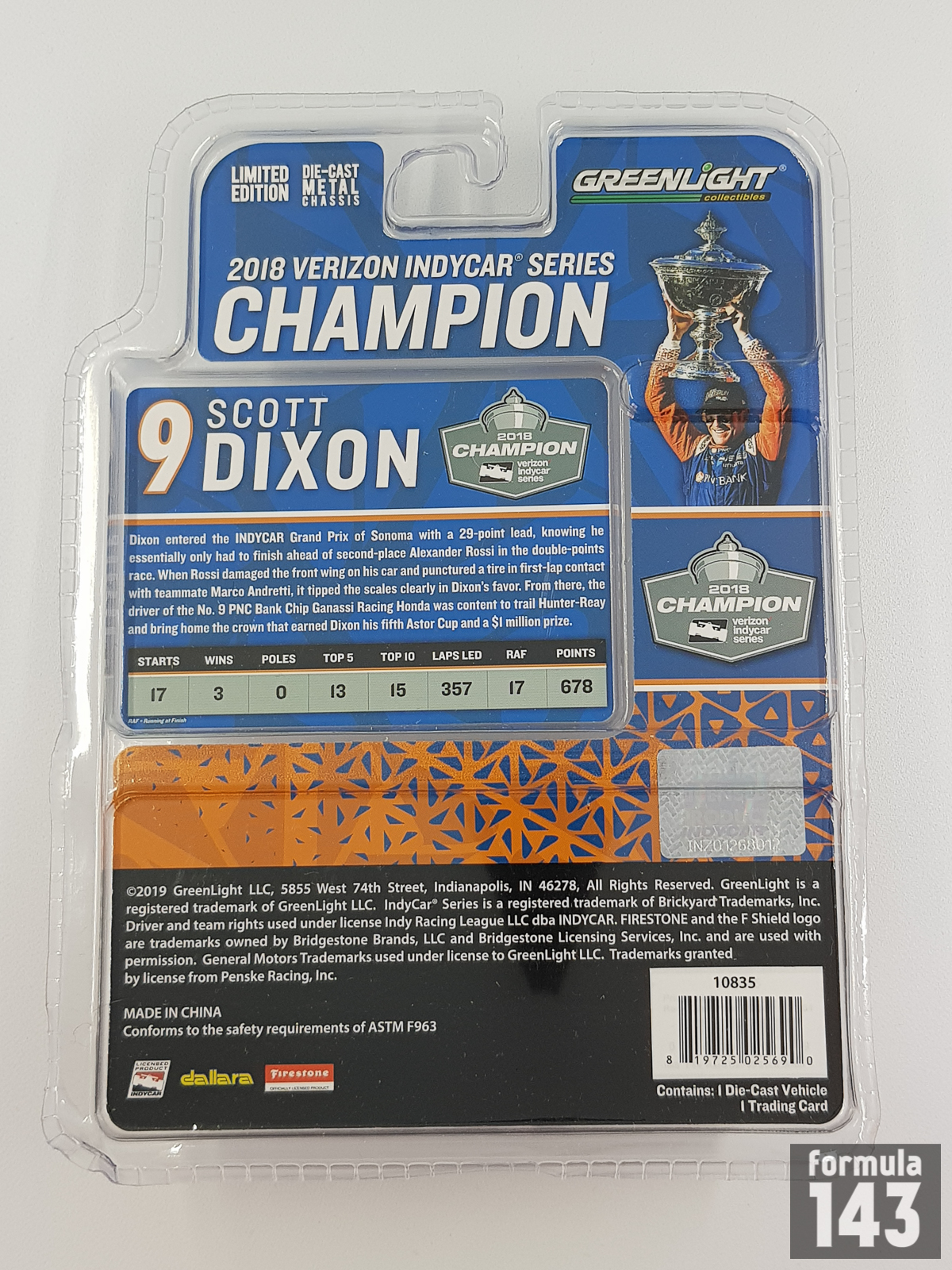 | 1:64 | Greenlight | 2018 Verizon IndyCar Series Champion Issue |