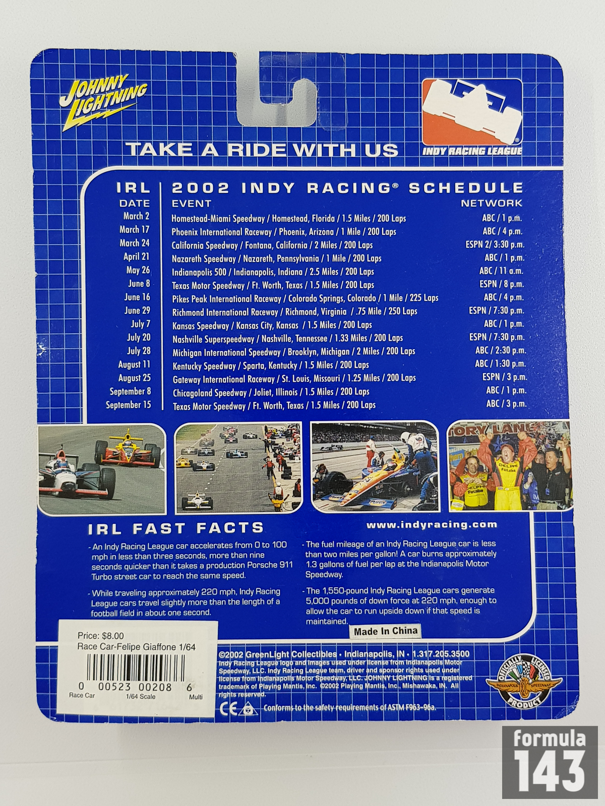 Morris Nunn, famous English engineer, founder and owner of the Ensign Formula One Team in 1970s-80s, later worked for Chip Ganassi’s Champ Car team, before founding Mo Nunn Racing for the 2000 season. In the 2002 season Nunn ran one-car team in both US premier open-wheel racing series. Brazilian Tony Kanaan drove Reynard and Lola in the CART FedEx Championship Series, while his compatriot Felipe Giaffone raced in Indy Racing League behind the wheel of G-Force GF05C. The car represents the second-generation of IRL cars by G-Force, competed in the series from 2000–2002. For Giaffone the 2002 season was his second year in the series. The Brazilian performed very well, winning the race at Kentucky Speedway and achieving 4 more podiums. Giaffone finished the season 4th in points.
