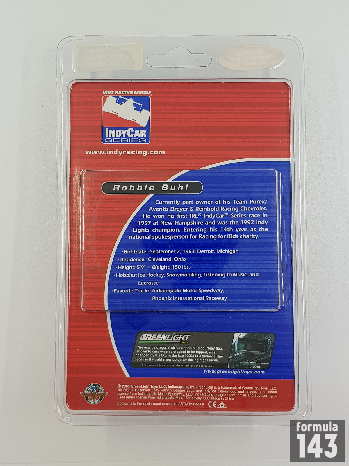 Robbie Buhl drove for the Dreyer & Reinbold Racing team, founded by car dealer Dennis Reinbold in 2000, since the beginning of the team,winning team’s very first race – first round of the 2000 season at Walt Disney Speedway. In 2003 team switched from G-Force to Dallara chassis and to Chevrolet engine instead of Infinity. Buhl was joined by female driver Sarah Fisher in 2002, and Reinbold retained this line-up for the 2003 season. The highest race result for Buhl in 2002 was 7th placed at Kentucky Speedway, and Fisher’s best was 10th at Homestead-Miami Speedway. Buhl and Fisher finished the championship in the distant 14th and 18th places, respectively.