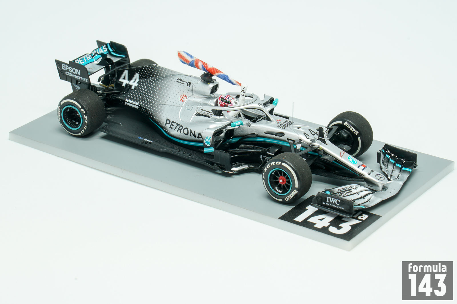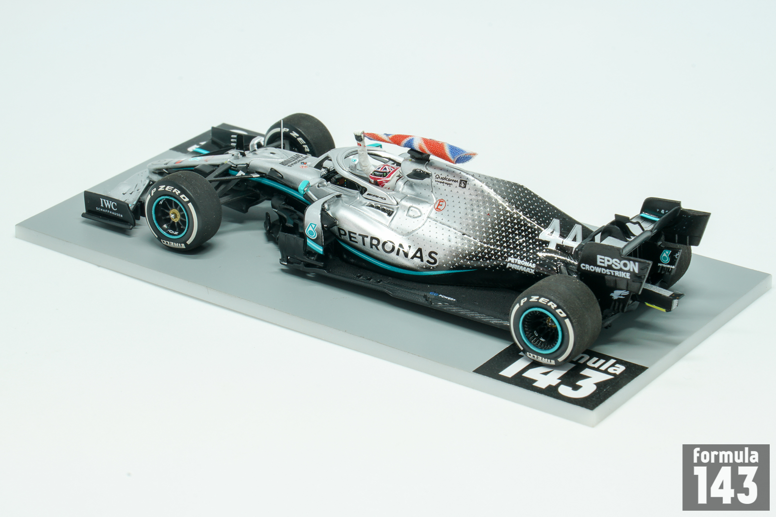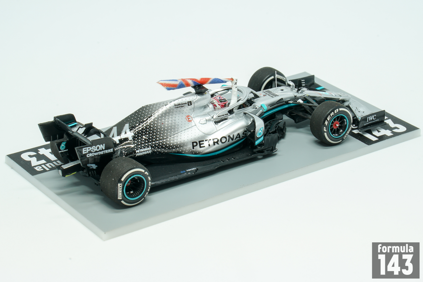 The F1 W10 EQ Power+ was the tenth Formula One car that Mercedes had constructed since 2010. The dominator of the season, it took 15 wins (eleven for Hamilton and four for Bottas), ten pole positions (five for Hamilton and five for Bottas), nine fastest laps (six for Hamilton and three for Bottas), seven front-row lockouts and nine 1–2 finishes. Driving the W10 Lewis Hamilton achieved his sixth Drivers’ Championship title, while Mercedes equaled a record of sixth consecutive Constructors’ Championship, a feat only previously achieved by Scuderia Ferrari between 1999 and 2004. The model of Minichamps represents Hamilton’s parade lap with the Union Jack after winning the 2019 British Grand Prix.