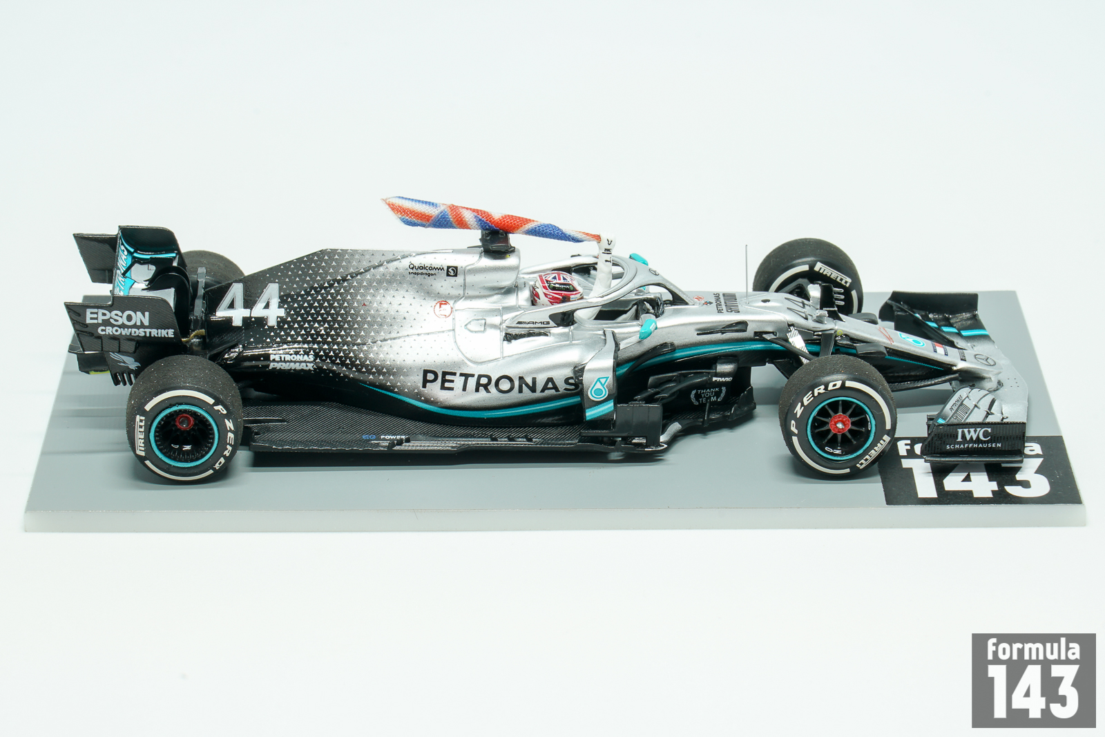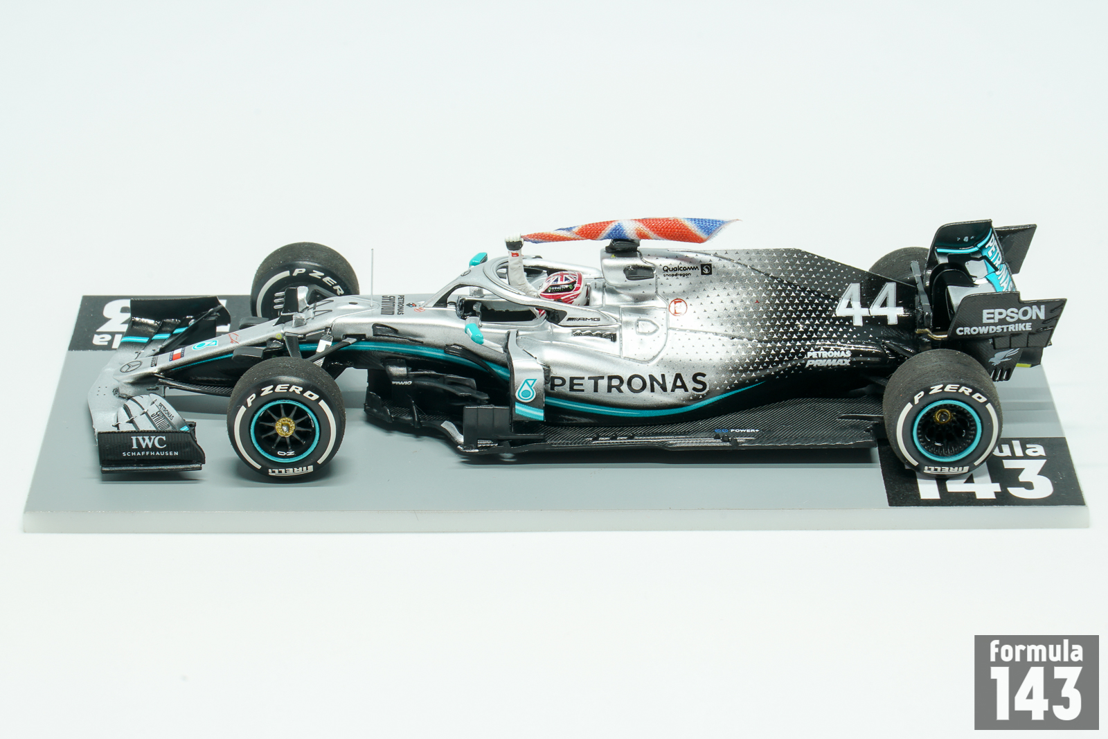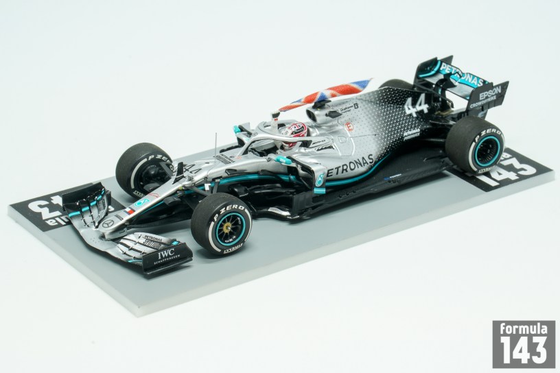 The F1 W10 EQ Power+ was the tenth Formula One car that Mercedes had constructed since 2010. The dominator of the season, it took 15 wins (eleven for Hamilton and four for Bottas), ten pole positions (five for Hamilton and five for Bottas), nine fastest laps (six for Hamilton and three for Bottas), seven front-row lockouts and nine 1–2 finishes. Driving the W10 Lewis Hamilton achieved his sixth Drivers’ Championship title, while Mercedes equaled a record of sixth consecutive Constructors’ Championship, a feat only previously achieved by Scuderia Ferrari between 1999 and 2004. The model of Minichamps represents Hamilton’s parade lap with the Union Jack after winning the 2019 British Grand Prix.