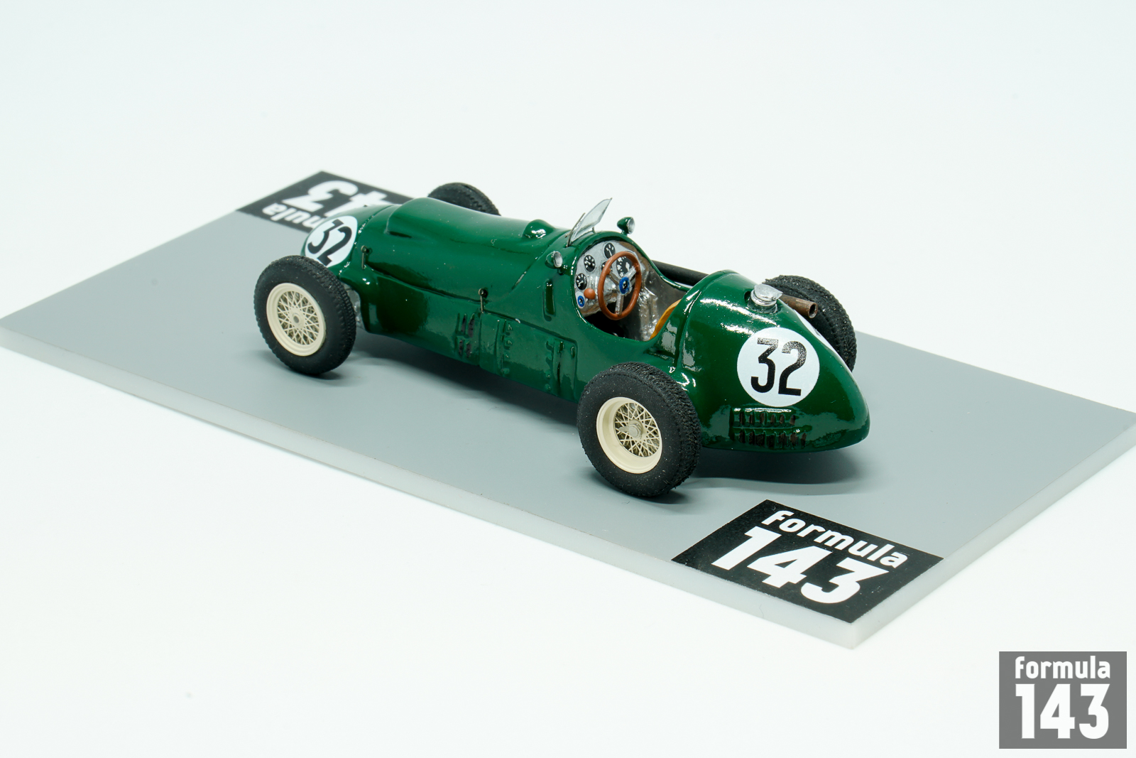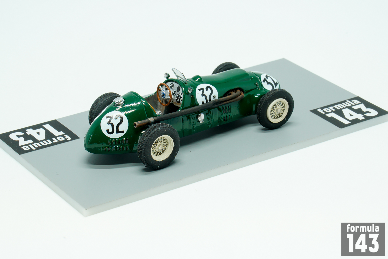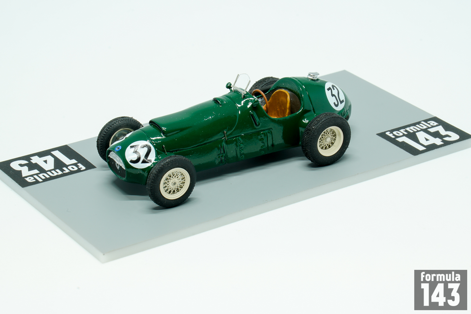 Hersham and Walton Motors (HWM) was established in 1938 by George Abecassis and John Heath. In the 1940s, HWM had a successful stint as a manufacturer of race cars. George Abecassis and John Heath began racing together in 1946 and were responsible for a new racing car that used the chassis of a Sports Alta. After building the HW-Alta, they went on to build a full team of cars for the 1950 Formula Two event. Lance Macklin, son of the automotive entrepreneur Noel Macklin, founder of both the Invicta and Railton car companies, was invited by George Abecassis to join the team in 1950. They finished 5th in the 1950 Le Mans, and since then Macklin regularly drove HWM in Formula 2 and Formula 1 races in 1950-1954. The model by Jade Miniatures represents the HWM ’53 chassis specification fitted with Alta 2.5 litres F1 engine, driven by Macklin in the 1954 French Grand Prix.