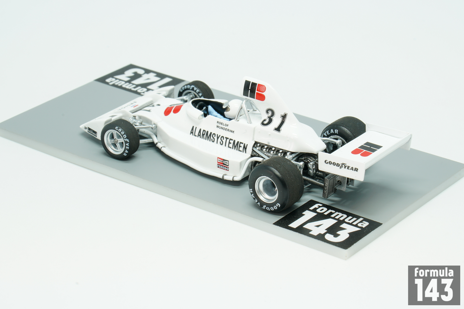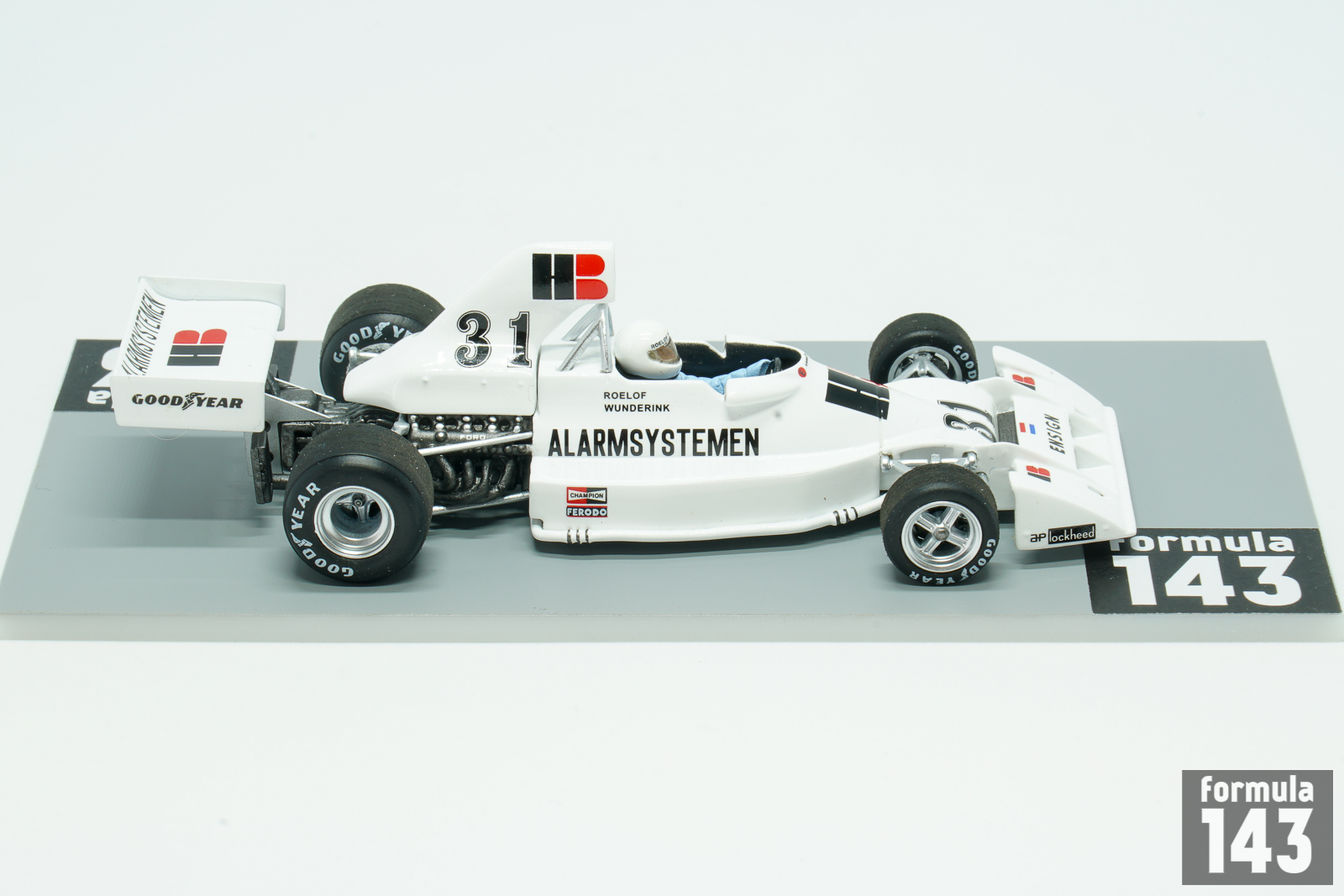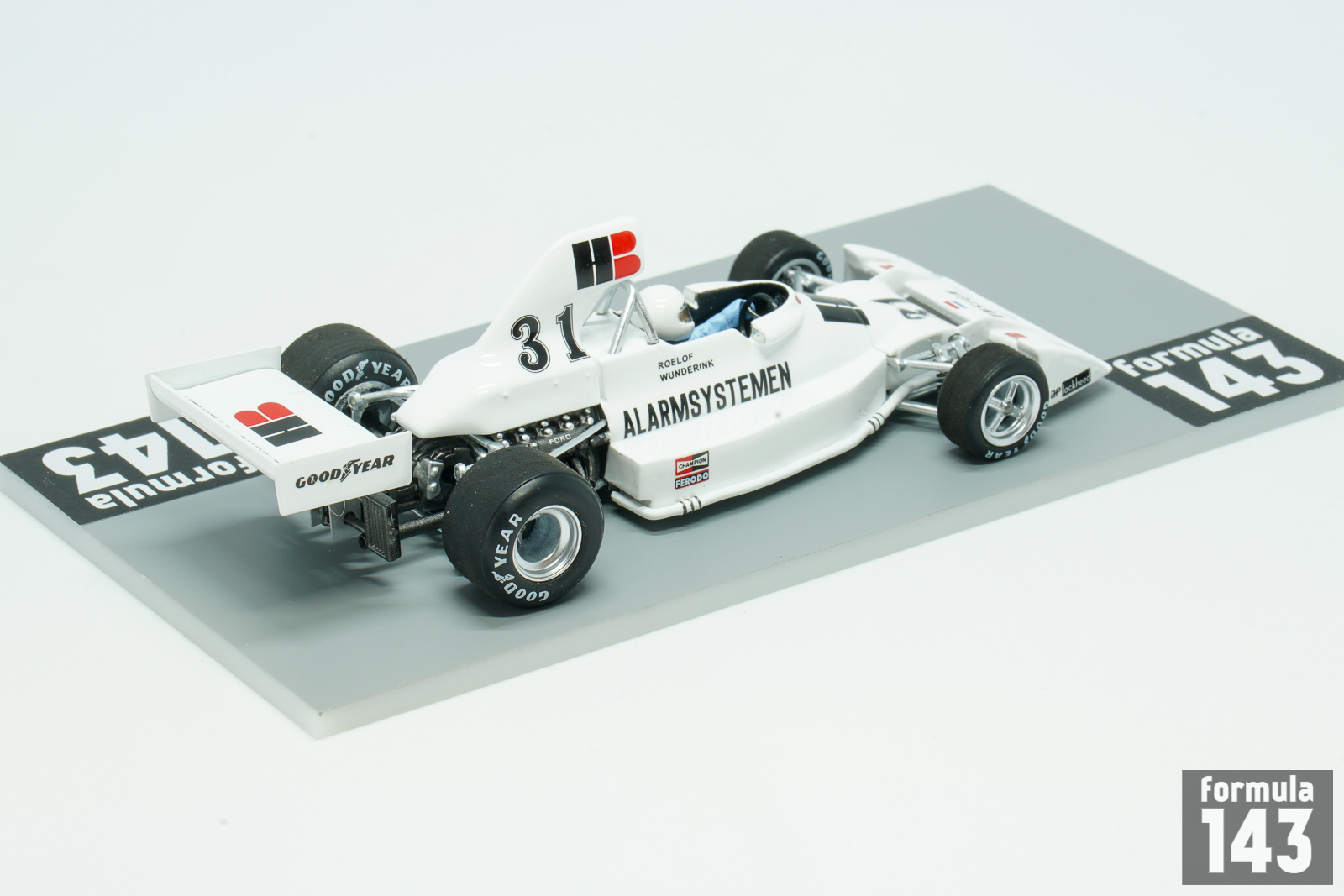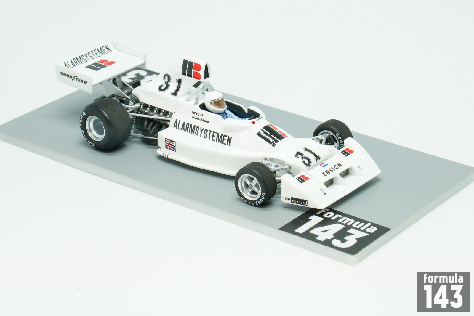 The N174 was designed for the 1974 season. While new N175 was under construction, the team used N174 in the first half of the 1975 season. For 1975 Ensign was sponsored by Dutch alarm systems company HB Bewaking leading them to sign Dutch drivers Rob Wunderink and Gijs van Lennep. Both Dutchmen drove one car in turn. Wunderink was at the wheel in Spain and Monaco, then in Britain, and again in Austria, Italy and USA. Van Lennep drove in between – in Netherlands, France and Germany. Wunderink did not have much success, qualifying for three races and finishing one. Gijs van Lennep qualified for all his races and took sixth place in Germany, securing first points for Ensign in Formula One.
