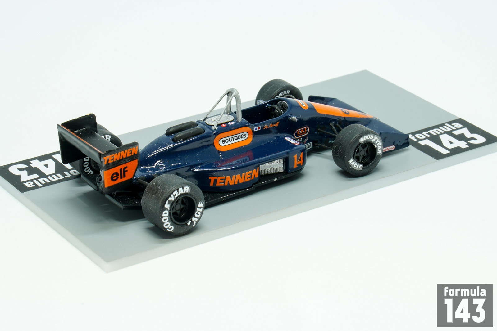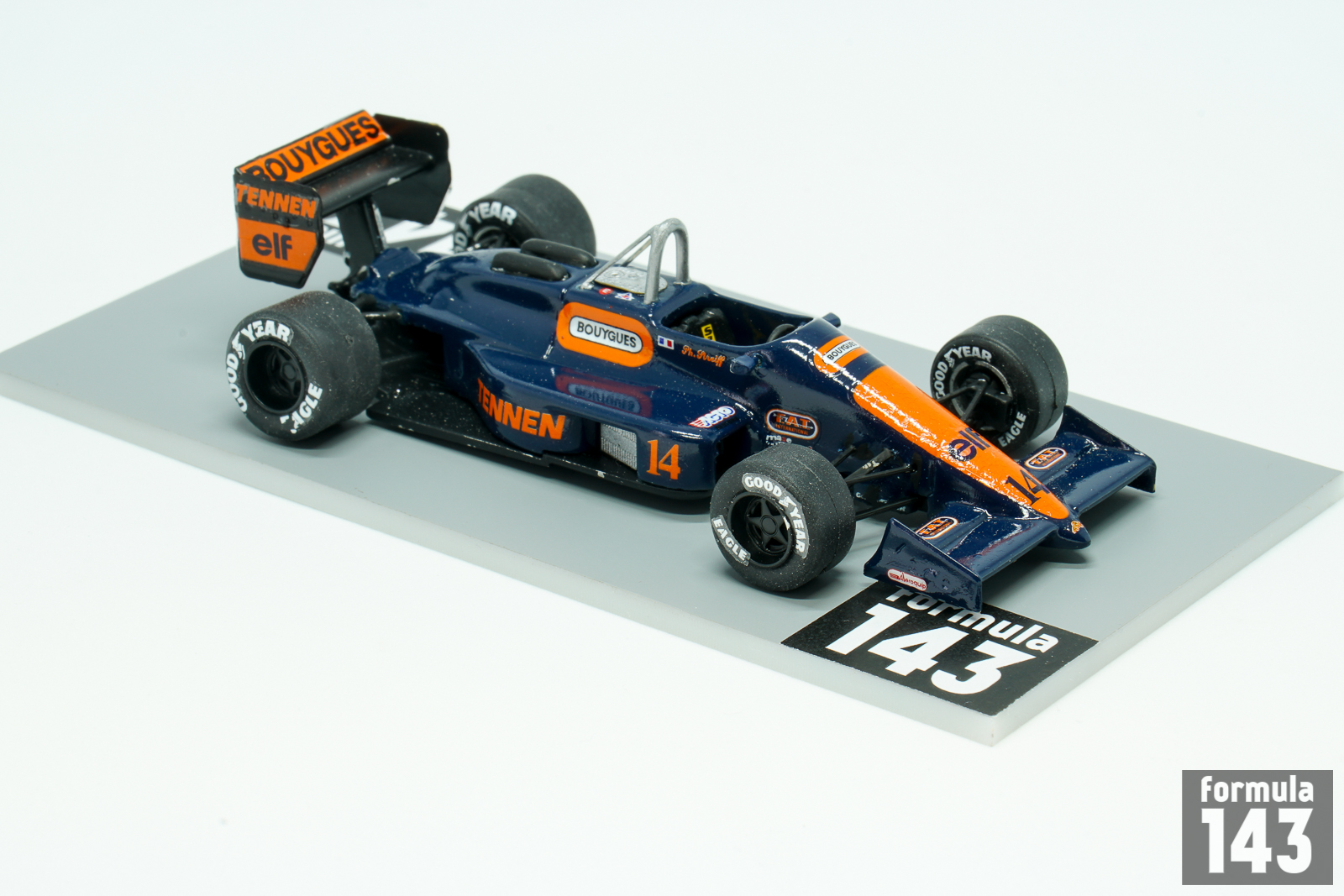 The JH23 was designed by Christian Vanderpleyn (Technical Director) and Michel Costa (Chief Designer) and was driven in the 1988 F1 season by French driver Philippe Streiff. Unlike the previous season, in their second full year in Formula One, the car managed to qualify for all 16 races. The best finish for Streiff was 8th place at the Japanese Grand Prix. The model made by Tameo Kits represents the car from the Monaco GP where Streiff qualified as high as 12th, but retired in the race. Streiff was confirned by AGS for the following season, but a pre-season testing crash at the Jacarepaguá circuit in Rio de Janeiro in 1989 left him a quadriplegic and thus using a wheelchair.