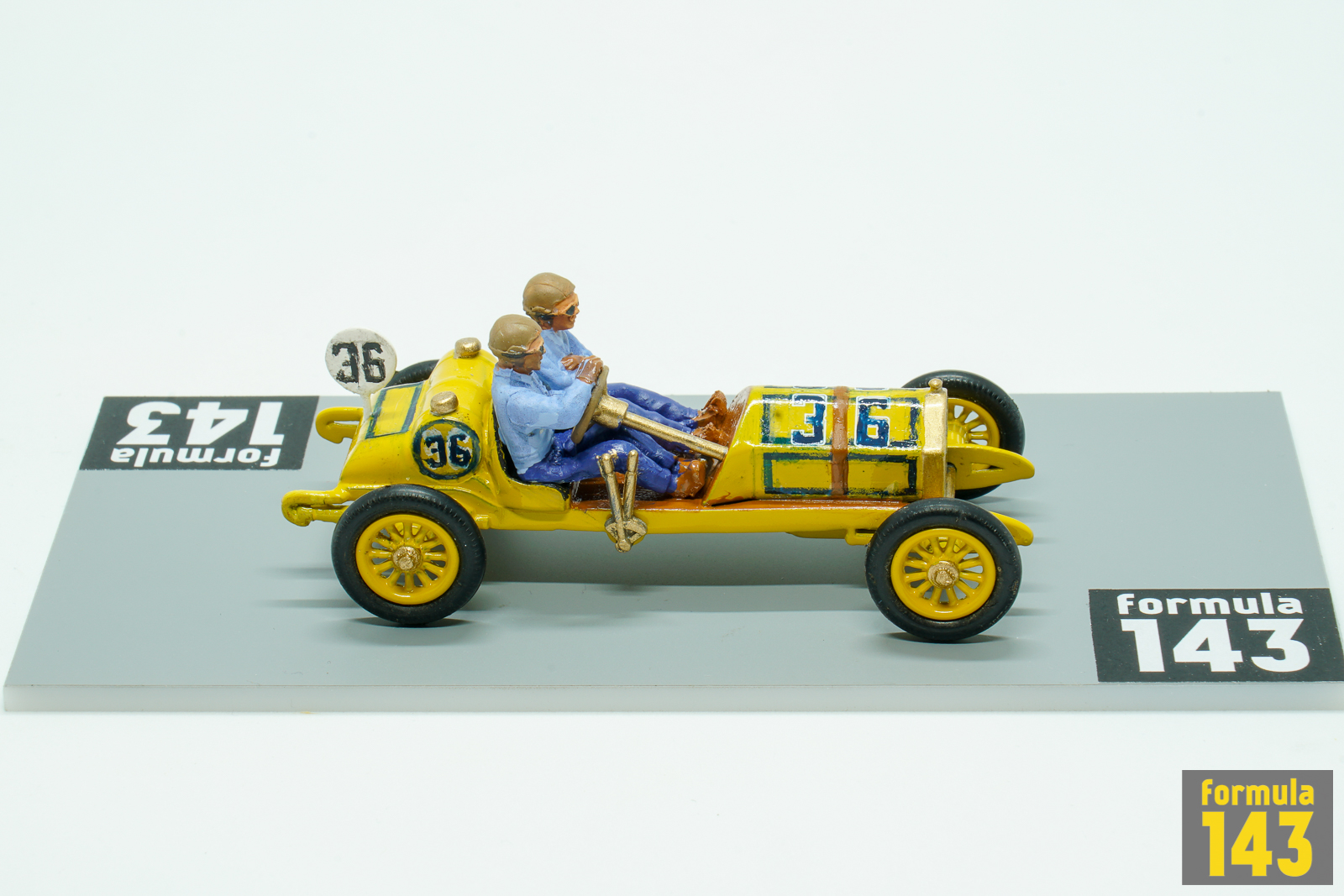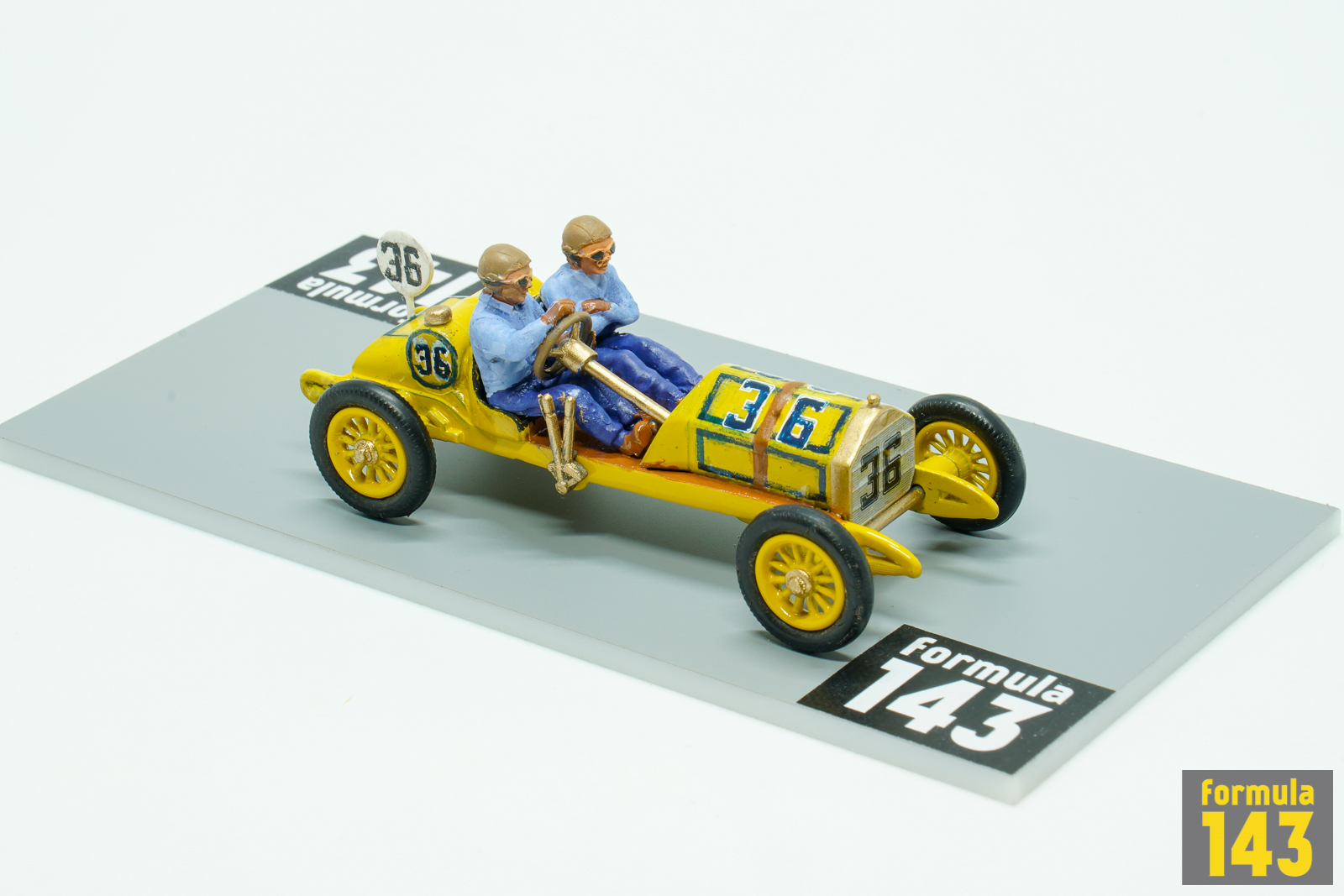 Mercer Automobile Company was founded in 1909 at Trenton, Mercer County, New Jersey by a handful members of the prominent Roebling and Kuser families. Ferdinand Roebling, son of John A. Roebling, famous designer of the Brooklyn Bridge, was the president, and his nephew Washington A. Roebling II was the general manager. The secretary-treasurer was John L. Kuser, who, with his brothers Frederick and Anthony, had amassed a fortune from banking, bottling and brewing. The founders’ focus on the competition resulted in 35R Raceabout racing car. Its inline 4-cylinder T-head engine displaced 293 cubic inches (4,800 cc) and delivered 58 hp at 1700 rpm, in racing trim 85 hp at 2500 rpm. The Mercer Raceabout raced at various AAA events in 1910-1912 seasons. In the 1911 two yellow Mercers driven by Charles Bigelow and Hughie Hughes were entered for the inaugural Indianapolis 500 miles race. Hughes finished twelfth, Bigelow was flagged and classified 15th. During the 1911 season “Lord” Hughue Hughes, who was born in 1886 in London, used to carry a toy monkey in his car so his mount became known as the “Monk”. In August 1911 Hughes won the Kane County Trophy Race at Elgin, and also finished third in the 600-inch Elgin National Trophy. In October Hughie took the Fairmount Park race in 231-300 ci class, and was sixth overall, and in November he won the Savannah Trophy. Hughes was killed in an accident on 2 December 1916 at Uniontown Speedway in Uniontown, Pennsylvania.