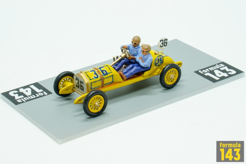 Mercer Automobile Company was founded in 1909 at Trenton, Mercer County, New Jersey by a handful members of the prominent Roebling and Kuser families. Ferdinand Roebling, son of John A. Roebling, famous designer of the Brooklyn Bridge, was the president, and his nephew Washington A. Roebling II was the general manager. The secretary-treasurer was John L. Kuser, who, with his brothers Frederick and Anthony, had amassed a fortune from banking, bottling and brewing. The founders’ focus on the competition resulted in 35R Raceabout racing car. Its inline 4-cylinder T-head engine displaced 293 cubic inches (4,800 cc) and delivered 58 hp at 1700 rpm, in racing trim 85 hp at 2500 rpm. The Mercer Raceabout raced at various AAA events in 1910-1912 seasons. In the 1911 two yellow Mercers driven by Charles Bigelow and Hughie Hughes were entered for the inaugural Indianapolis 500 miles race. Hughes finished twelfth, Bigelow was flagged and classified 15th. During the 1911 season “Lord” Hughue Hughes, who was born in 1886 in London, used to carry a toy monkey in his car so his mount became known as the “Monk”. In August 1911 Hughes won the Kane County Trophy Race at Elgin, and also finished third in the 600-inch Elgin National Trophy. In October Hughie took the Fairmount Park race in 231-300 ci class, and was sixth overall, and in November he won the Savannah Trophy. Hughes was killed in an accident on 2 December 1916 at Uniontown Speedway in Uniontown, Pennsylvania.