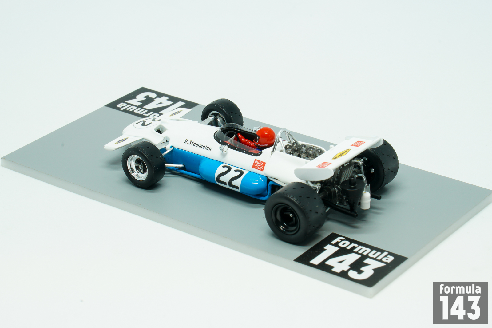 The BT33 was designed by Ron Tauranac for the 1970 Formula One season. The Cosworth-powered car featured ‘semi-monocoque’ tubular spaceframe chassis with the engine to be used fully stressed. The body followed familiar Brabham lines with an easily recognisable nose, which housed the radiator and was flanked by two small wings. Triple World Champion Jack Brabham was the chief driver of the Motor racing Development team, while Rolf Stommelen piloted the second Brabham officially entered by Auto Motor und Sport, German motorsport magazine. Jack won the inaugural round of the season in South Africa, scored three more podiums and finished the season sixth. Stommelen, who was in his first full season in F1, achieved his best finish at Osterreichring, where he was 3rd. This success with some more finishes in points led him to 10th position in the final drivers’ standings of the 1970 season.