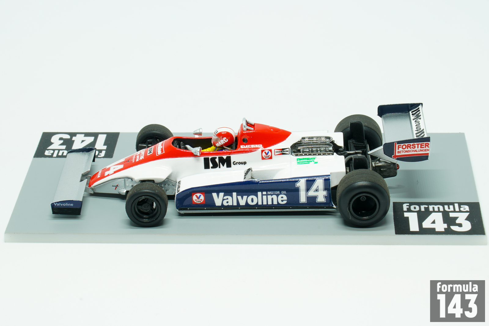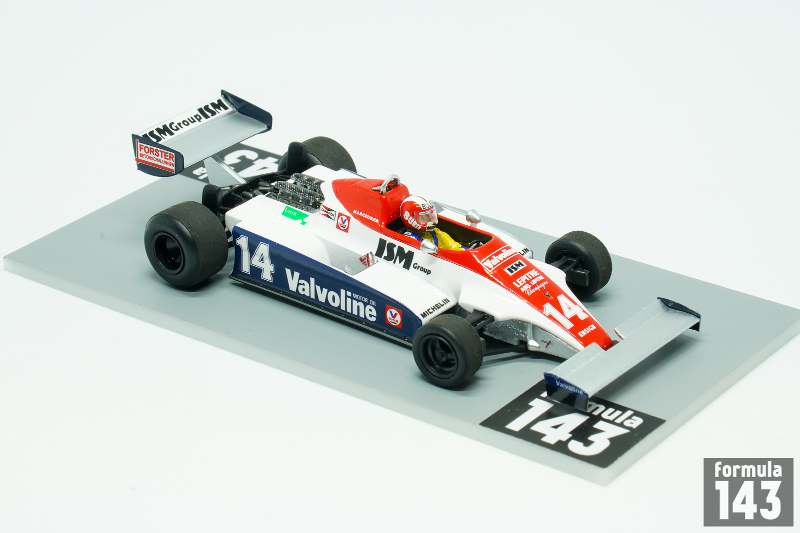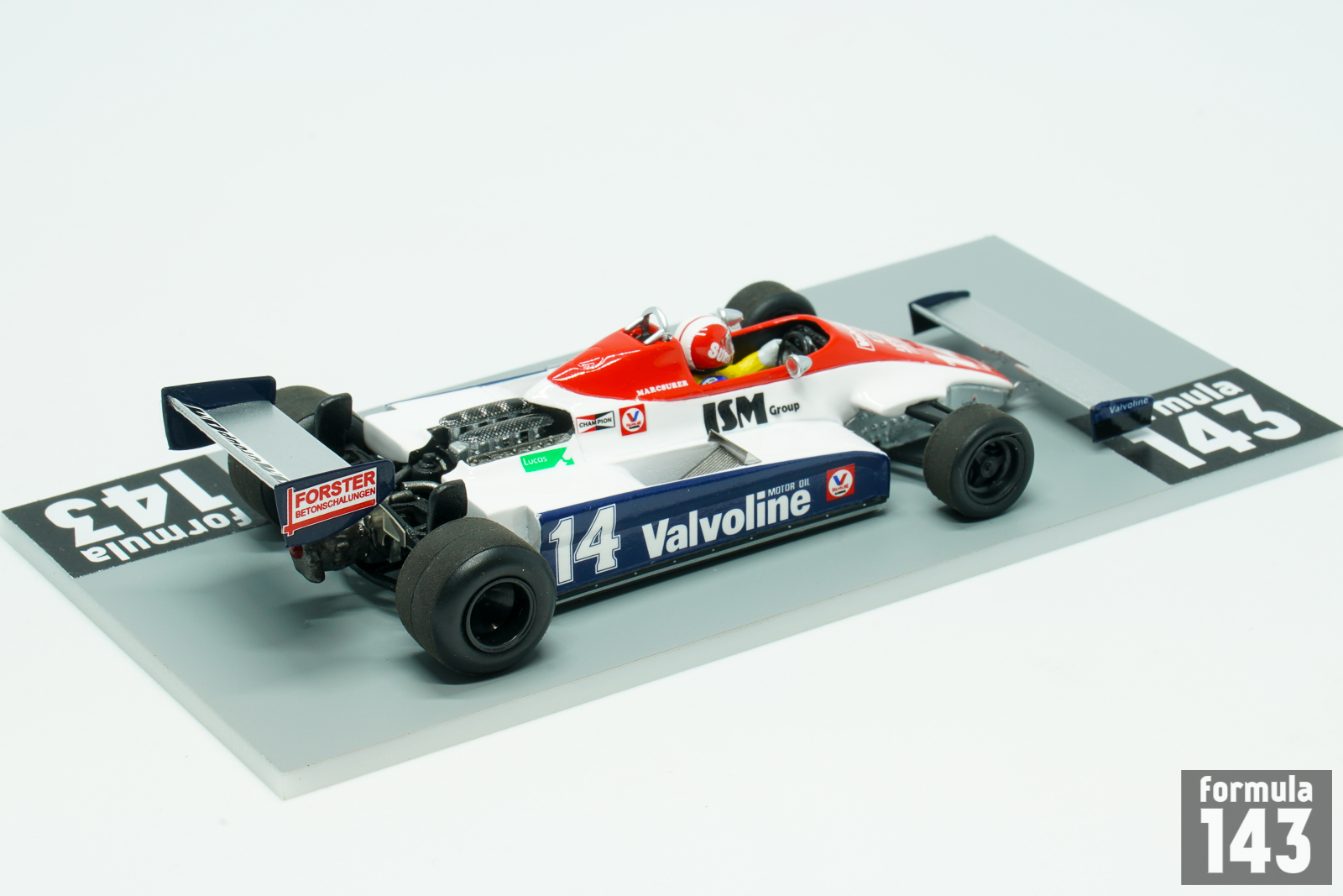 The N180B used by Ensign in the 1981 season was the evolution of N180 model designed by Ralph Bellamy and Nigel Bennett for 1980 season. The design was essentially inspired by Williams FW07. In order to maximize the area available for the underbody ground-effect venturis, in-board suspension was fitted on all four corners and a relatively long wheelbase was chosen. Like most cars on the grid, the N180 was powered by the latest evolution of the venerable Cosworth DFV engine. For the 1981 the car was slightly upgraded to ‘B’ specification. Marc Surer piloted this car in the first six rounds of the season, scoring excellent fourth and sixth place finishes, in Brazil and Monaco, respectively. Surer then moved to Theodore, and during the remaining rounds, Eliseo Salazar was Ensign’s designated driver. The Chilean added a further point to the team’s tally by finishing sixth in the Dutch Grand Prix.