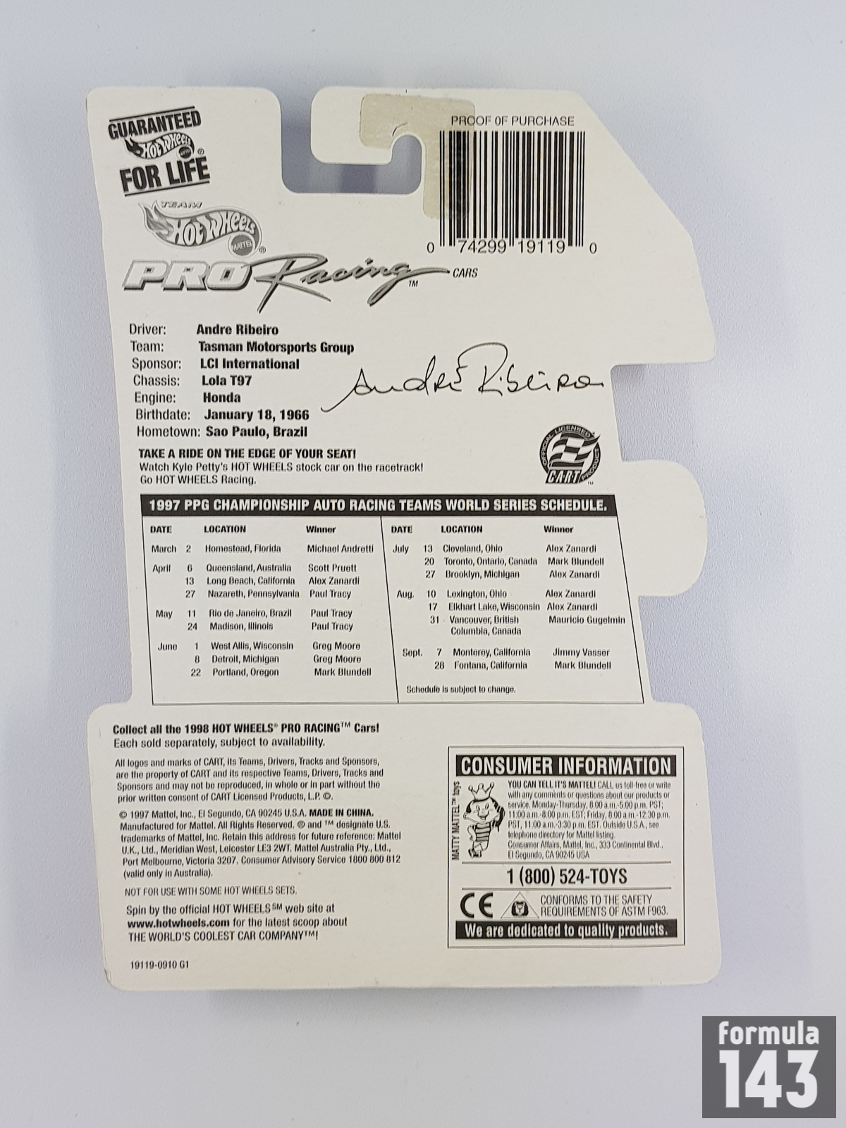 Brazilian racing driver Andre Ribeiro in the 1996 season continued to compete for Tasman Motorsport driving Lola T97 in the first half of the season, and Reynard 97I in the second. His best season’s result with Lola was 6th place finish at Surfers Paradise, while in Reynard he scored 3rd place at Toronto. His final position in the season’s standings was 14th with 45 points.