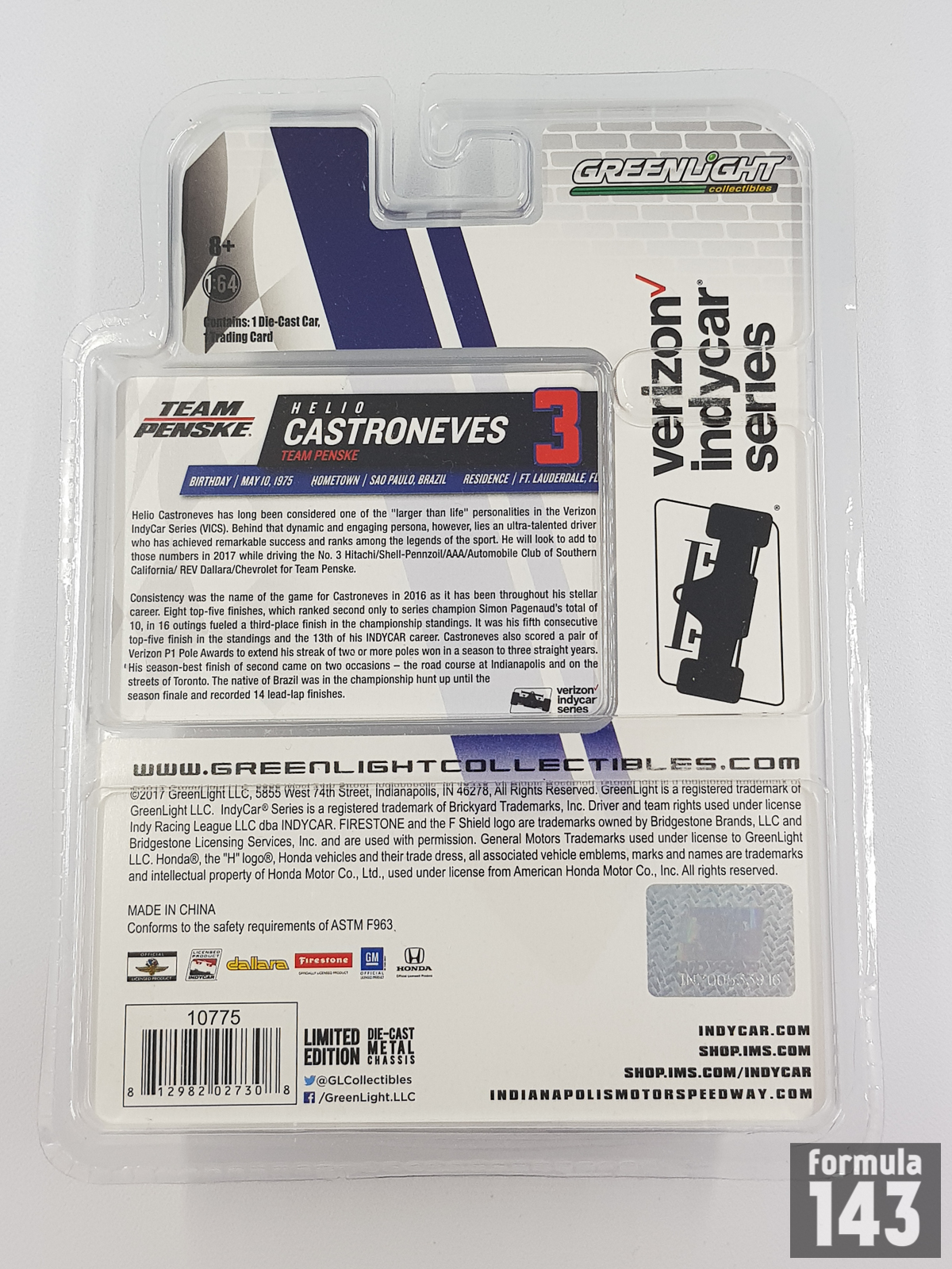 Brazilian star Helio Castroneves drove in IndyCar since 2000, and 2017 was his 17th season with Penske Racing. Team Penske was represented by four cars driven by Simon Pagenaud , Josef Newgarden, Castroneves, and Will Power. Castroneves scored several podiums, a single win at Iowa Speedway, and entered the season’s final race, the Grand Prix of Sonoma, with some chances for title, 22 points behind championship leader and teammate Josef Newgarden and 19 behind Chip Ganassi driver Scott Dixon. A victory and Newgarden finishing third or lower and Dixon second or worse would give Castroneves the title. He finished in fifth place to be fourth overall with 598 points, behind Newgarden, Pagenaud and, Dixon. As usual in IndyCar racing, Castroneves’ car was painted in different liveries throughout the season. Penske car #3 used five color schemes. The main livery was black and white Hitachi, used in 9 races. This blue and white AAA Insurance was used in Long Beach, Birmingham and Texas. Rev Grour and Shell fuel liveries were used two times each (at Phoenix and Road America and at Indi 500 and Gateway, respectively). And at Indianapolis Grand Prix Helio’s car was painted in silver Verizon livery. After 2017 season Castroneves stepped down from IndyCar full-time to move to Penske’s IMSA SportsCar Championship program.