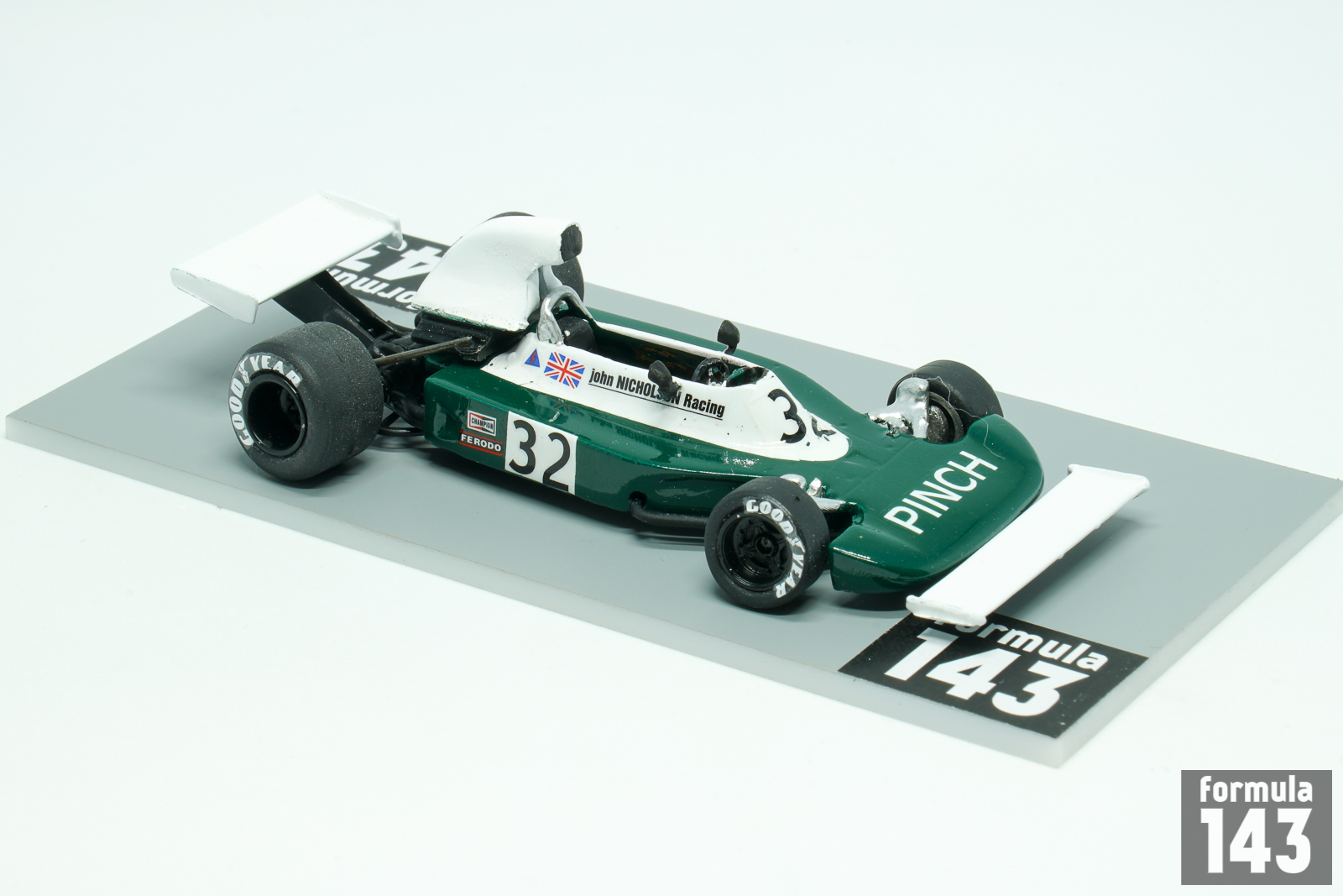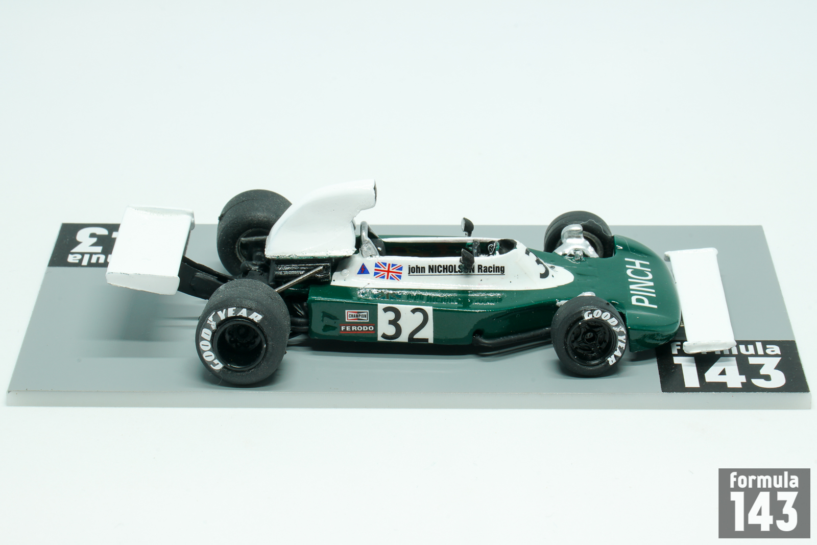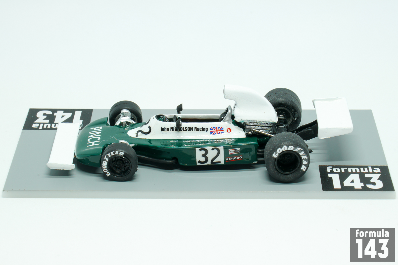 Lyncar was short-lived racing car manufacturer founded by British ex racing driver Martrin Slater. Slater built his first car, Formula Atlantic Lyncar 001 in 1971. Few other Atlantic cars and DFV-powered hill climb 004 followed. John Nicholson from New Zealand, McLaren engine expert, was the 1973 and 1974 British Formula Atlantic champion, using a Lyncar chassis. This led him to commission Lyncar to build Formula One car. The car, Lyncar 006, was ready in 1973, and it was a straightforward vehicle featured aluminium monococque and powered by Ford Cosworth V8 engine. In 1974 Nicholson finished two British non-championship races but failed to qualify in the British Grand Prix. In 1975 he finished in the International Trophy, qualified for the Grand Prix, and was classified 17th. Later the Lyncar 006 was run in a modified form by Emilio de Villota in British Shellsport International Series in 1976-77, winning a round in 1977 at Mallory Park. As to Nicholson, he did continue in both Formula Two and Formula 5000 in 1976, raced in his native New Zealand in 1977, and turned his sporting attention to powerboat racing after retiring from car racing.