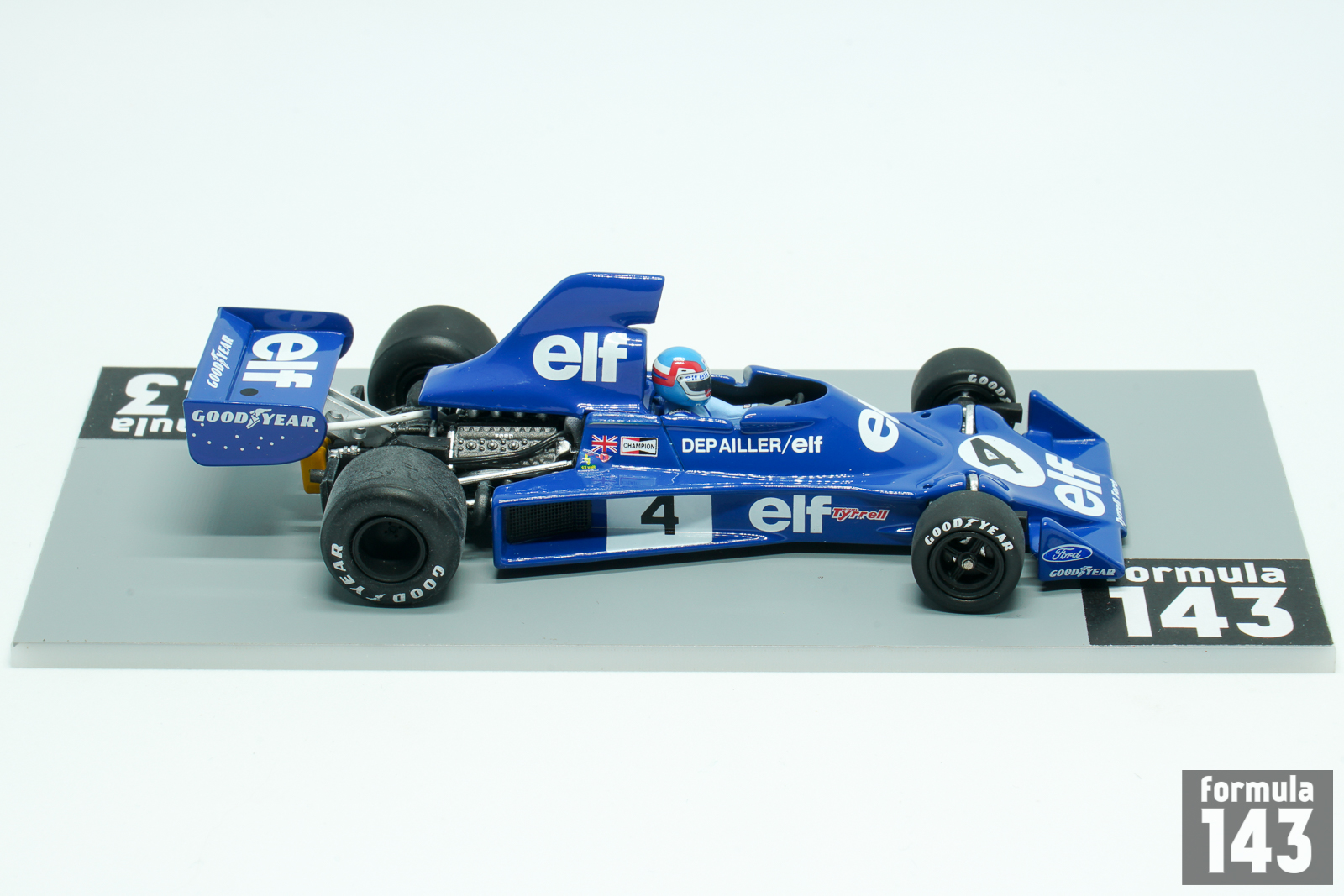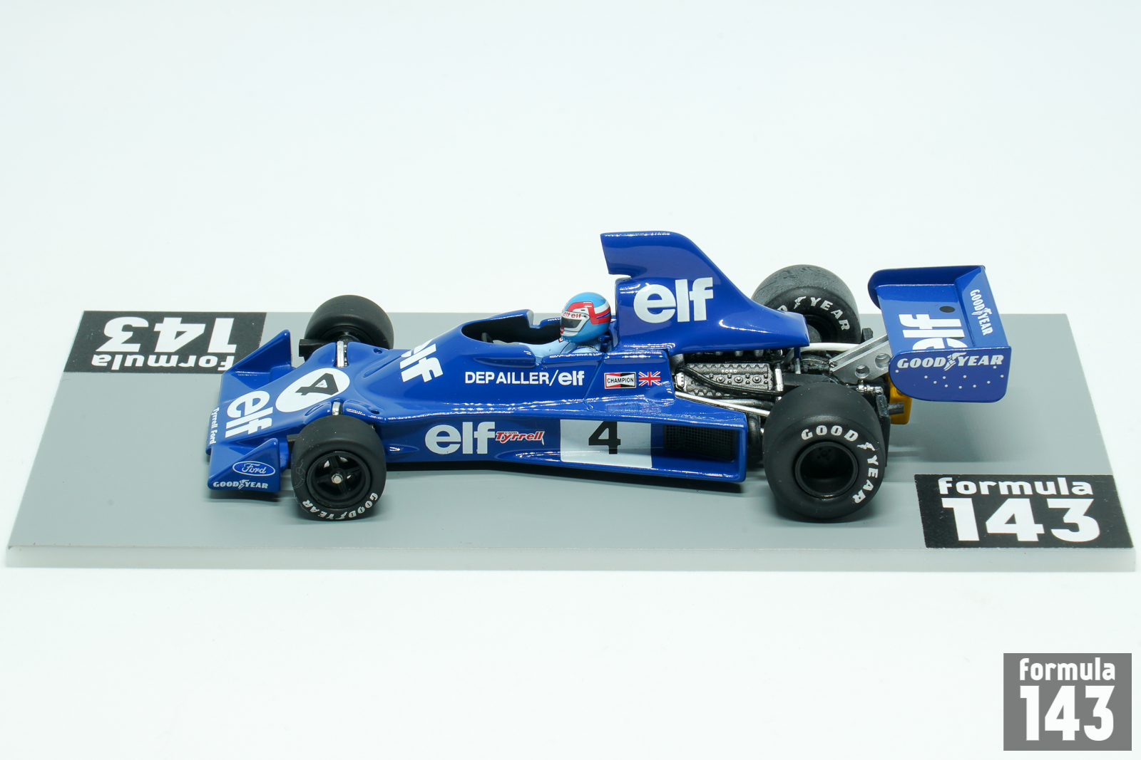 The Tyrrell 007 was designed by Derek Gardner and raced in the 1974 and 1975 Formula One season by works team, and in 1976 – 77 by some private racing stables. The car built around aluminium monocoque featured double wishbones front and rear suspension, Hewland gearbox and Ford-Cosworth DFV engine. Six racing cars were built – four in 1974 and two in 1975, plus one showcar which did not race. Jody Scheckter and Patrick Depailler continued to race for Tyrrell in 1975. Scheckter won South African Grand Prix, was second in Belgium and finished the season 7th with 20 points. Depailler’s best was 3rd place in South Africa. French driver scored 12 points and was 9th in the final drivers’ standings of the season.