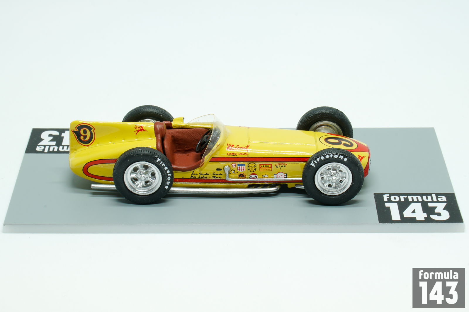 George Salih was a plant supervisor with Meyer & Drake Engineering, manufacturer of the famous Offenhauser engines, and a crew chief of several Indianapolis entrants. As a chief he won three Indy 500 races, first in 1951 with Belanger Special driven by Lee Wallard, and in 1957 – 1958 with his own team and chassis. After scoring second with Tom Hanks in the 1956 Indy 500 with Jones & Maley entry and Kurtis Kraft chassis, Salih built his own car for the 1957 race. It was a very radical design of a low-slung car that would accept an Offy engine laid on its side to obtain a lower center of gravity. Unable to find a buyer for such a radical vehicle, Salih got sponsorship from Belond Exhaust and entered the car himself. Veteran Tom Hanks, 42, started the race from the fifth row, grabs the lead on lap 37, and, after some lead changes, finally beat Jim Rathmann in Epperly by 22 seconds. For Hanks it was his 12th try at the Brickyard.
