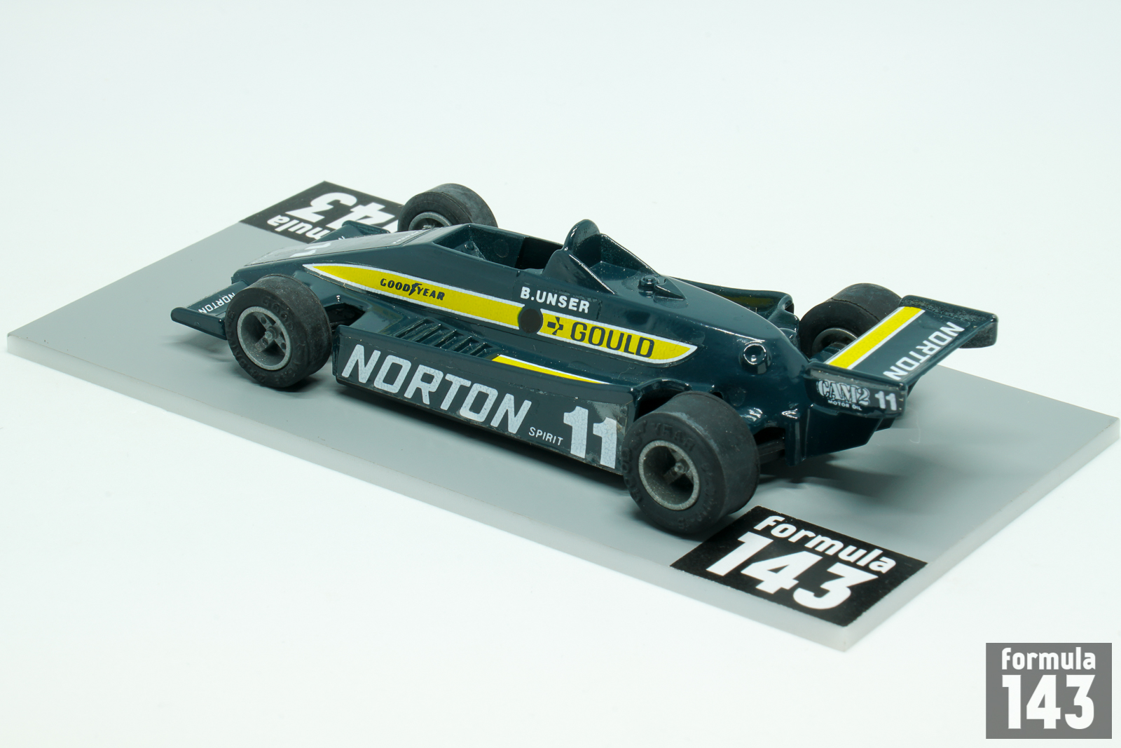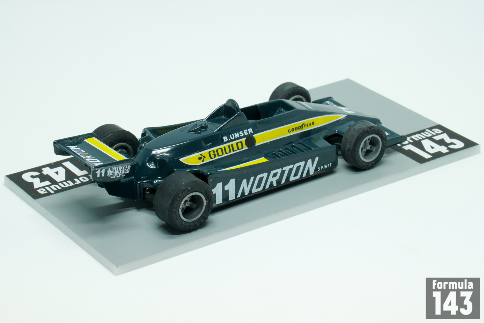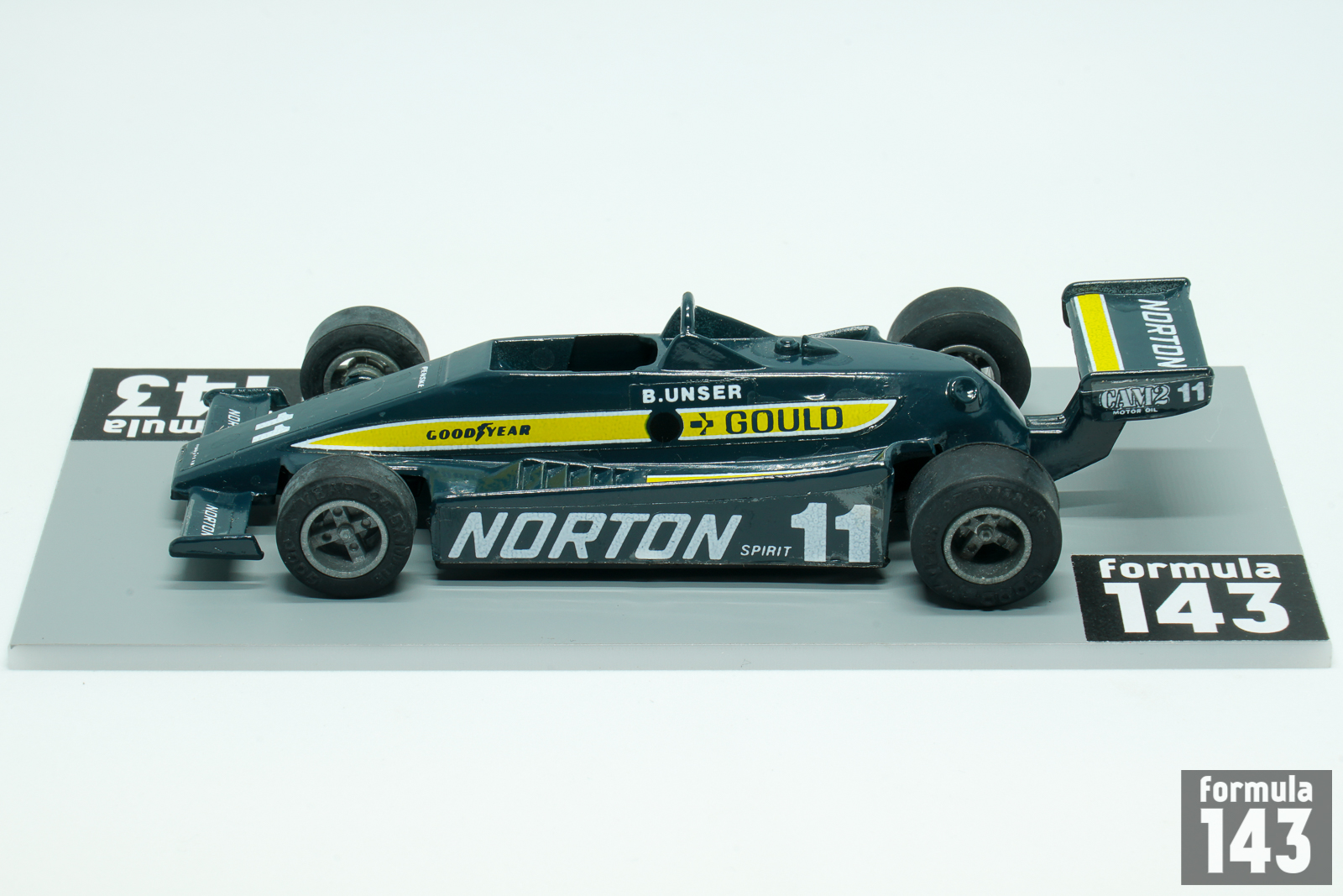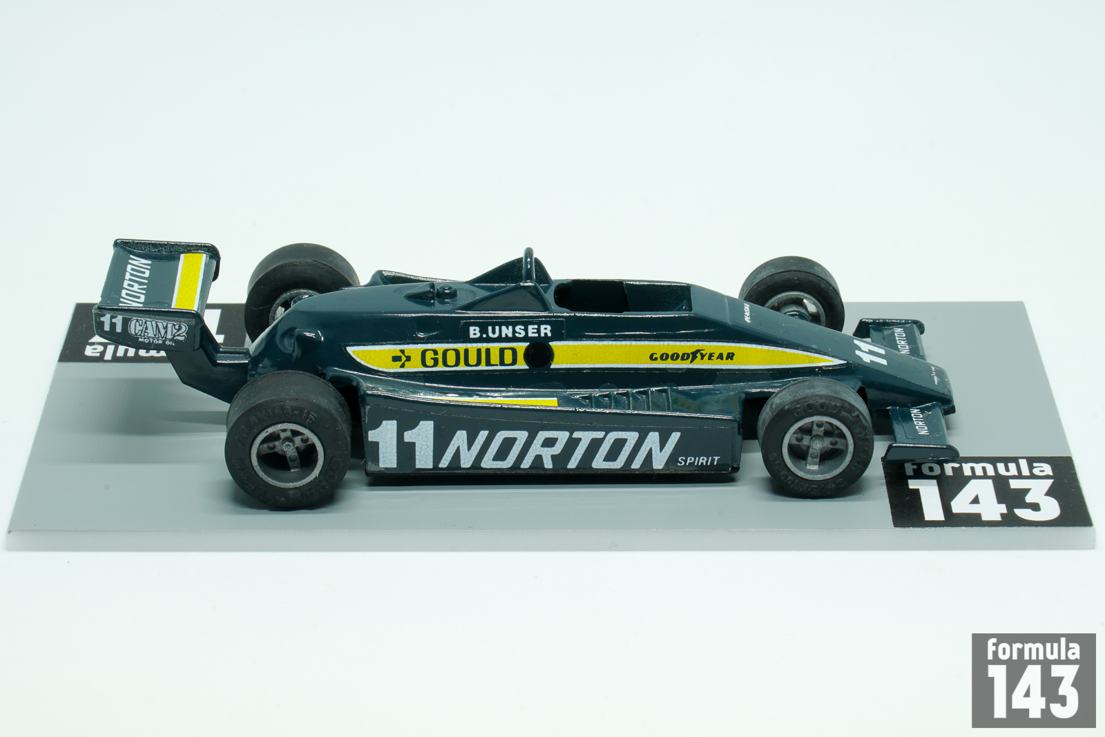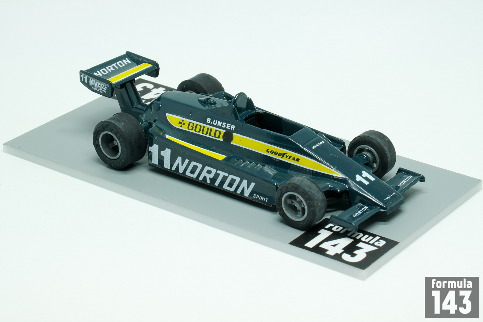 The PC-9 was designed by British designer Geoff Ferris at Penske Racing. The car was powered by Cosworth V8 engine and raced by works Team Penske in 1980 and 1981 CART seasons, and until 1983 by other entrants. The car also won 1981 Indianapolis 500, which was officially part of the 1981–82 USAC season, being driven by Bobby Unser. In the 1980 CART championship Team Penske entered two cars for full time schedule, driven by veteran Bobby Unser and Rick Mears. Unser, 46, was in his 20th season in USAC / CART, while for Mears, 28, it was his 5th season in US top open wheel racing series. Unser driving Team Penske Norton Spirit sponsored car won four races of the season – at Milwaukee, Pocono, Watkins Glen and Ontario, and finished the championship runner-up to Johnny Rutherford in works Chaparral 2K. Mears raced with Gould Charge sponsorship, won the race at Mexico City and was classified fourth in the final season points standings.